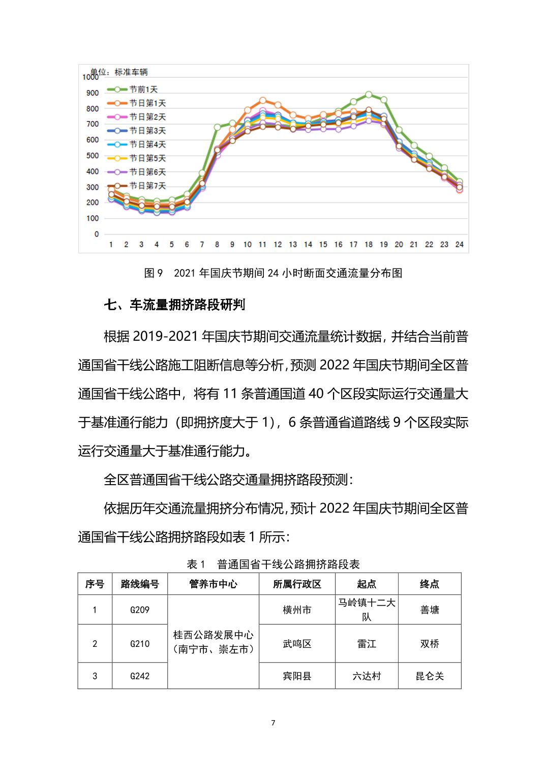 2022年国庆节广西普通国省干线公路交通流量研判分析报告
