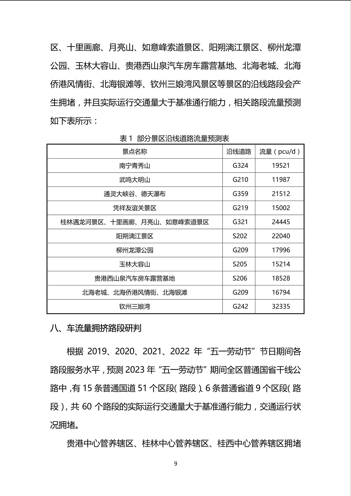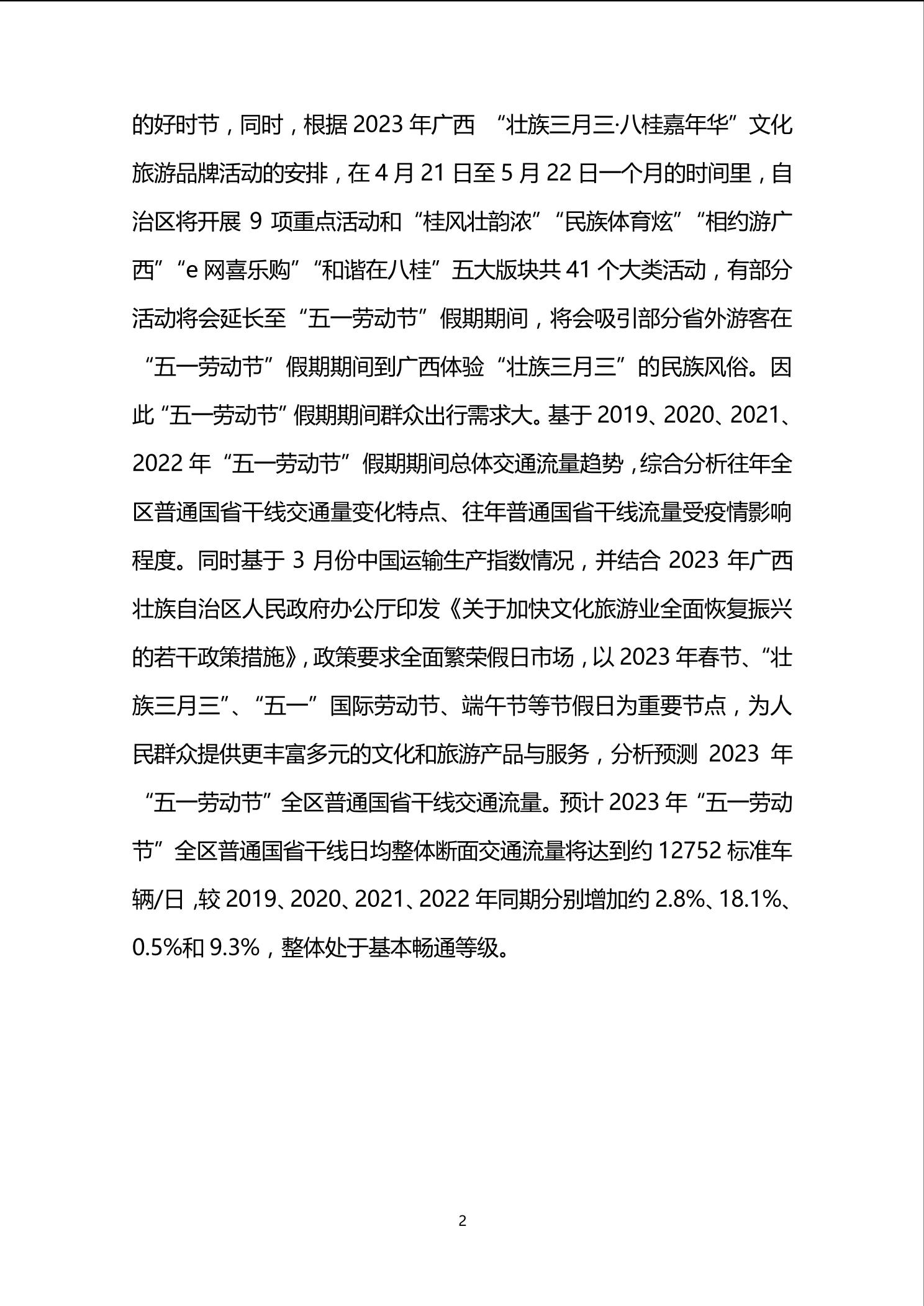 2023年“五一劳动节”广西普通国省干线公路交通流量研判分析报告