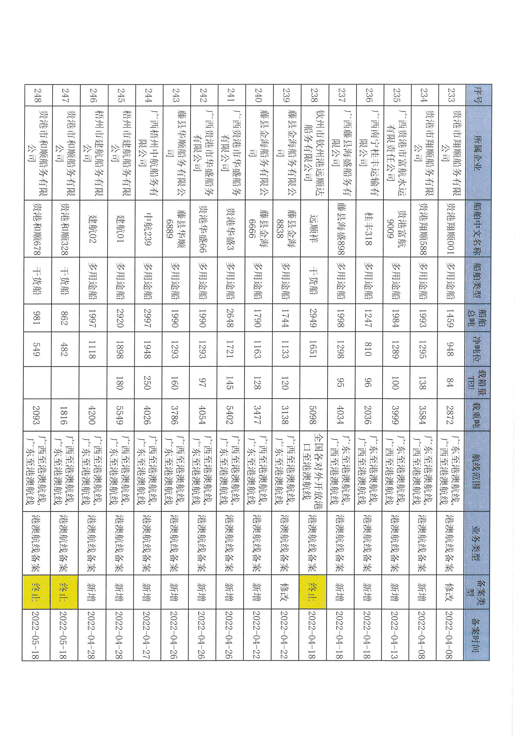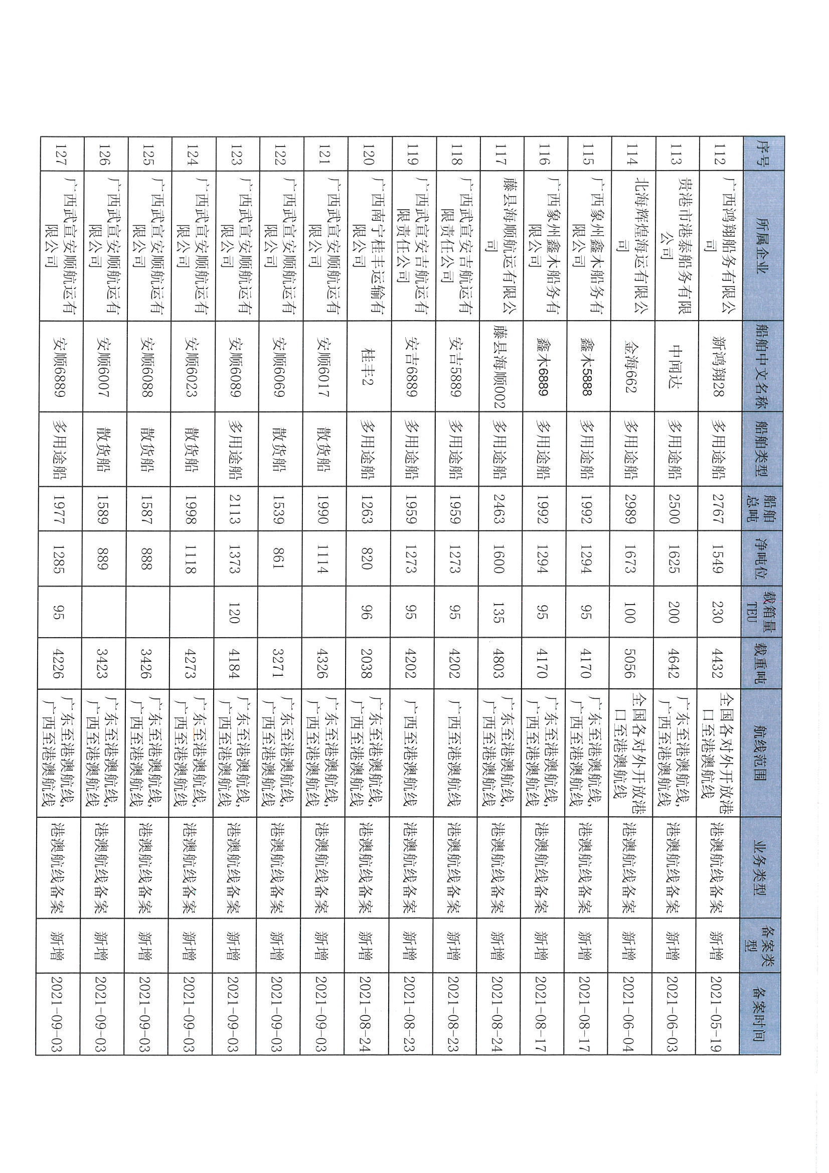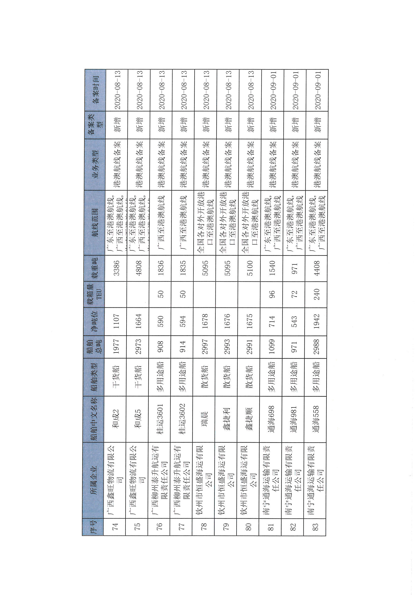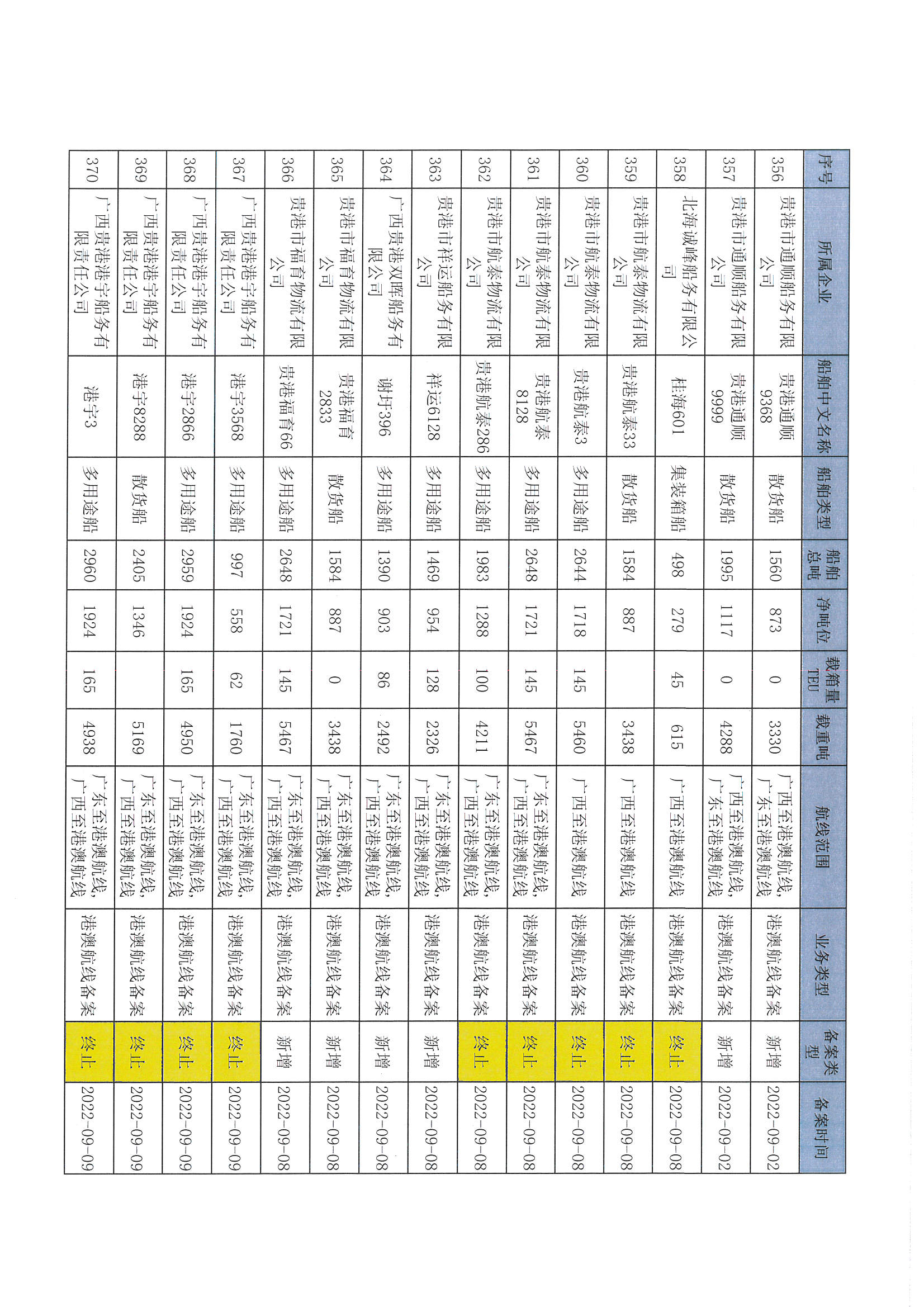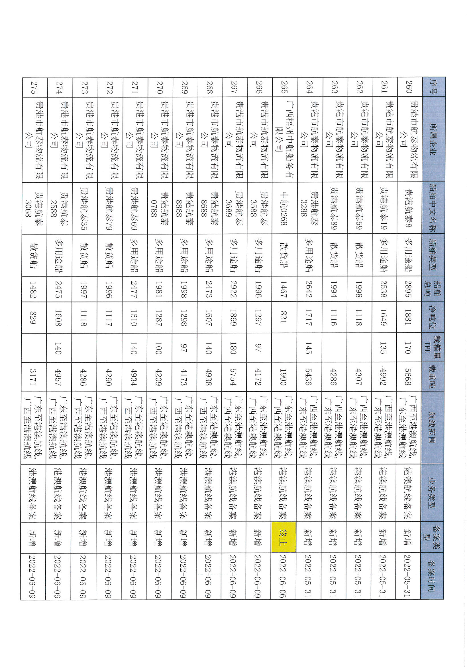 截至2022年12月11日在交通运输部水路运输建设综合管理信息系统完成备案的港澳航线水路运输船舶