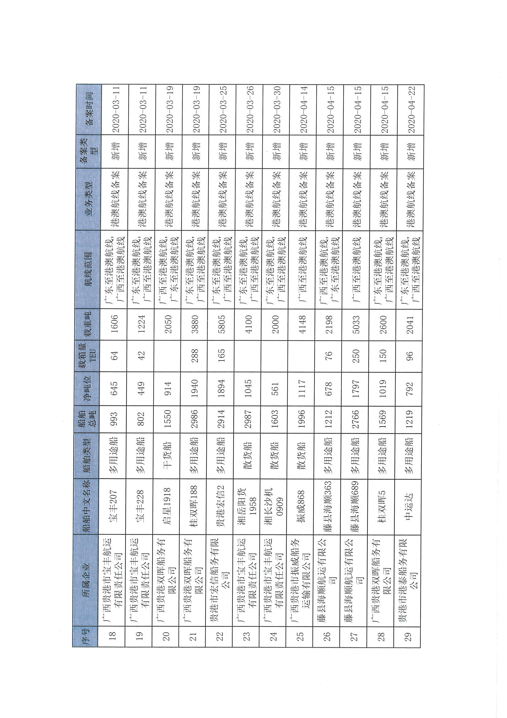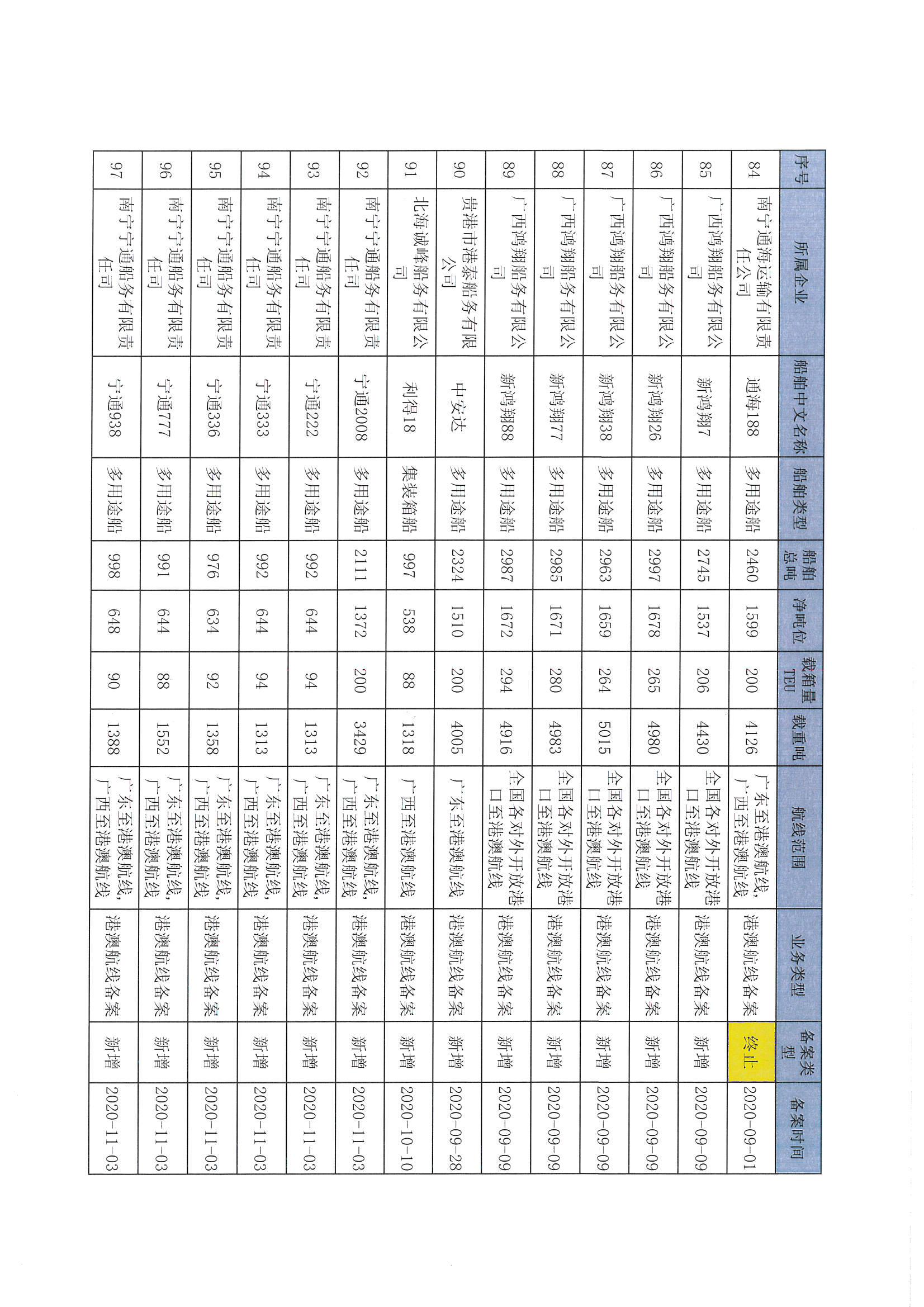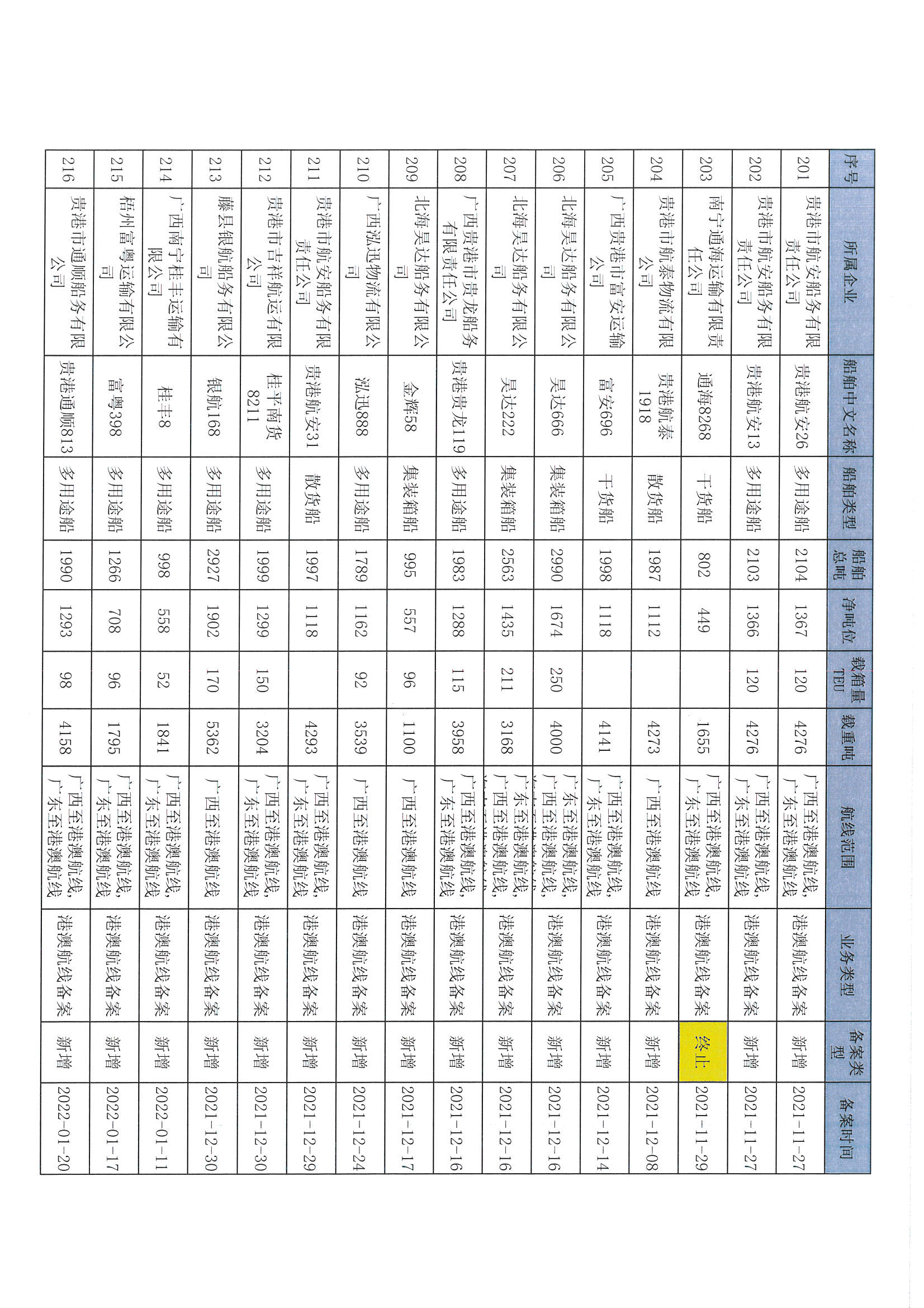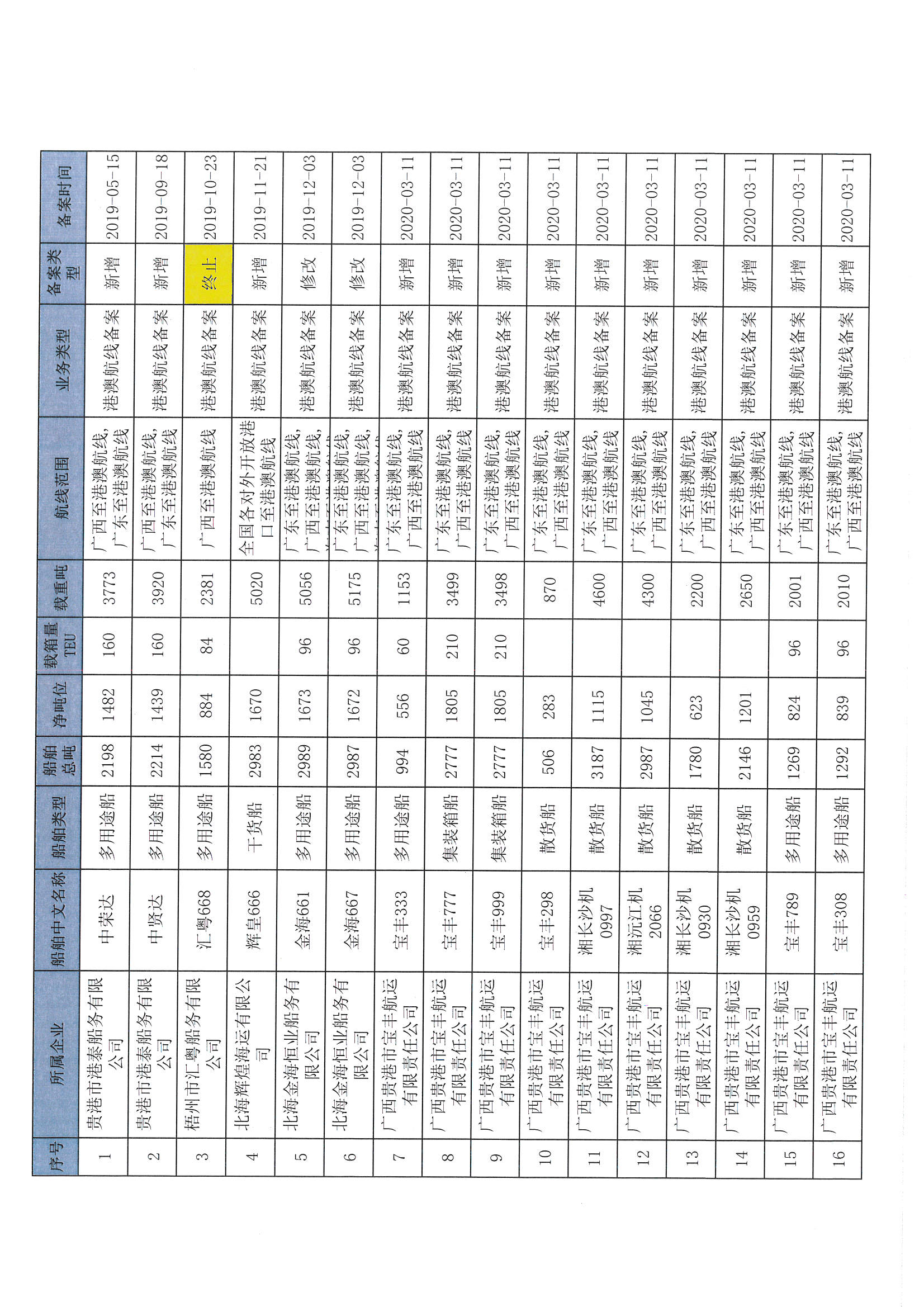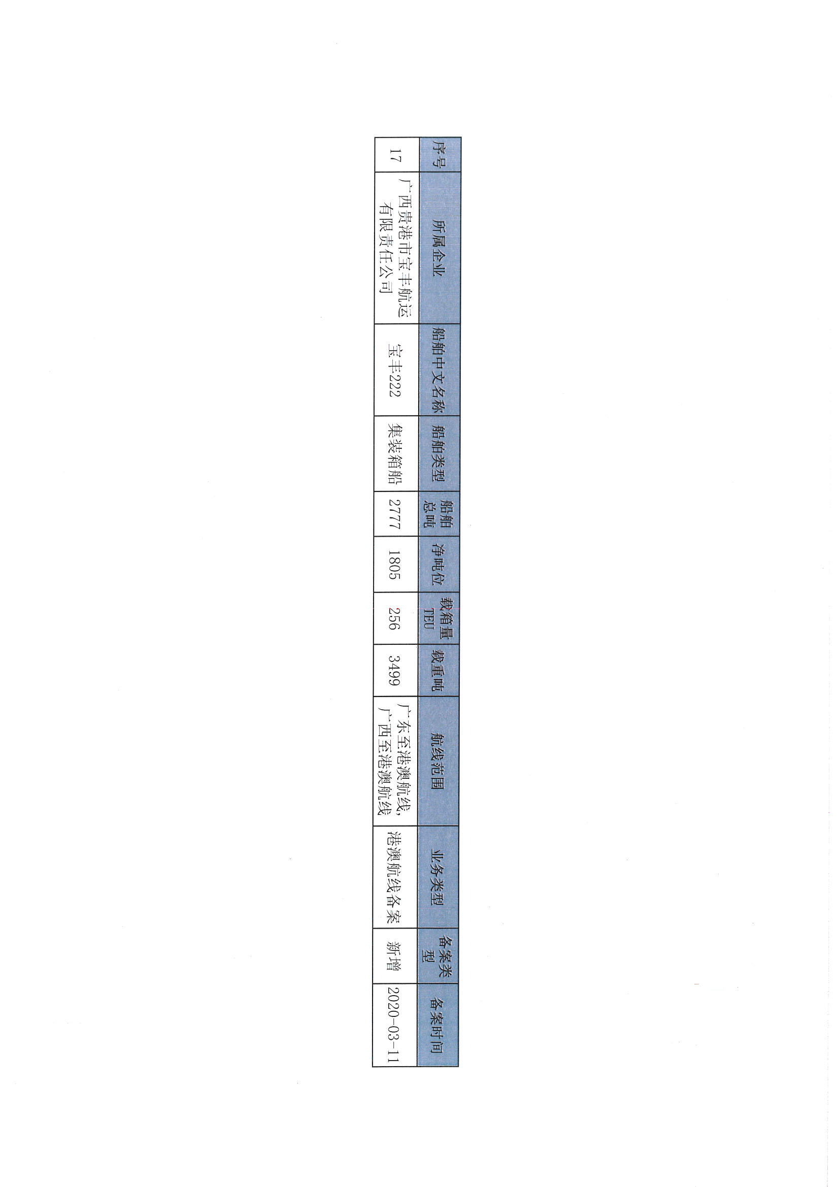 截至2022年12月11日在交通运输部水路运输建设综合管理信息系统完成备案的港澳航线水路运输船舶