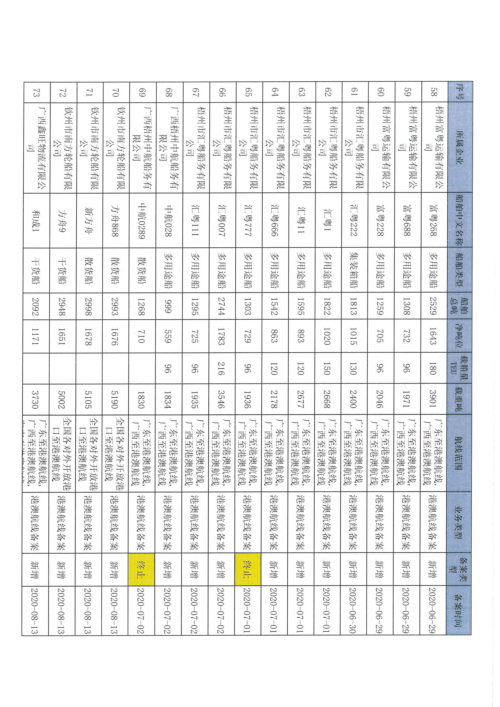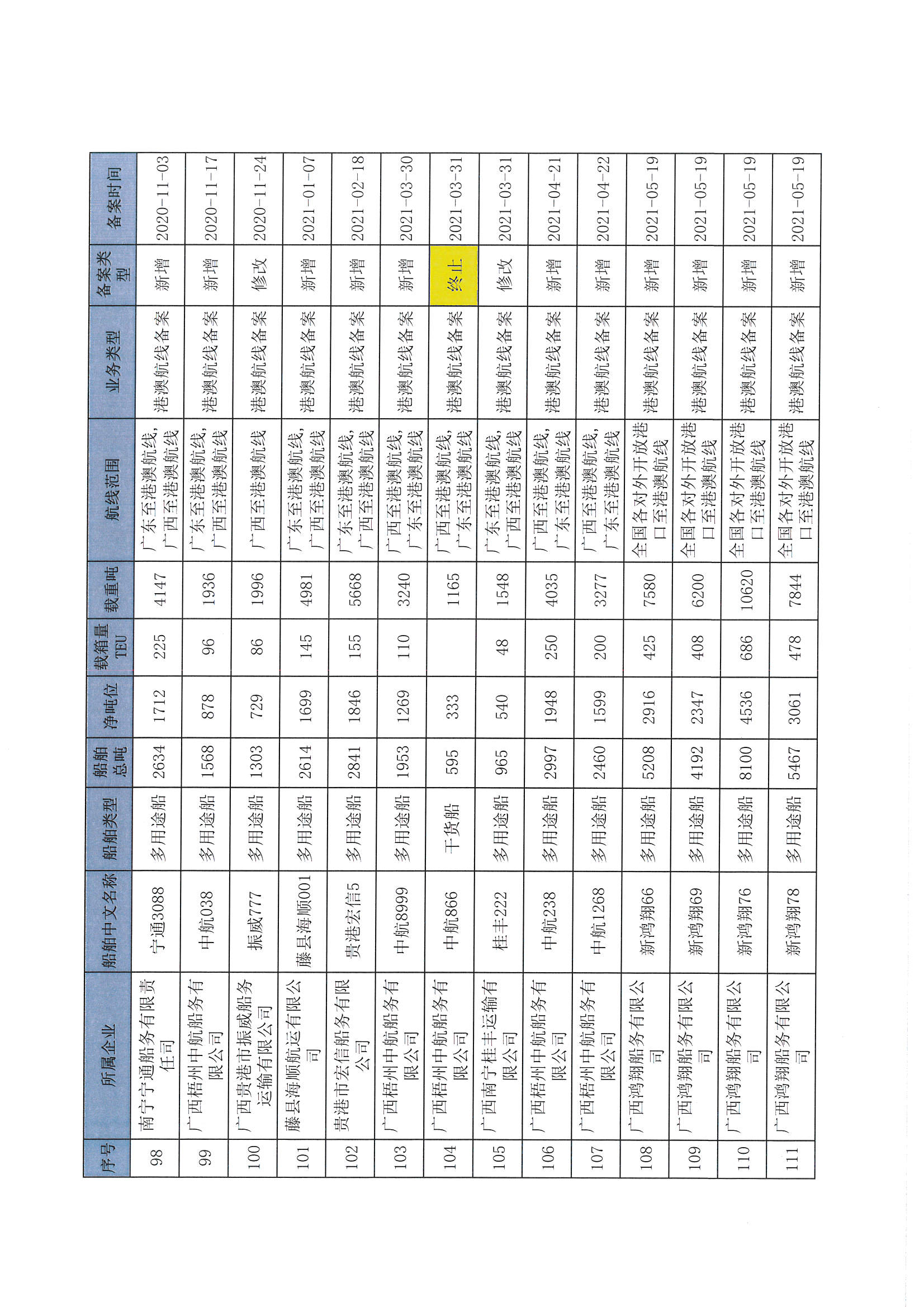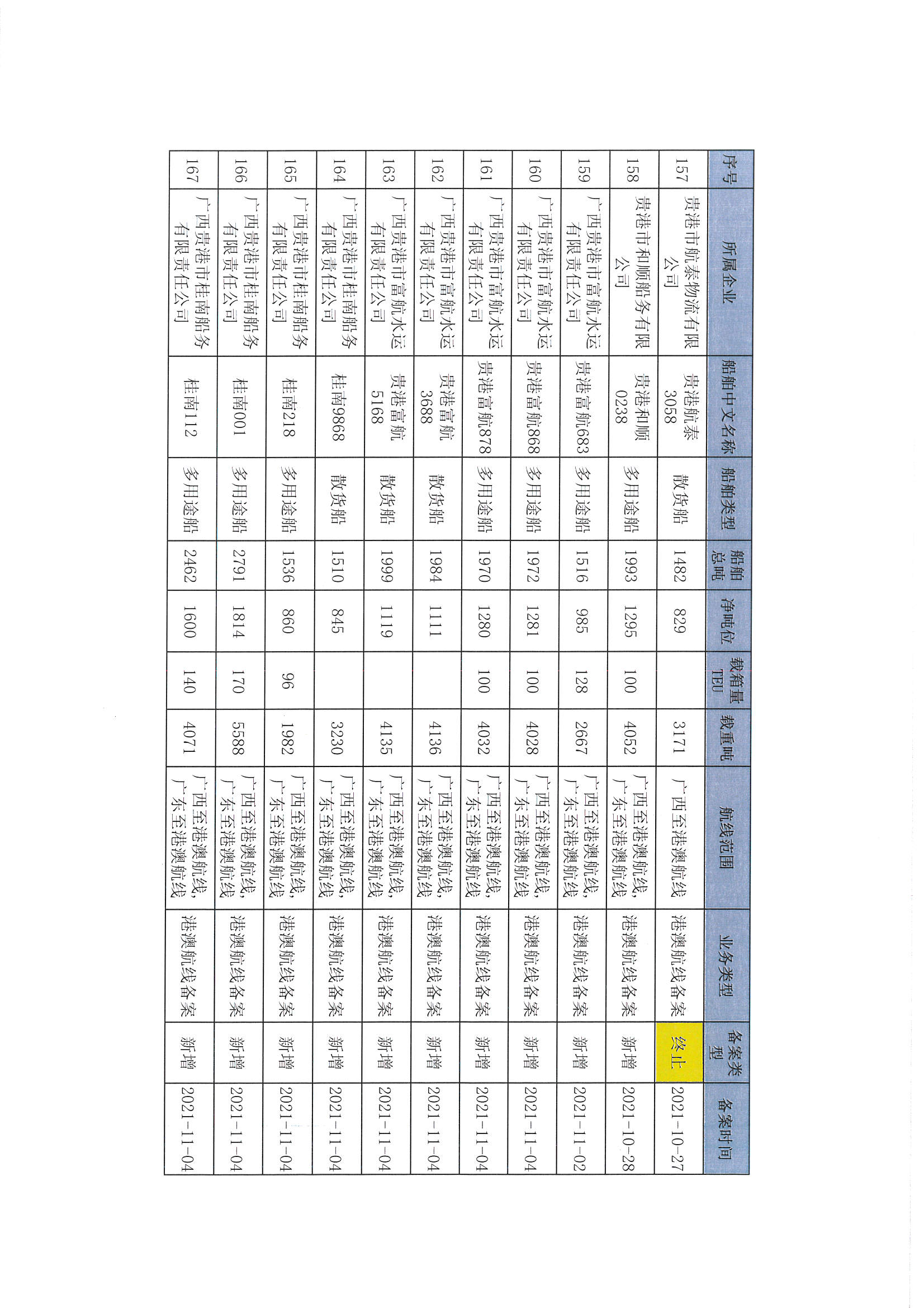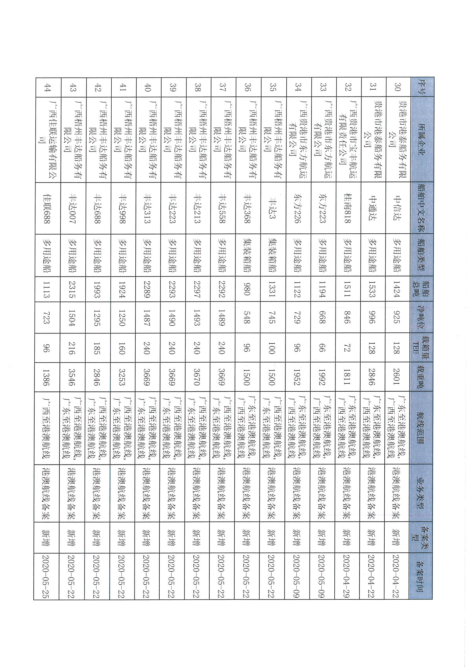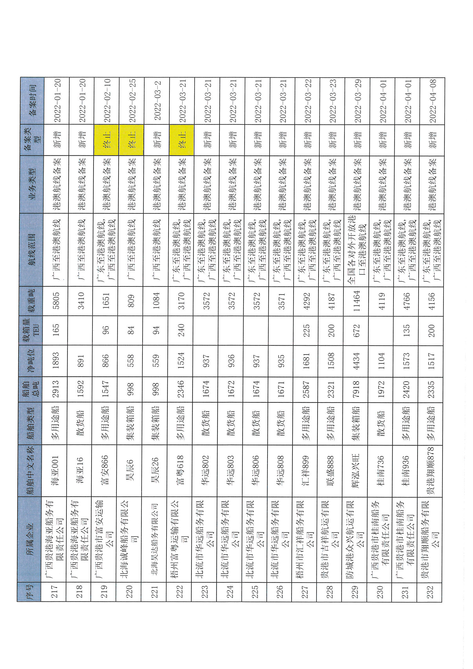 截至2022年12月11日在交通运输部水路运输建设综合管理信息系统完成备案的港澳航线水路运输船舶