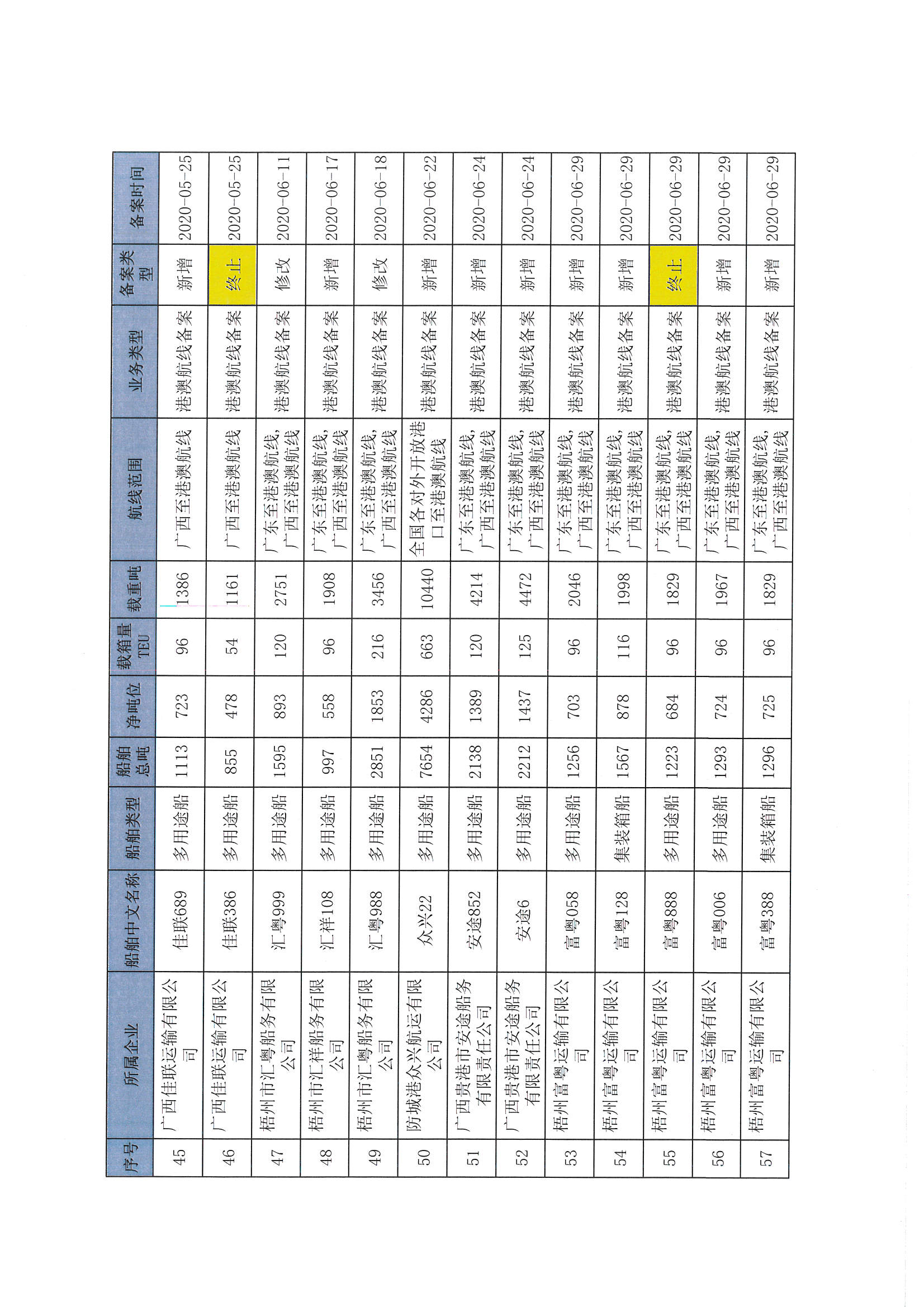 内地与港澳普通货物运输企业查询