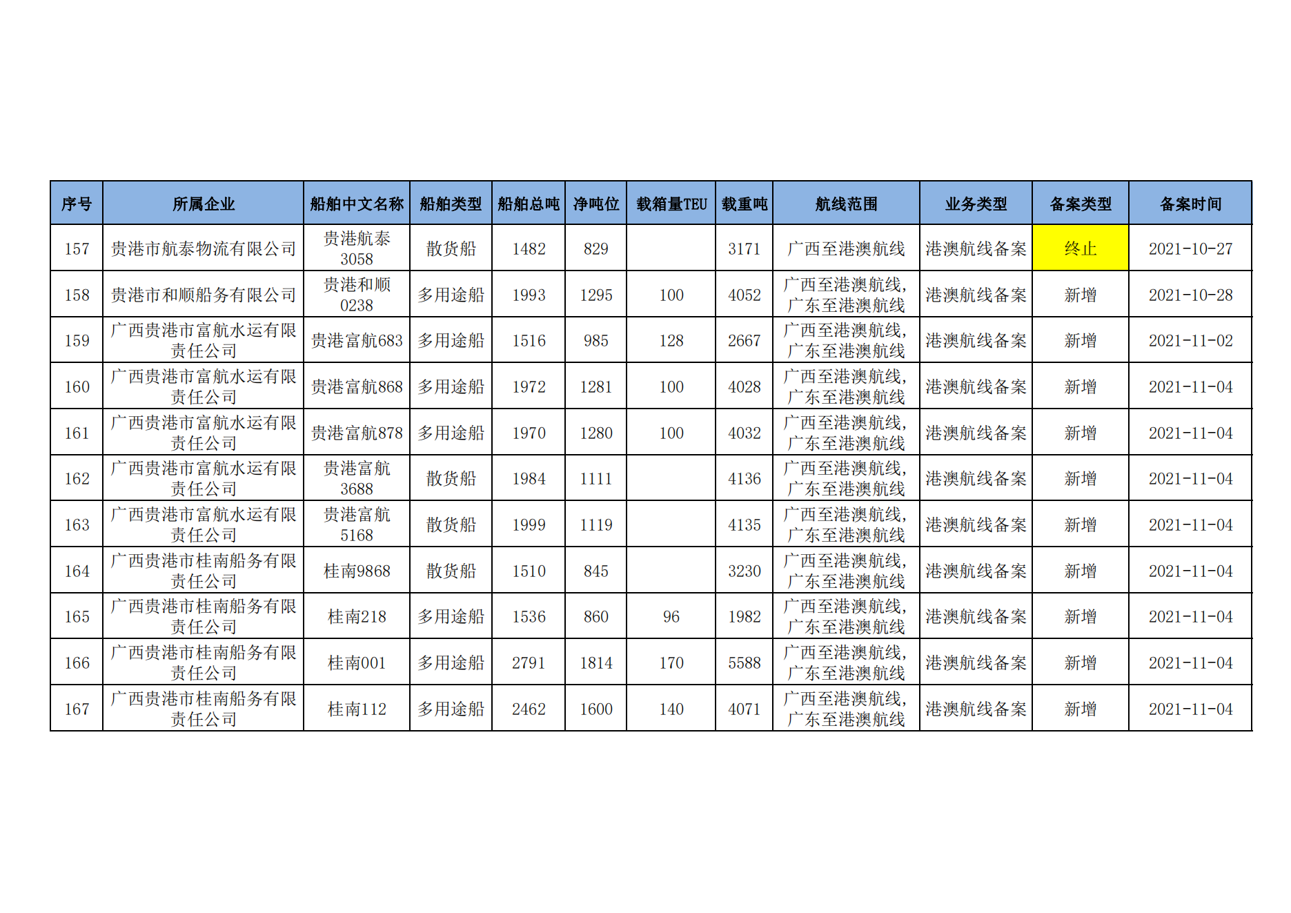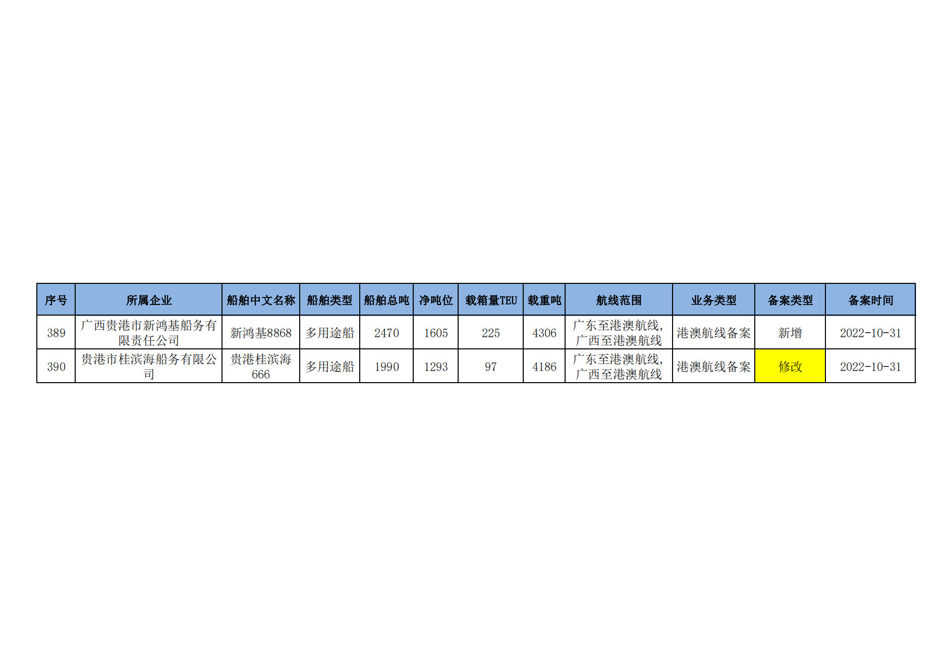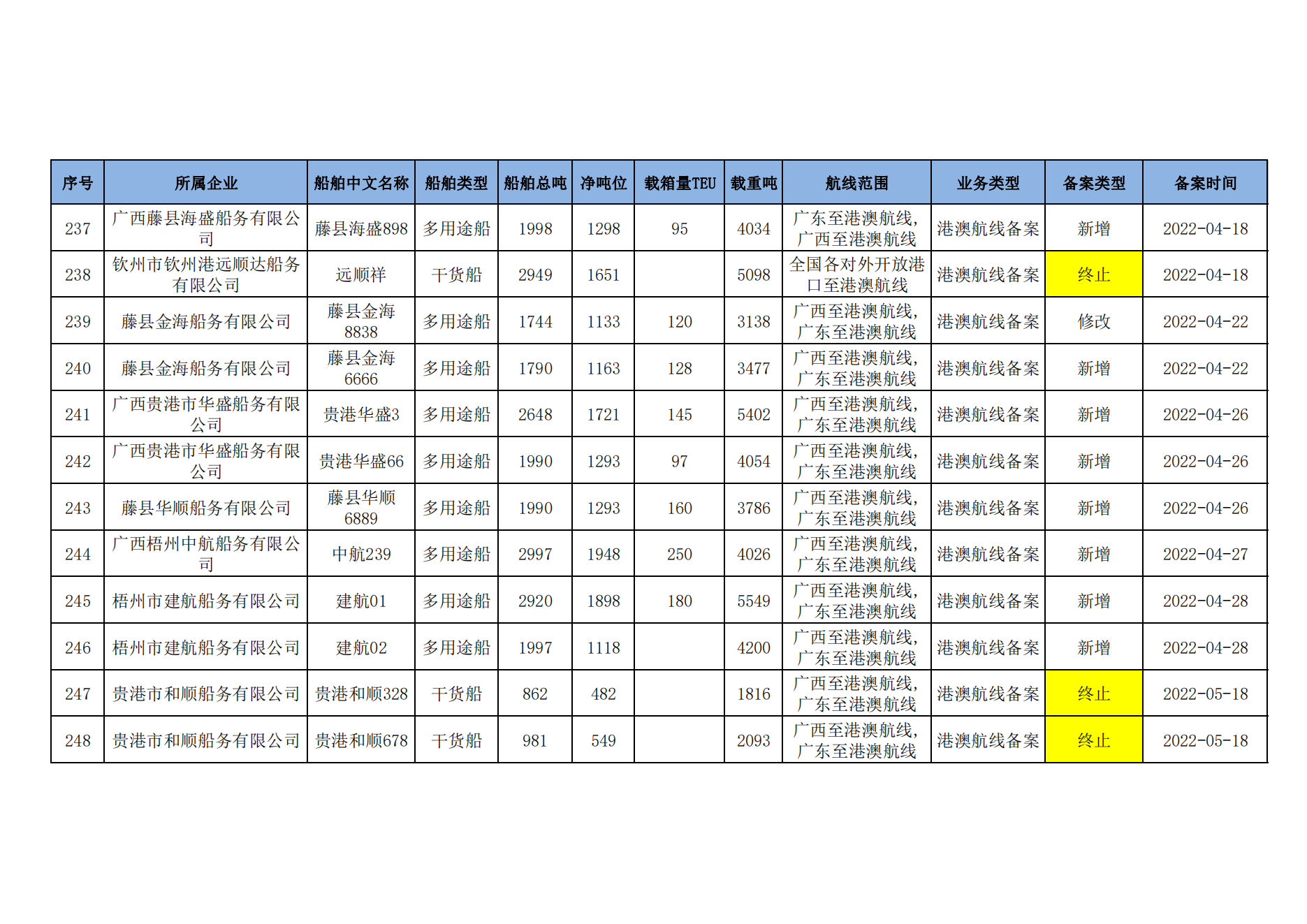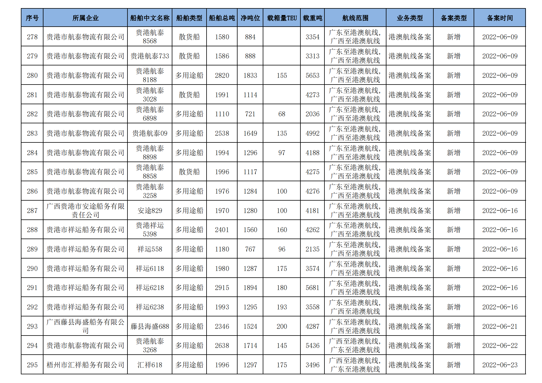 截至2023年2月11日在交通运输部水路运输建设综合管理信息系统完成备案的港澳航线水路运输船舶