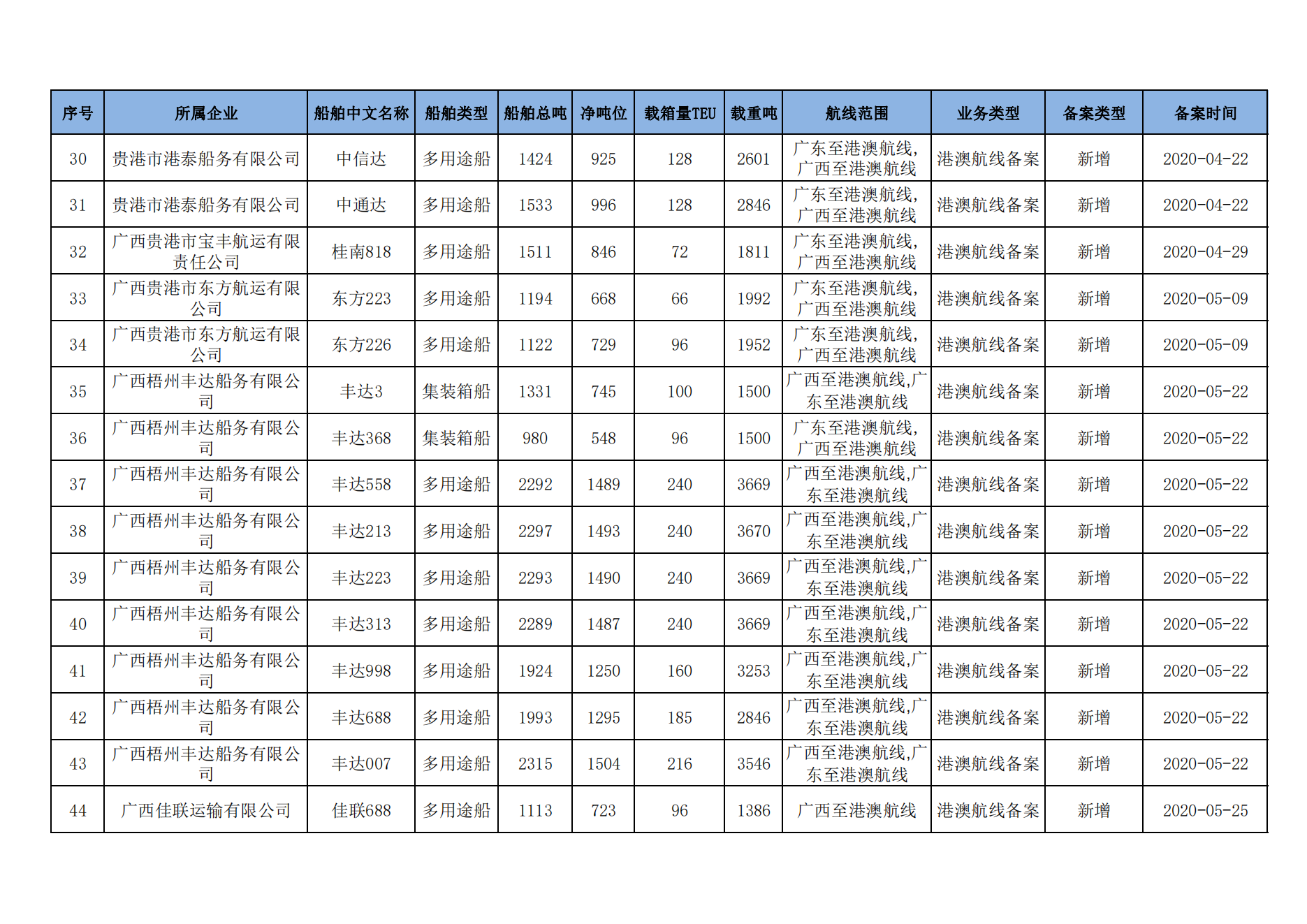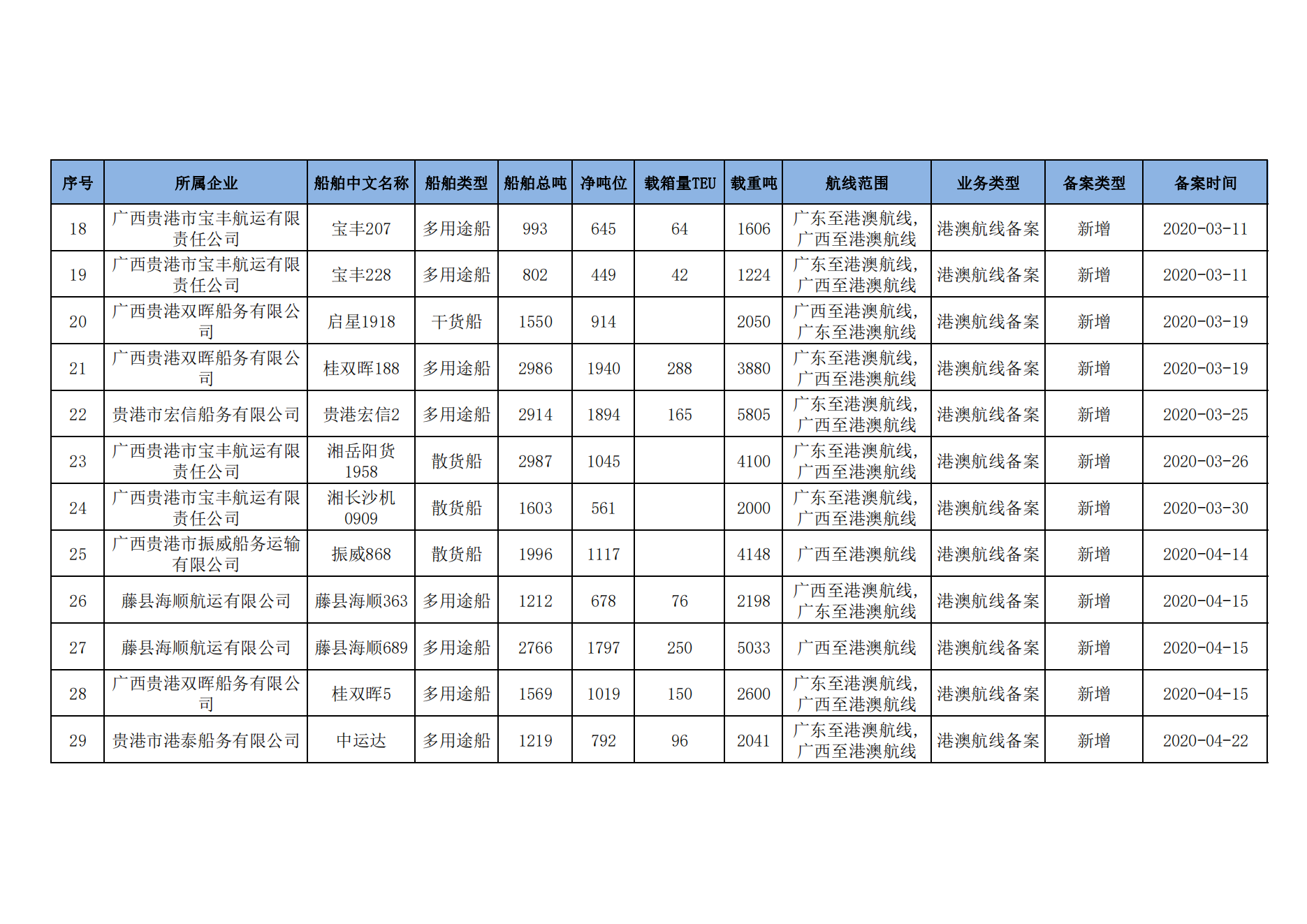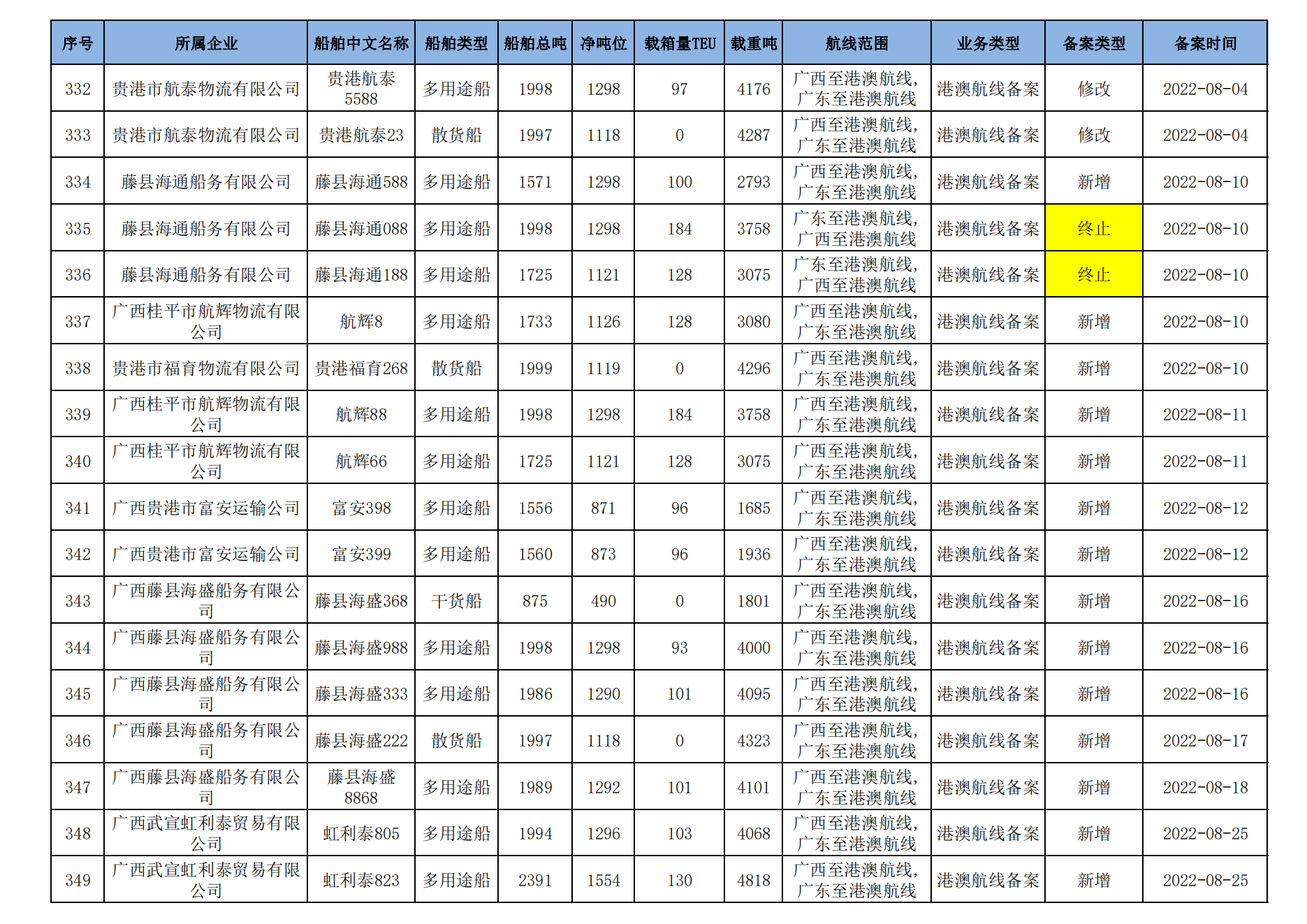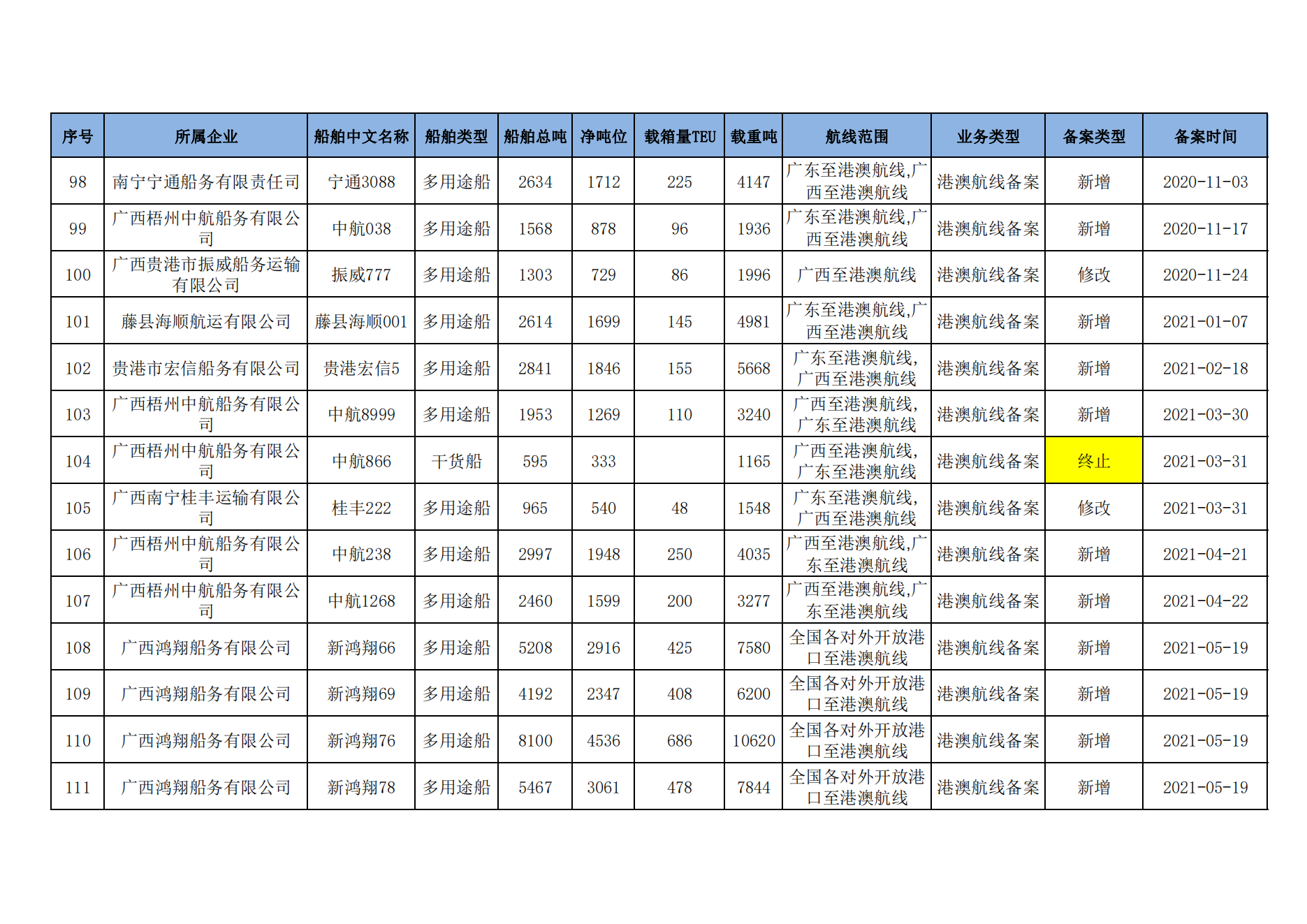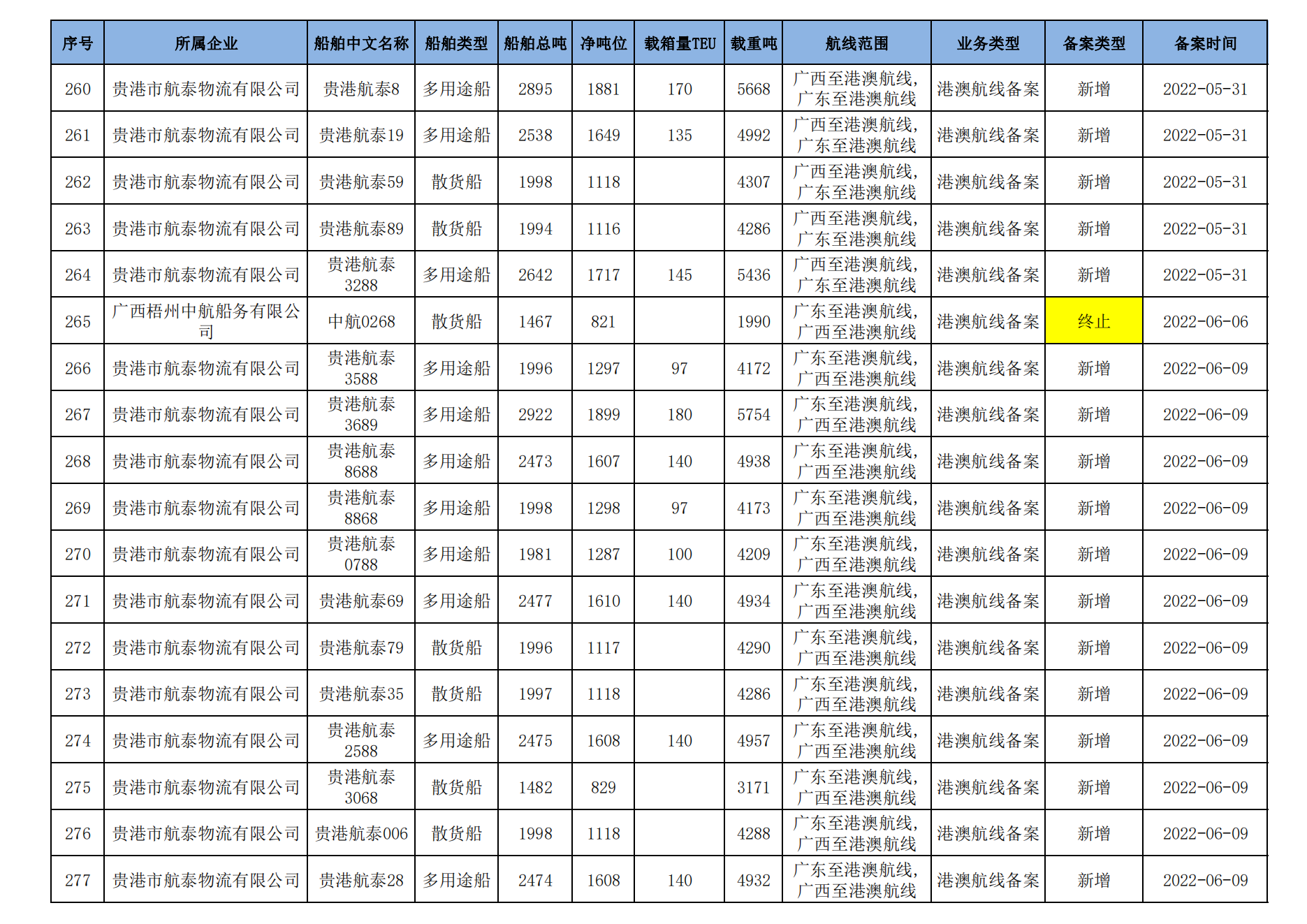 截至2023年2月11日在交通运输部水路运输建设综合管理信息系统完成备案的港澳航线水路运输船舶