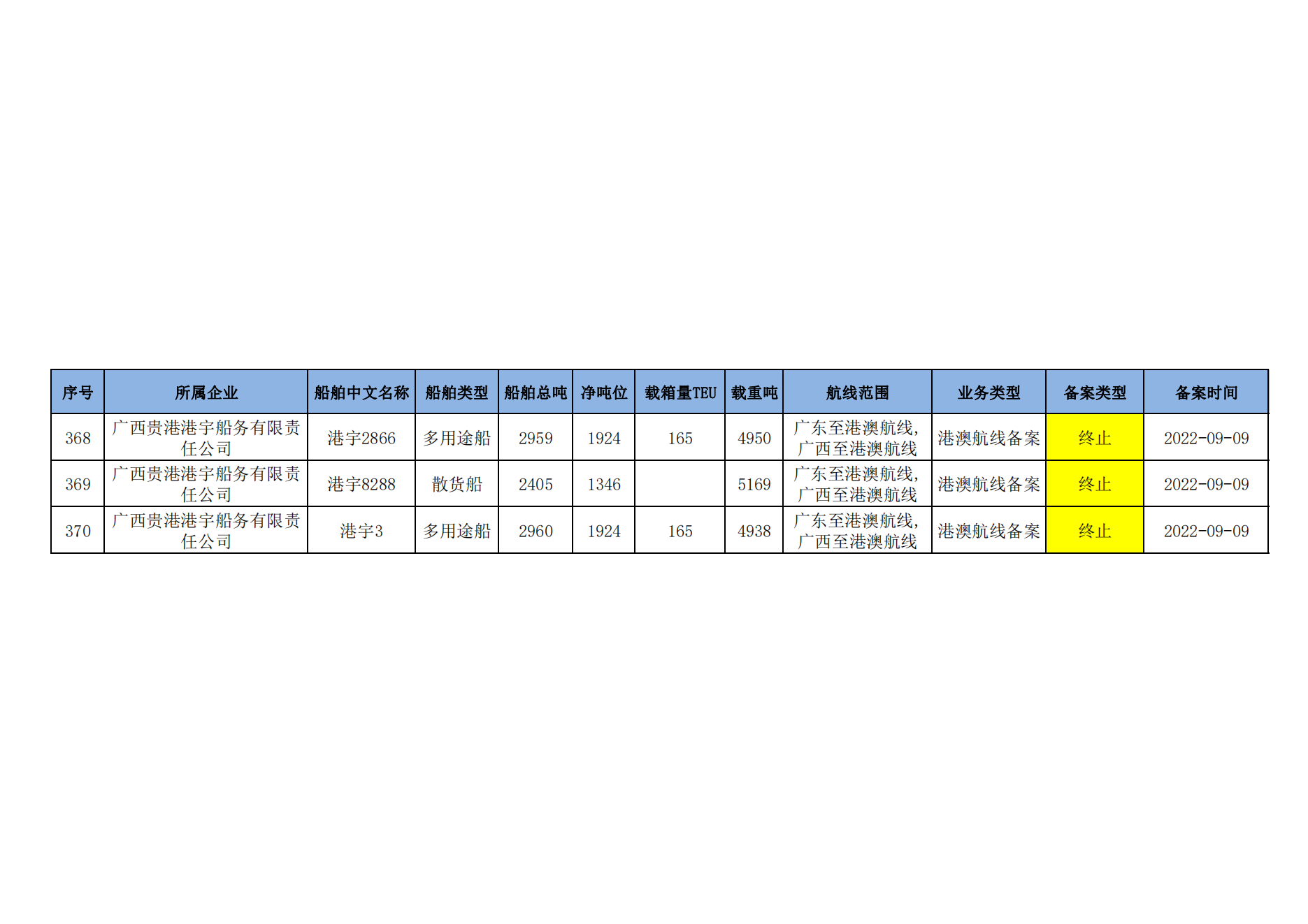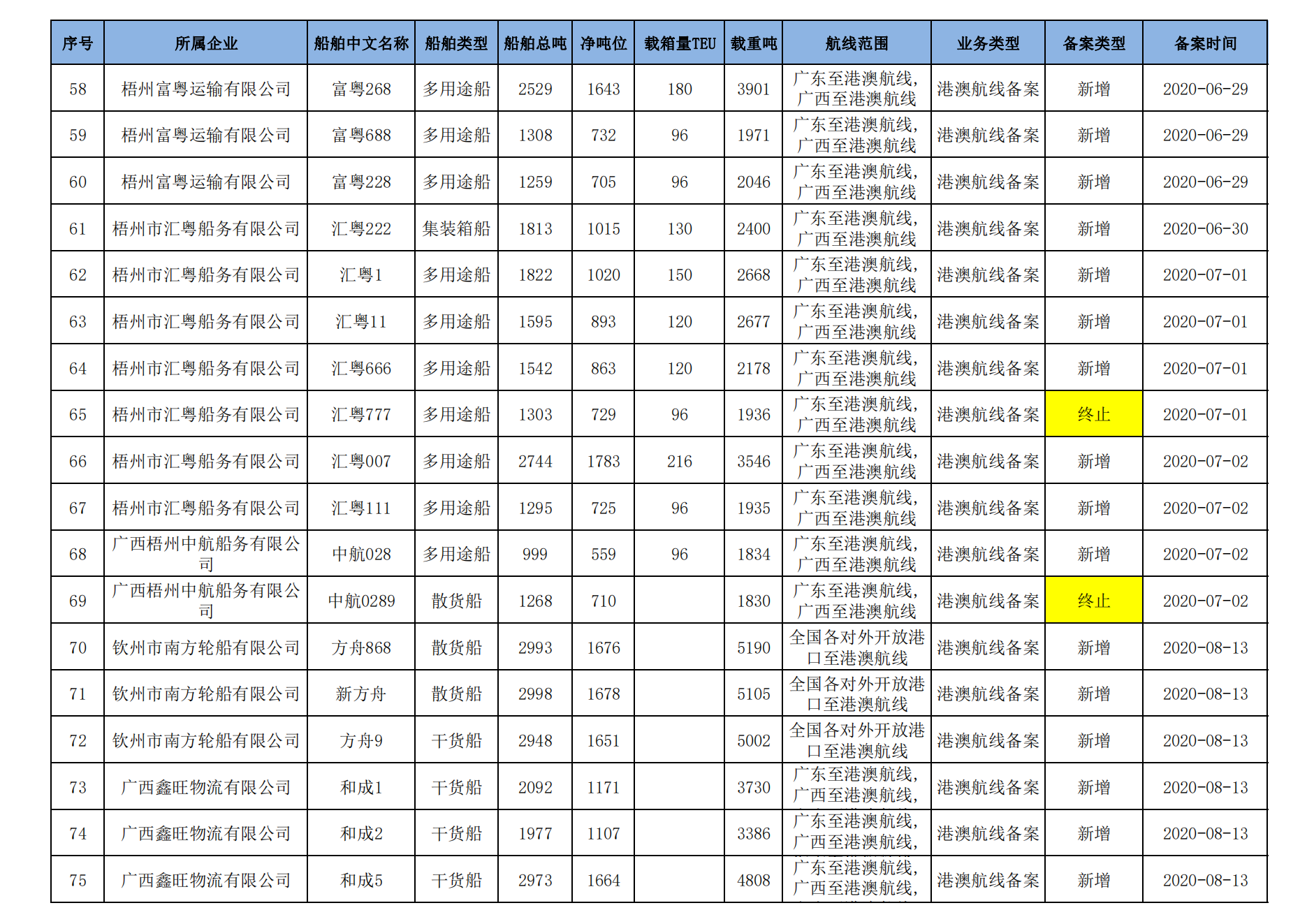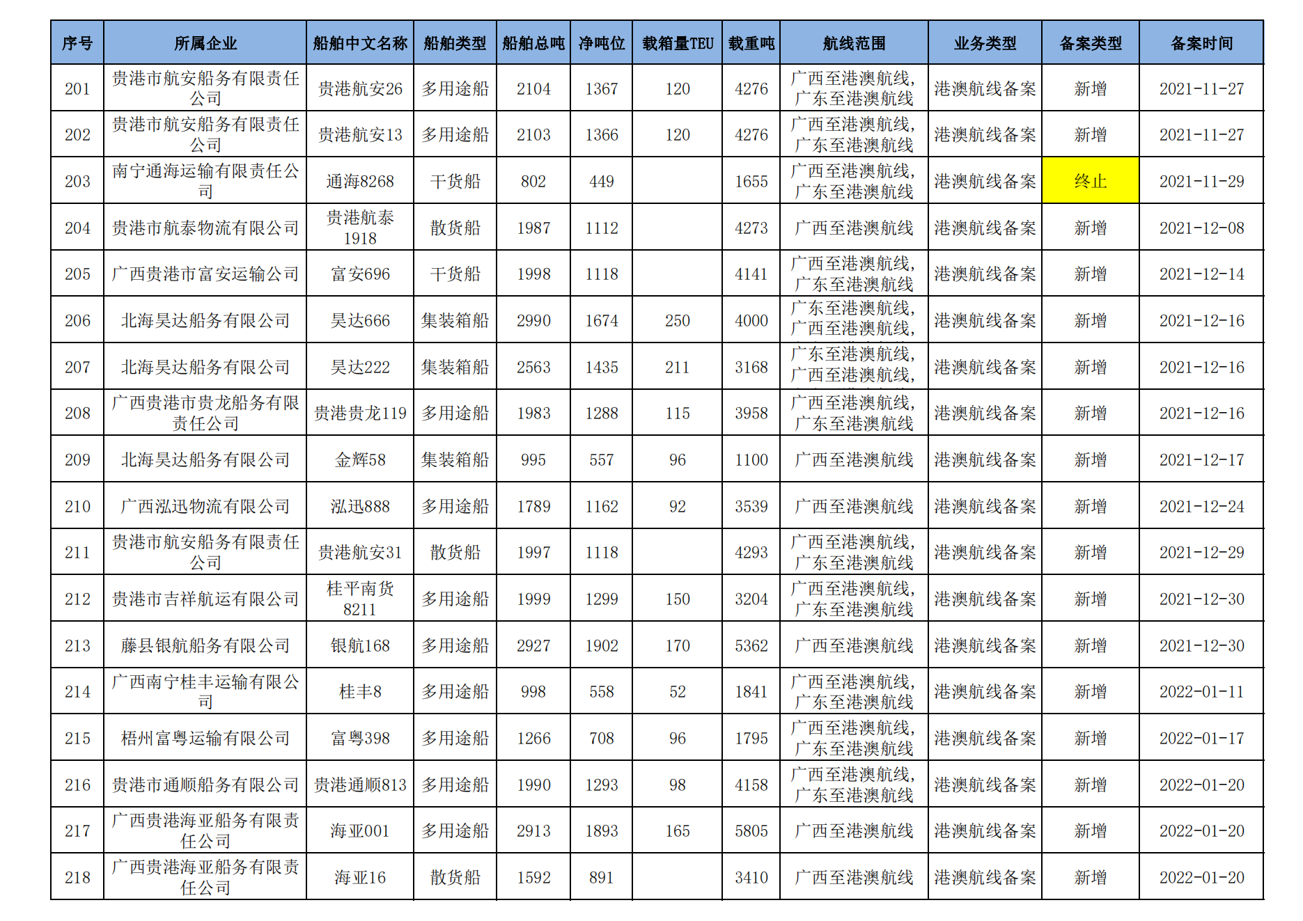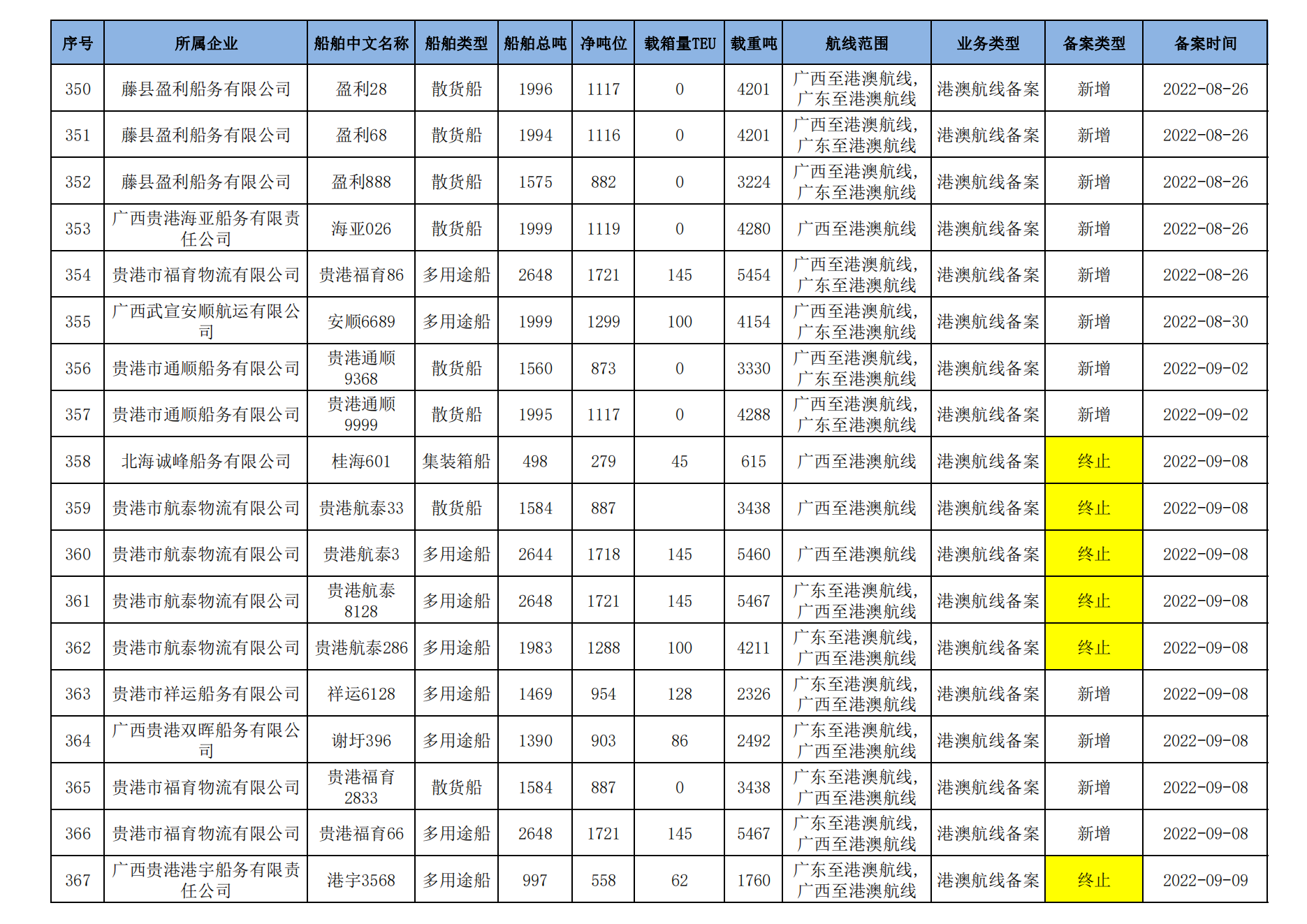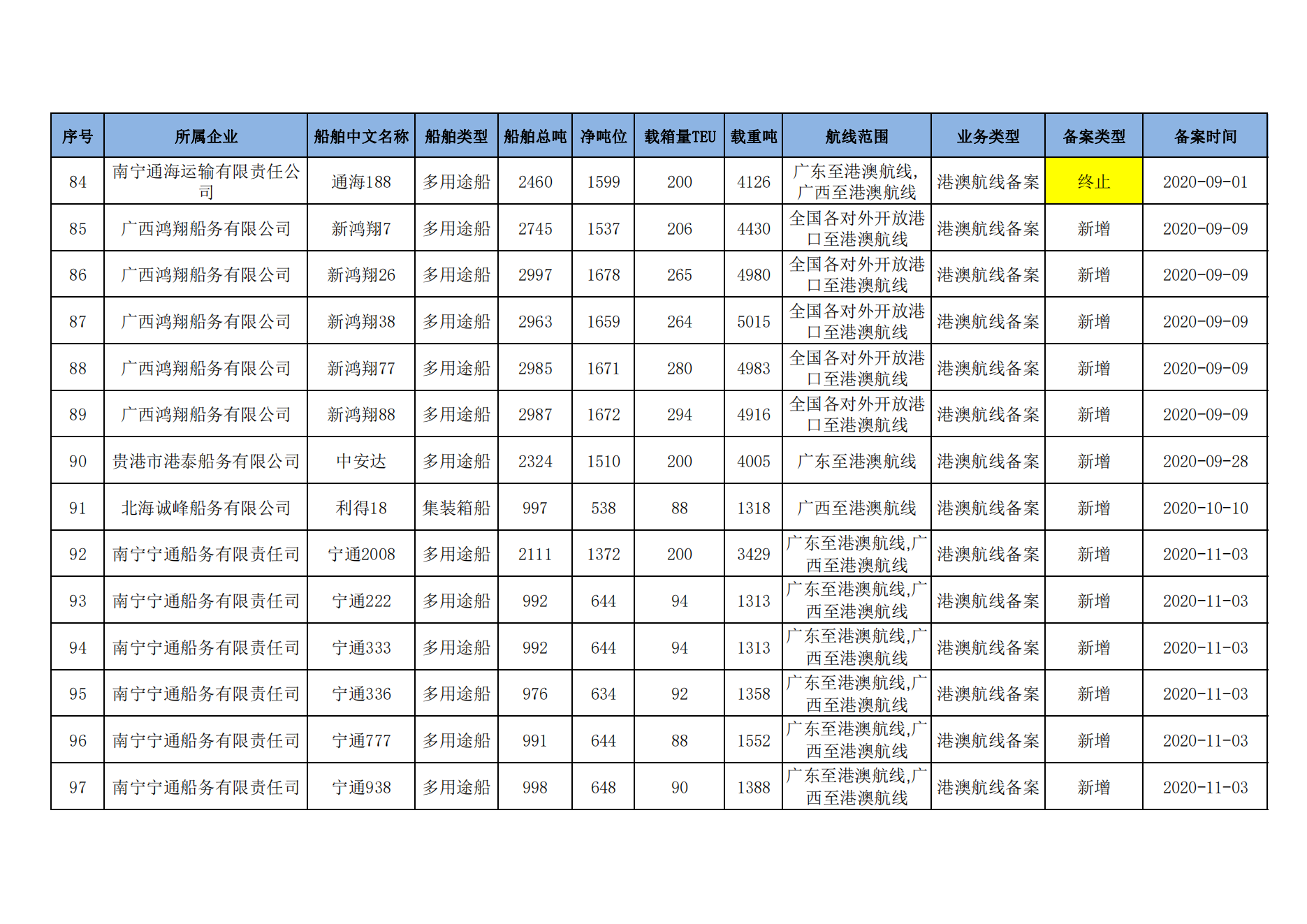 截至2023年2月11日在交通运输部水路运输建设综合管理信息系统完成备案的港澳航线水路运输船舶