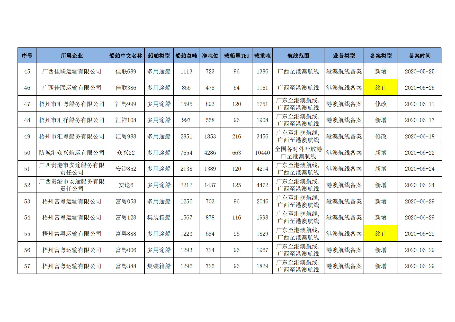 内地与港澳普通货物运输企业查询