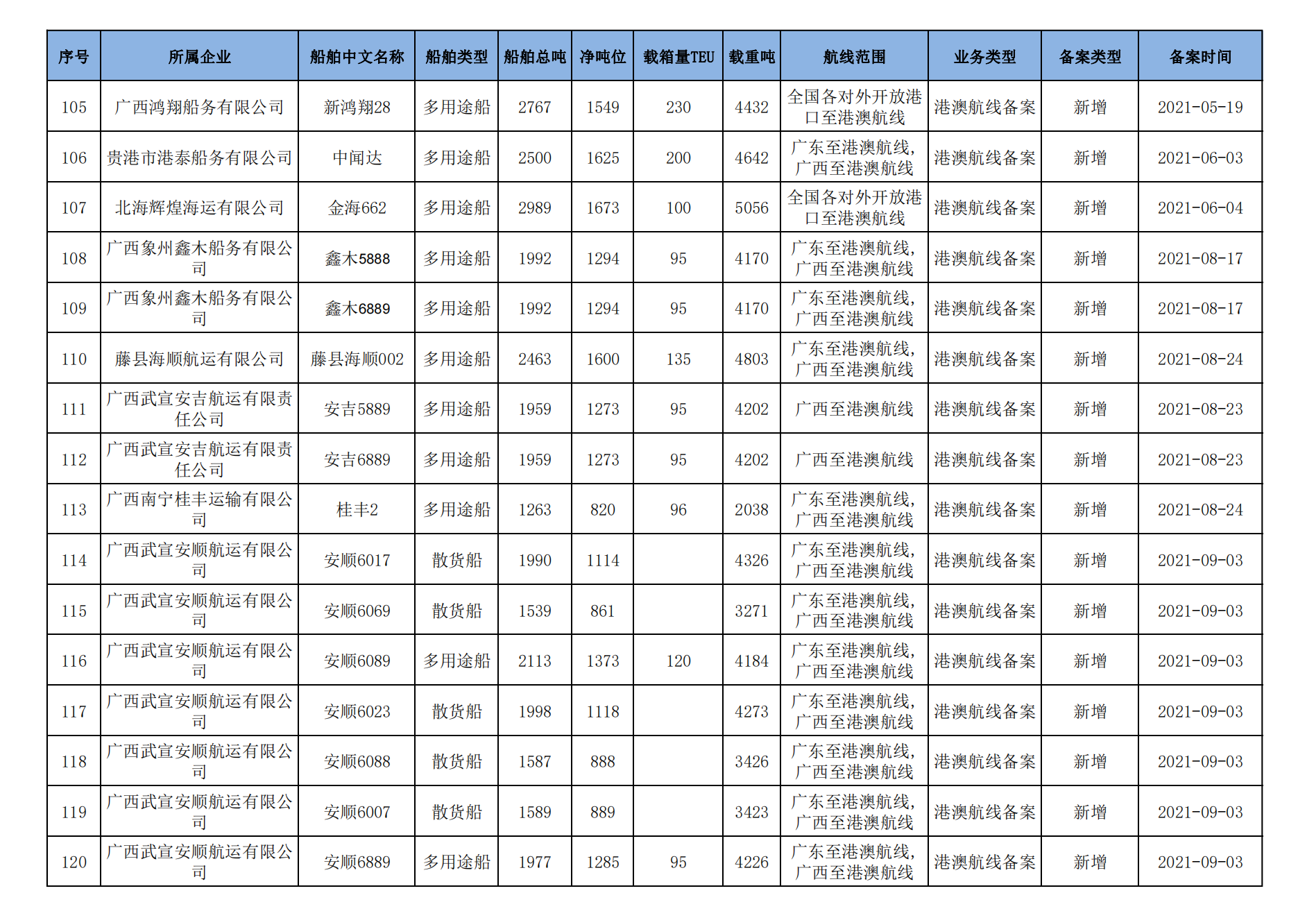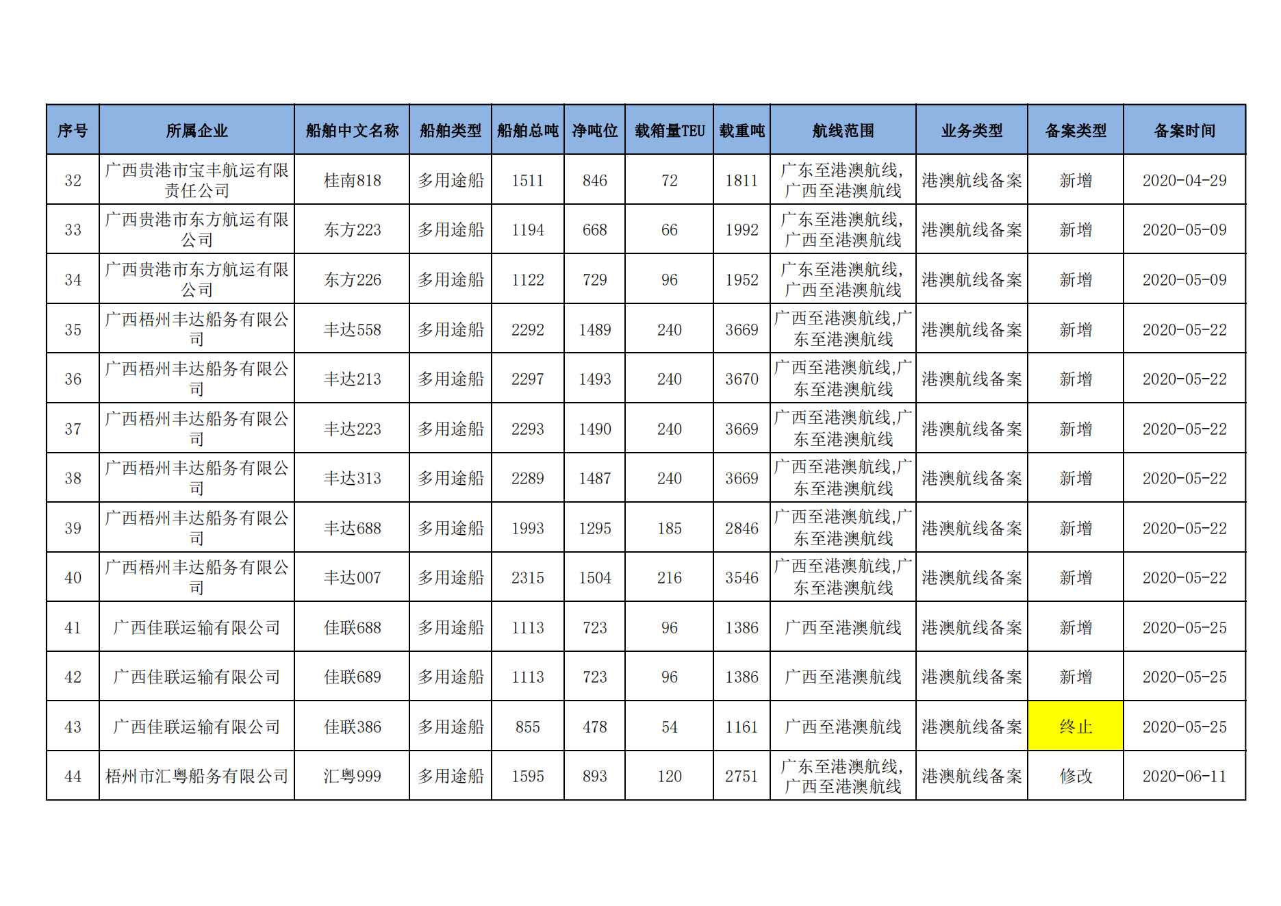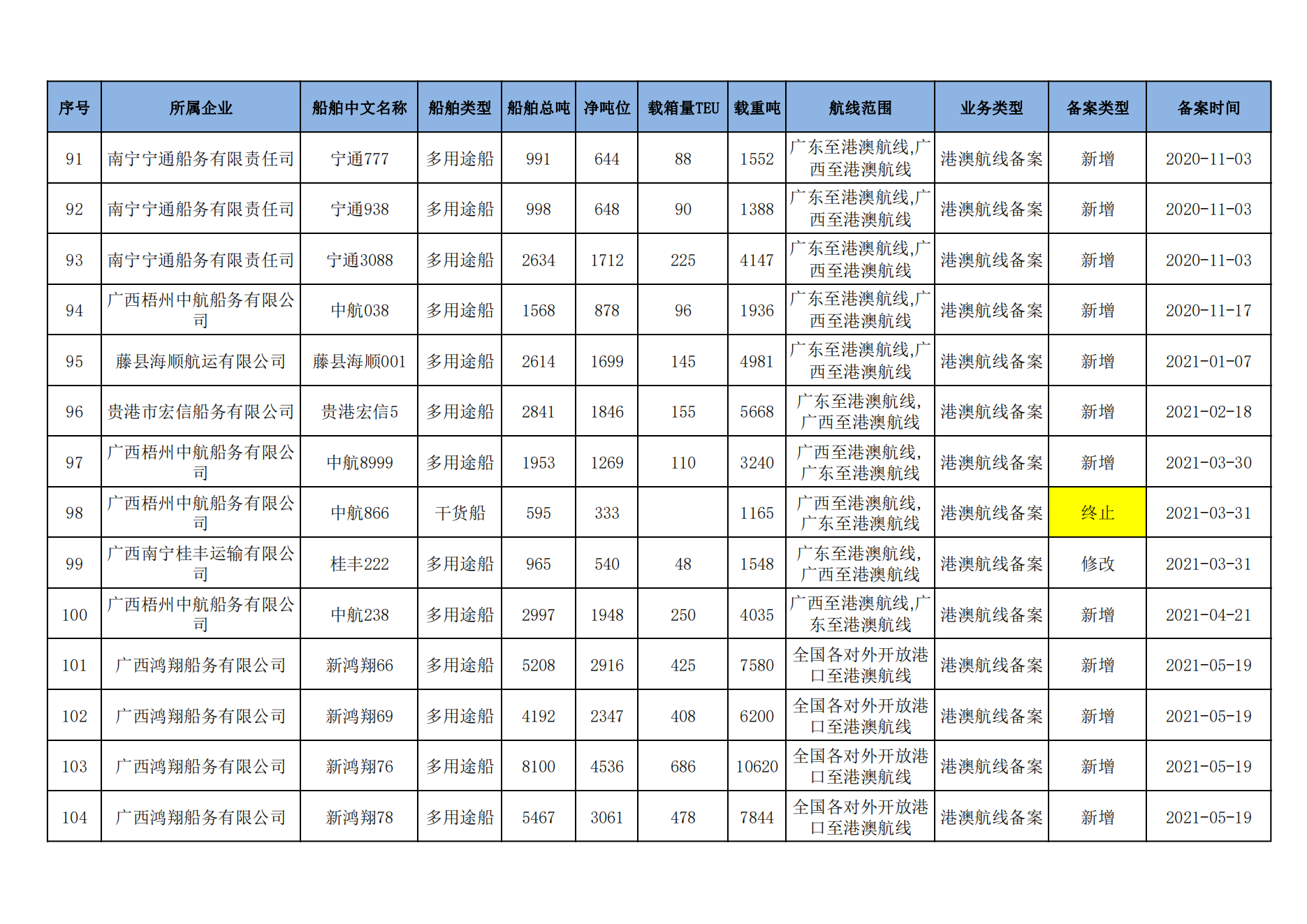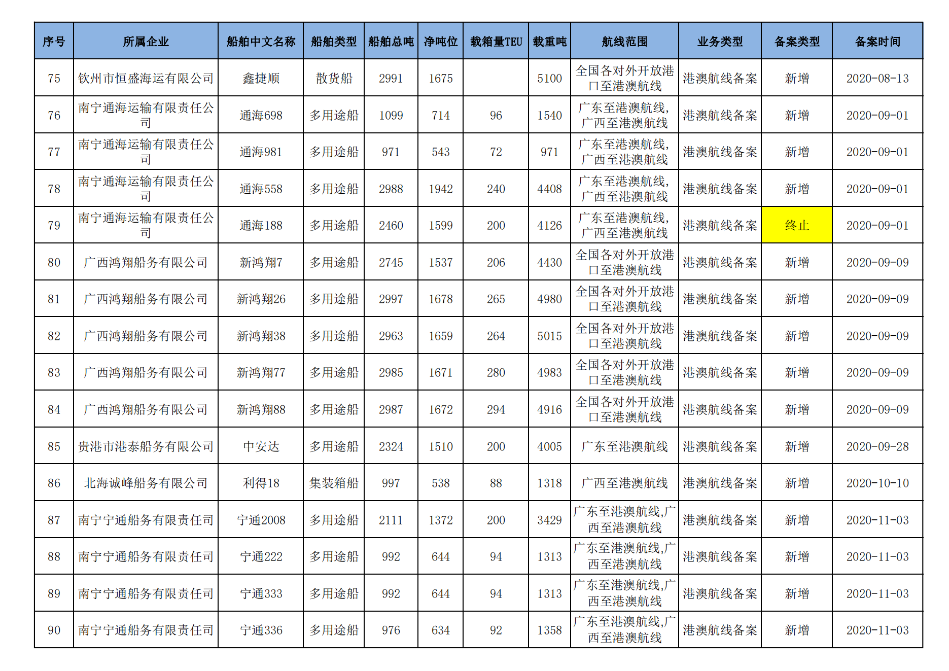 截至2023年3月11日在交通运输部水路运输建设综合管理信息系统完成备案的港澳航线水路运输船舶