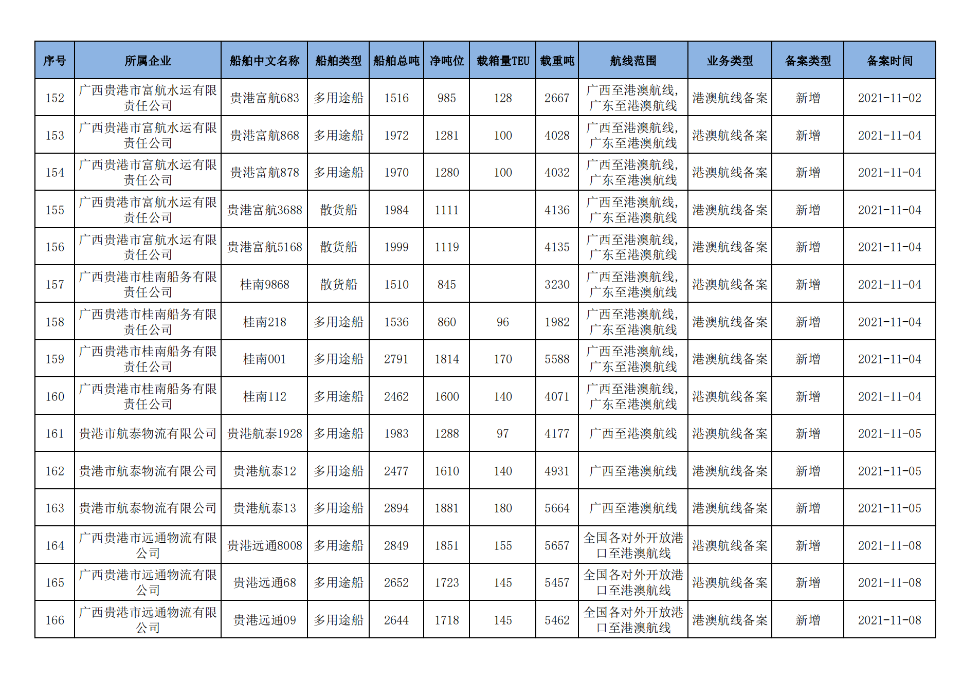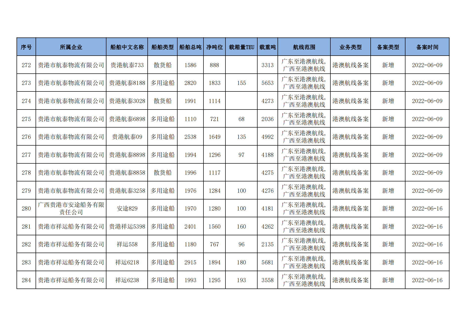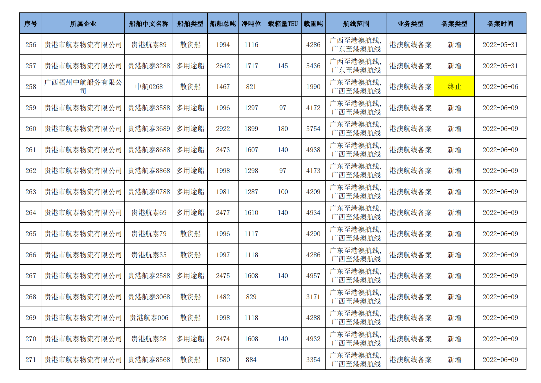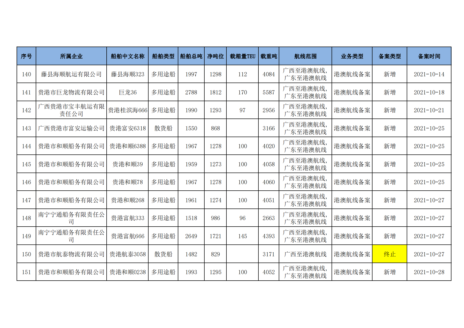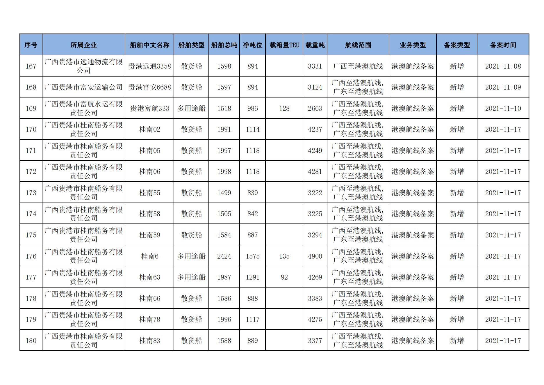 截至2023年3月11日在交通运输部水路运输建设综合管理信息系统完成备案的港澳航线水路运输船舶