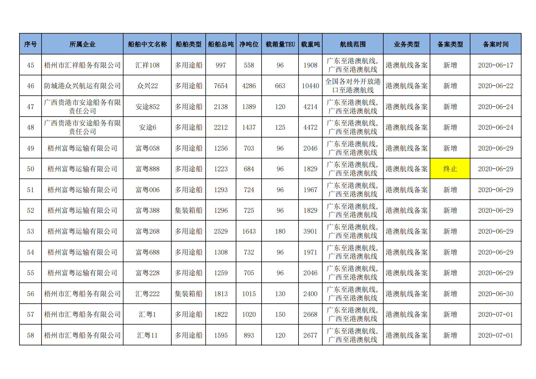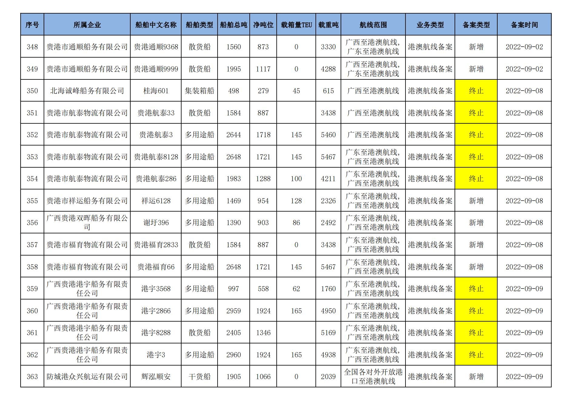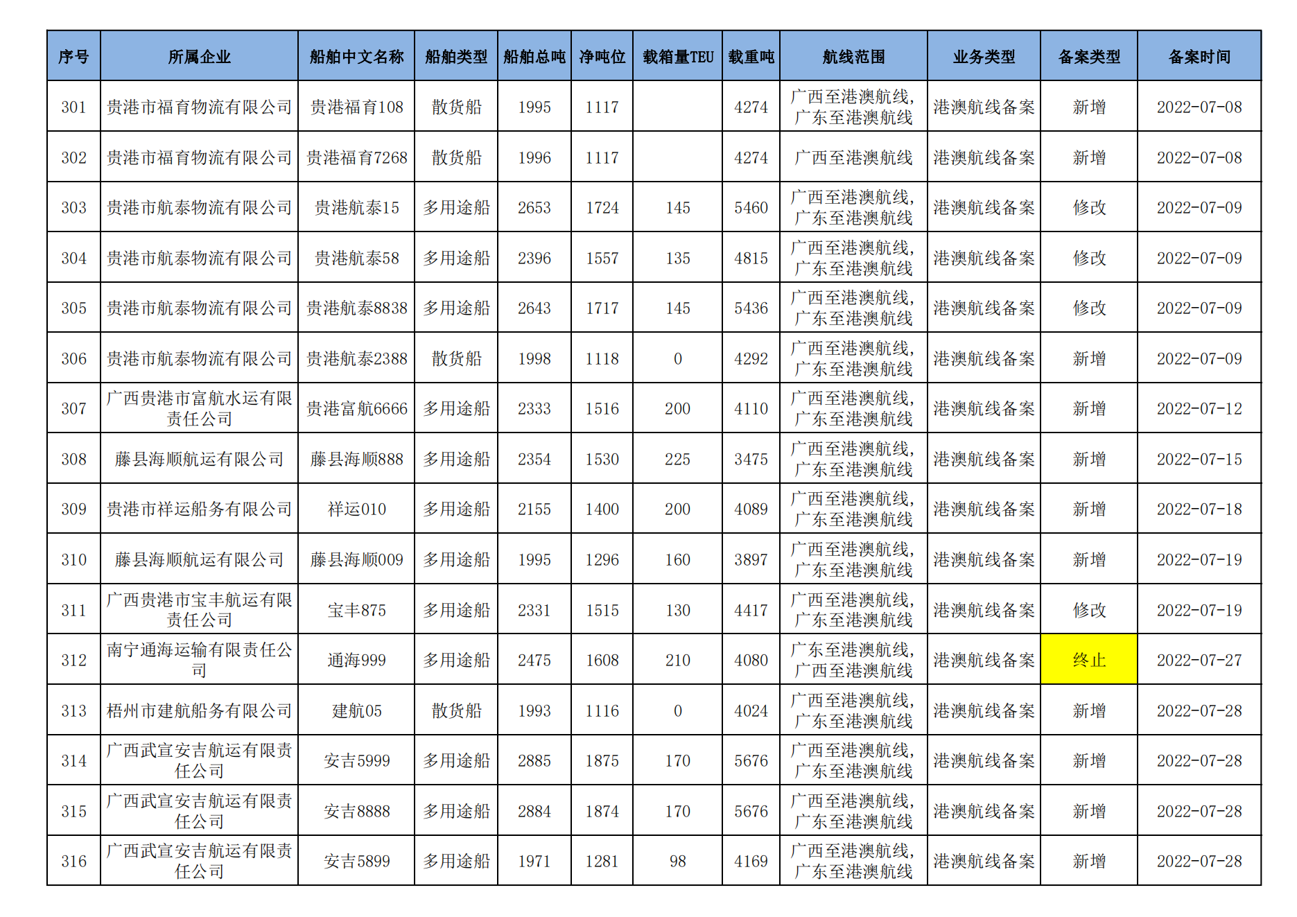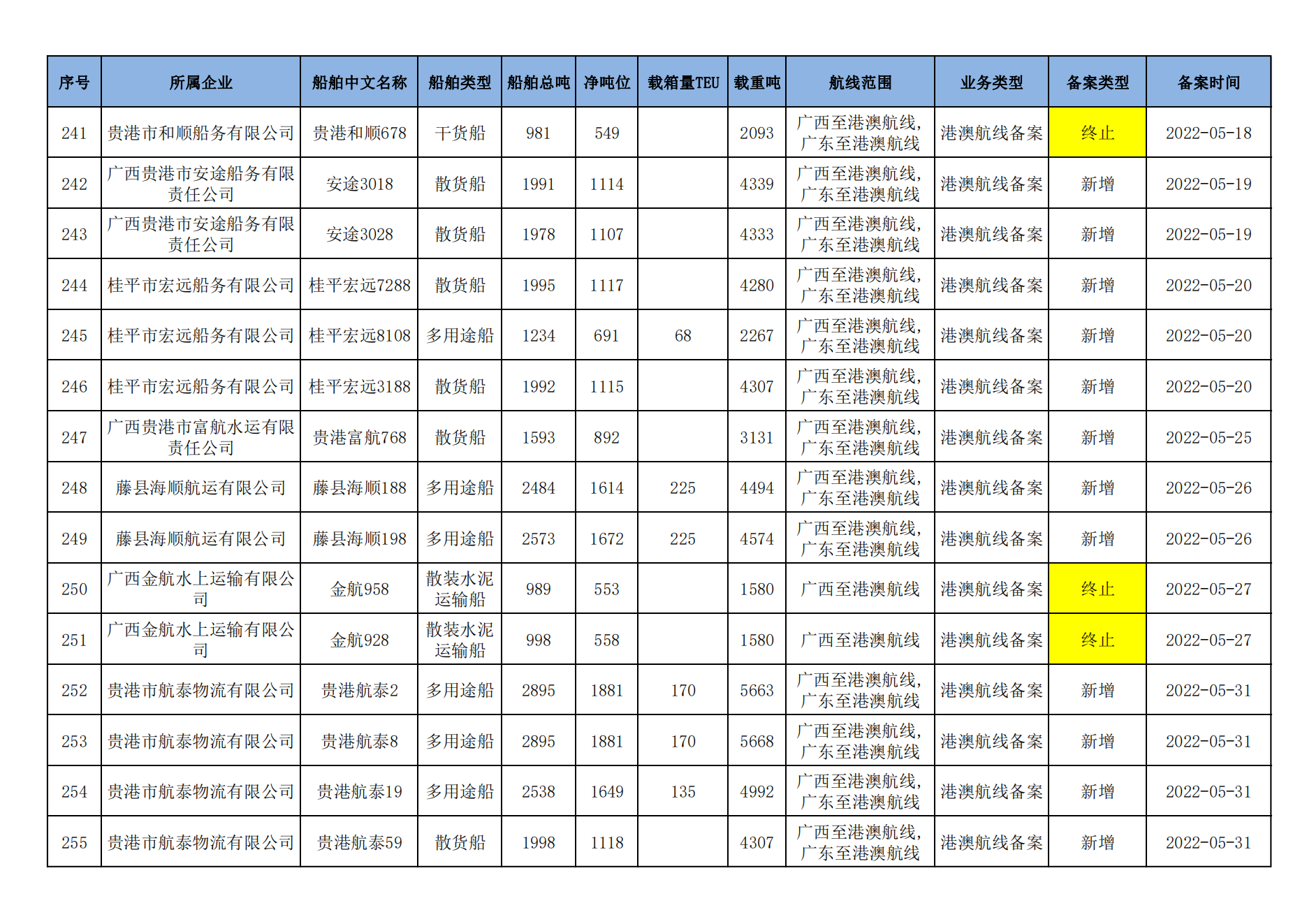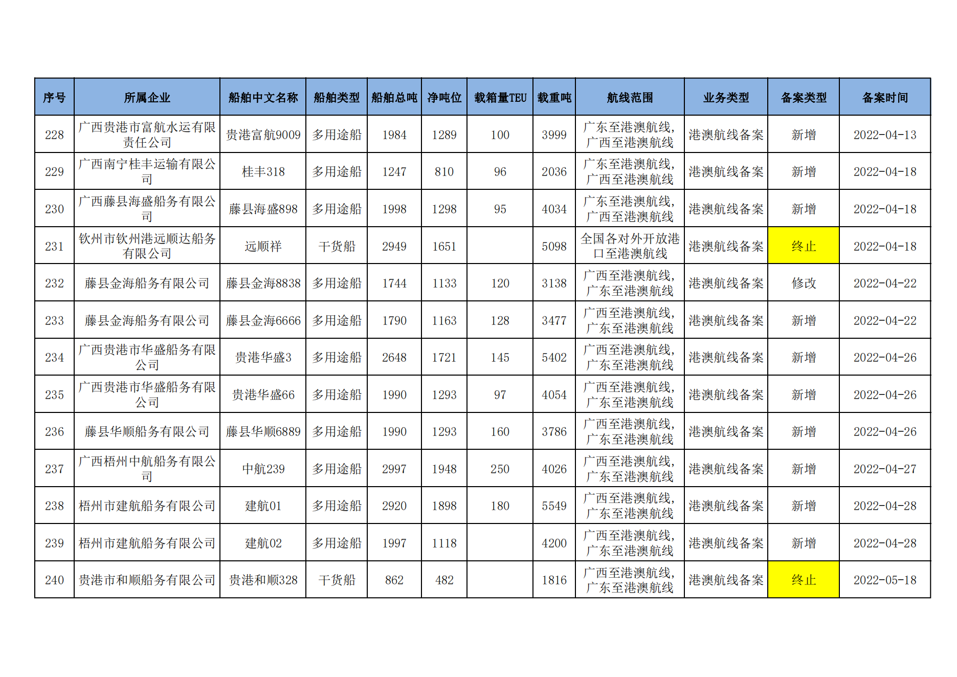 截至2023年3月11日在交通运输部水路运输建设综合管理信息系统完成备案的港澳航线水路运输船舶