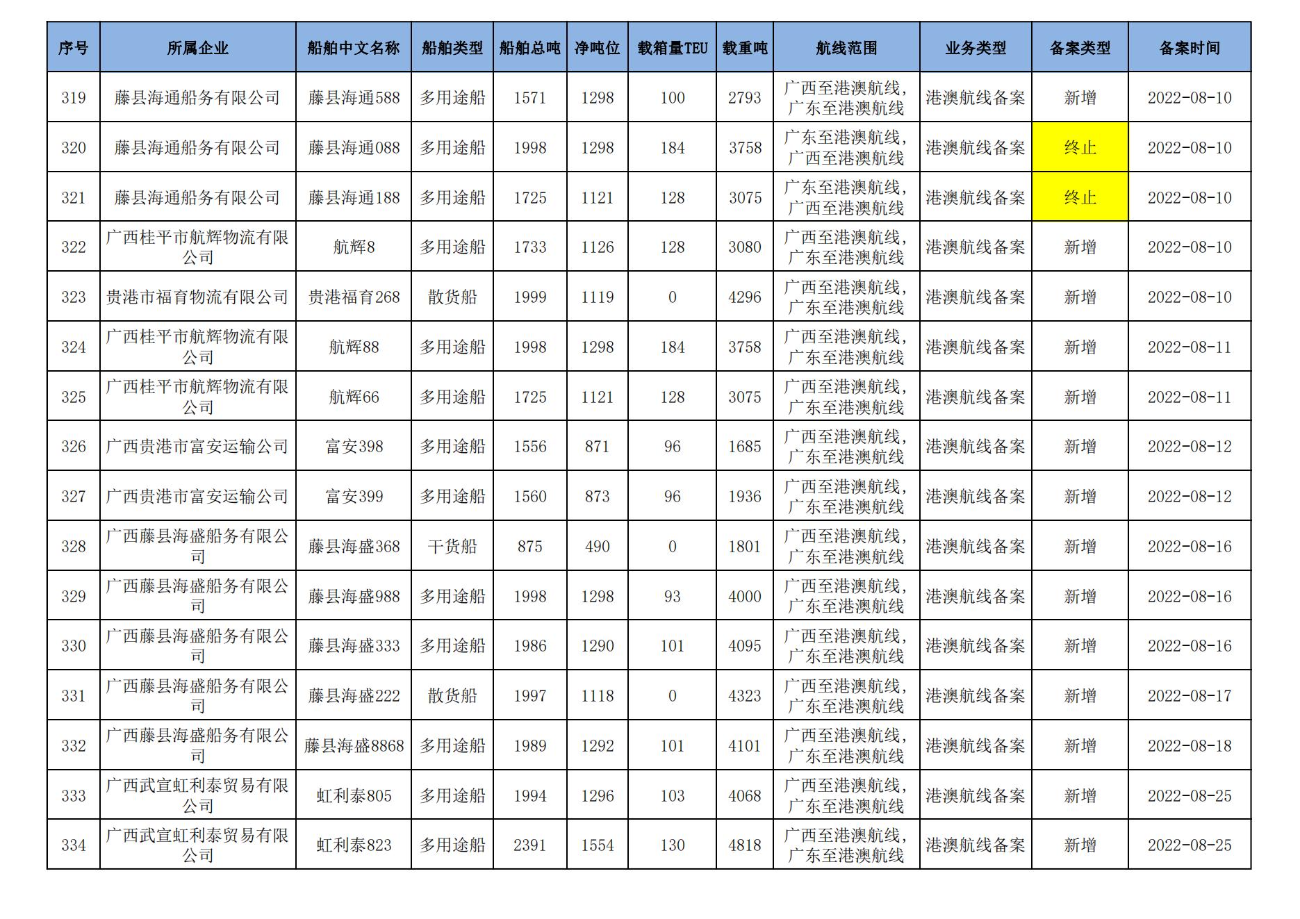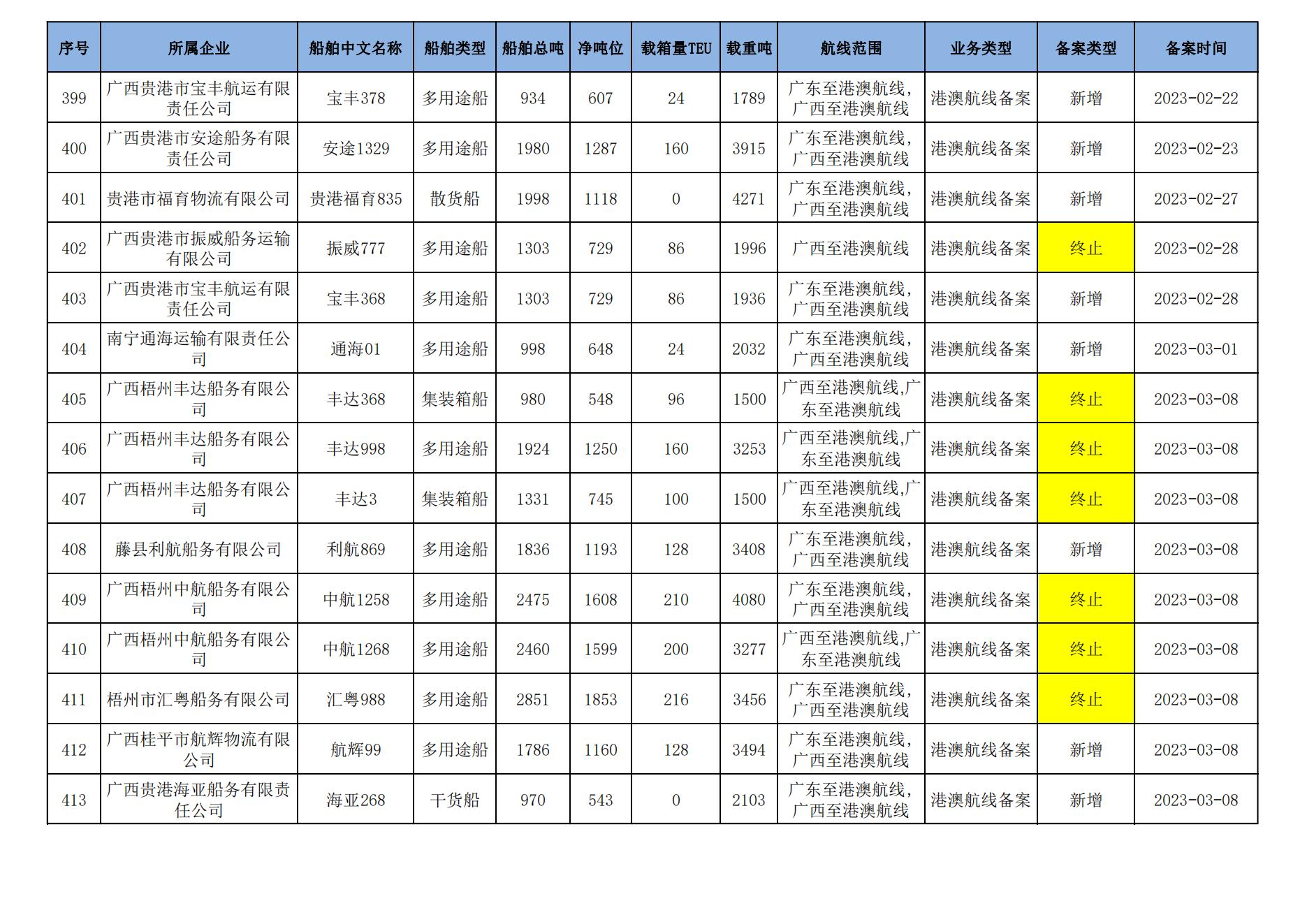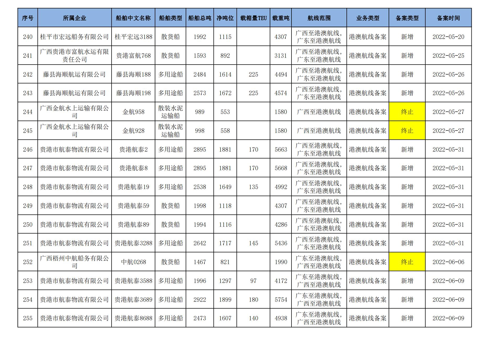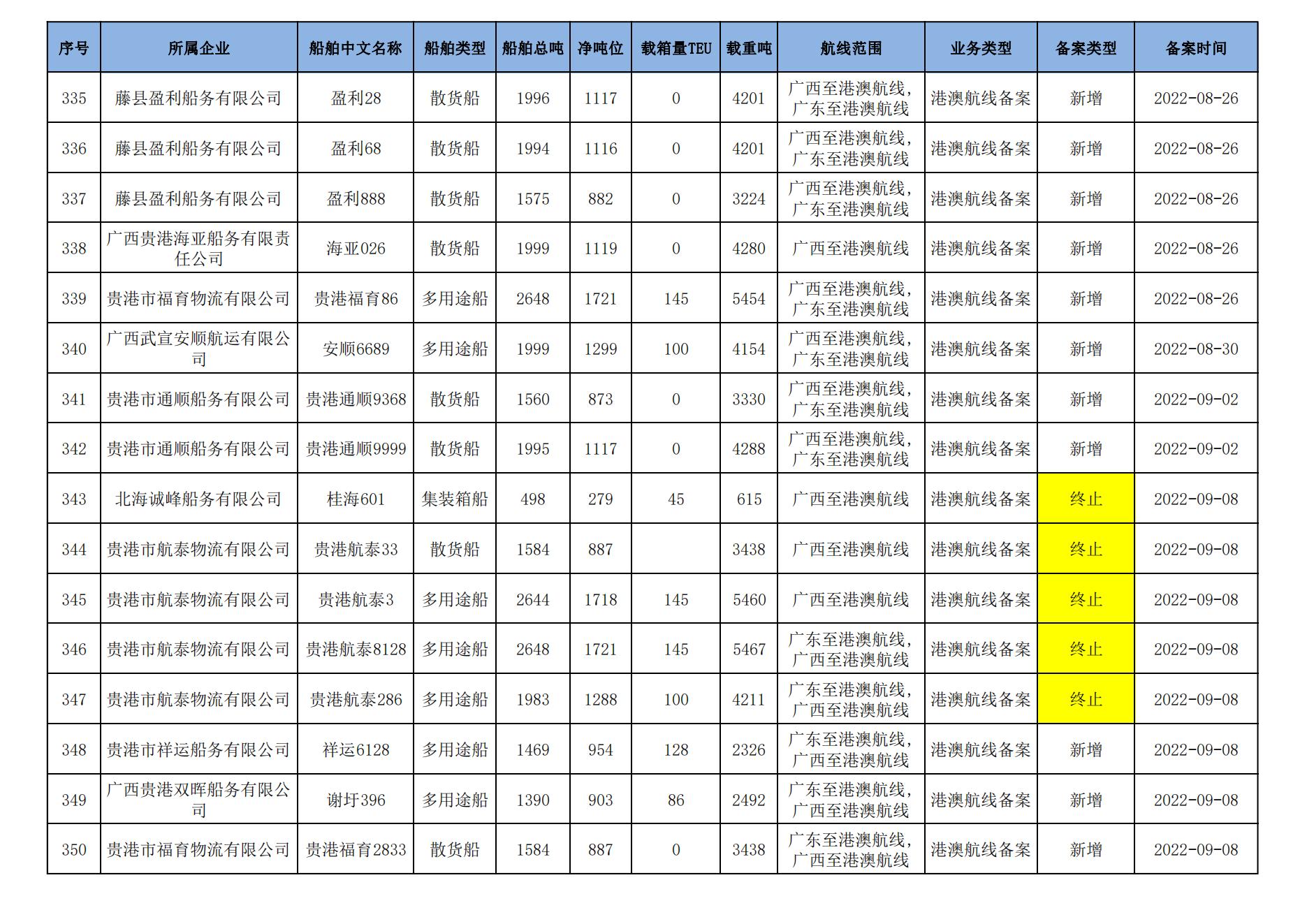截至2023年7月11日在交通运输部水路运输建设综合管理信息系统完成备案的港澳航线水路运输船舶