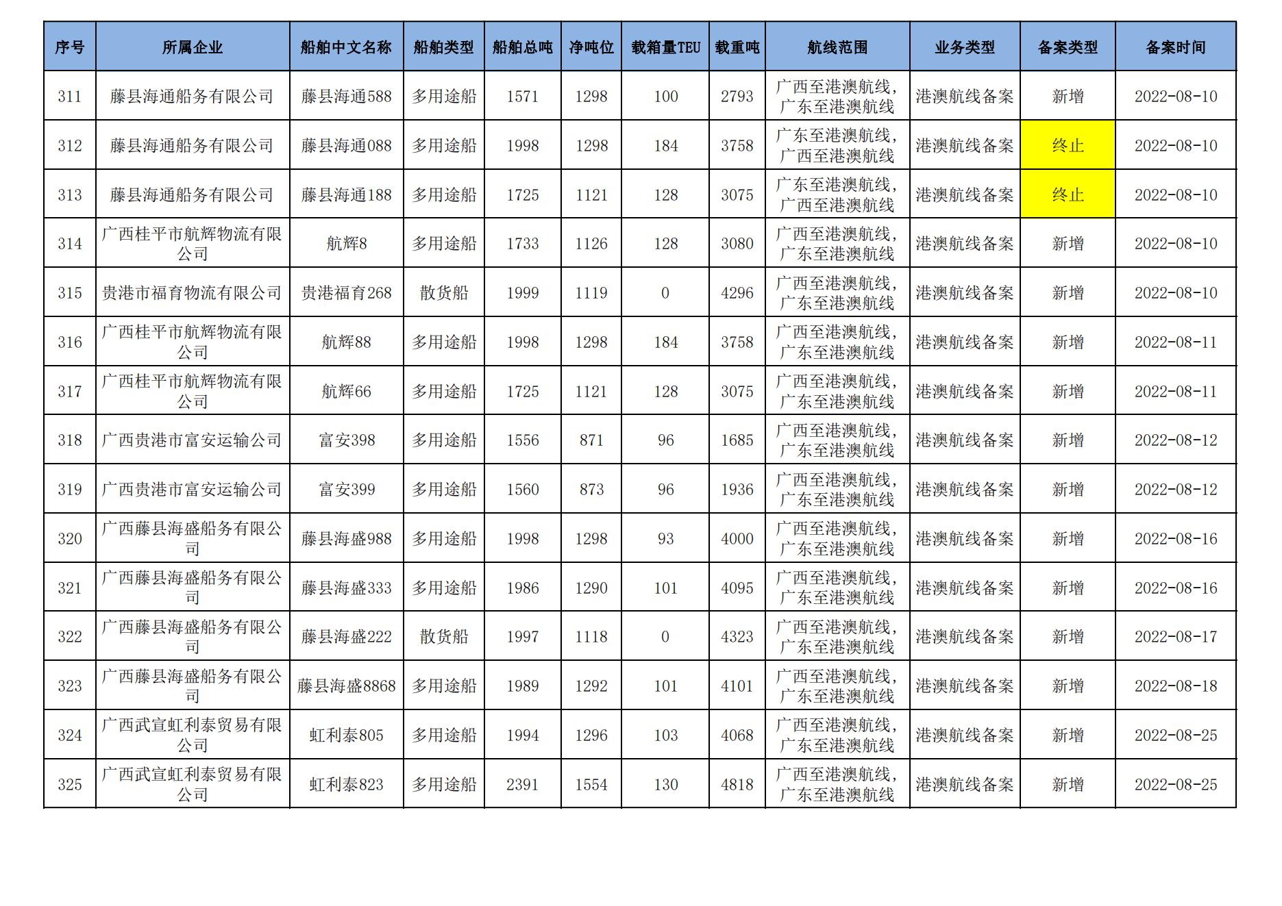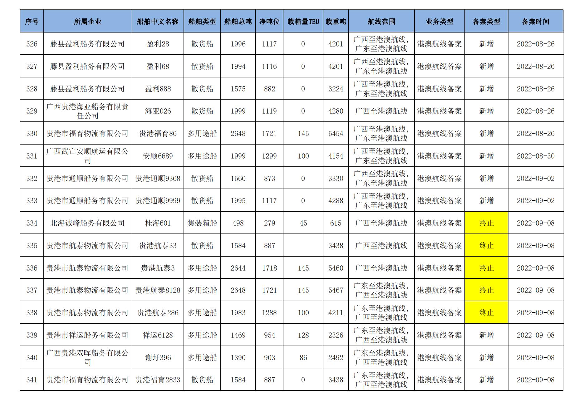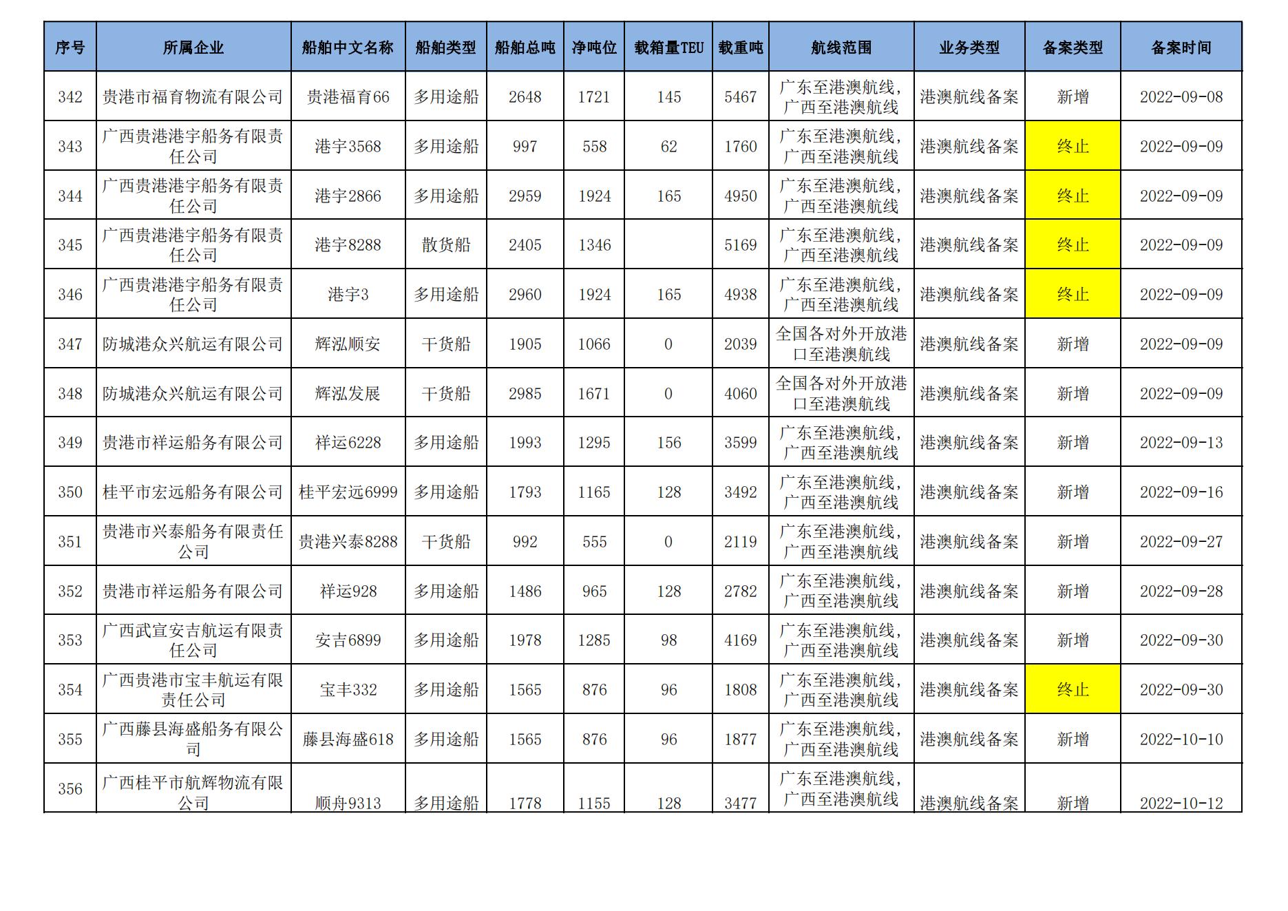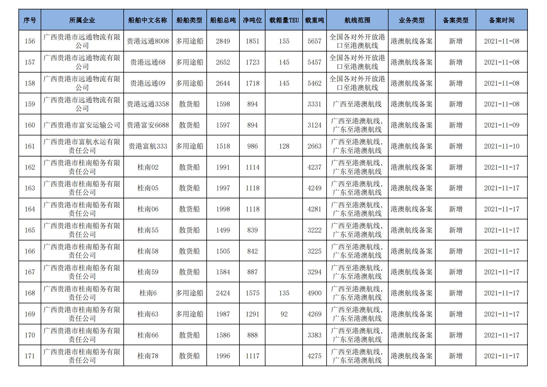截至2023年12月11日在交通运输部水路运输建设综合管理信息系统完成备案的港澳航线水路运输船舶