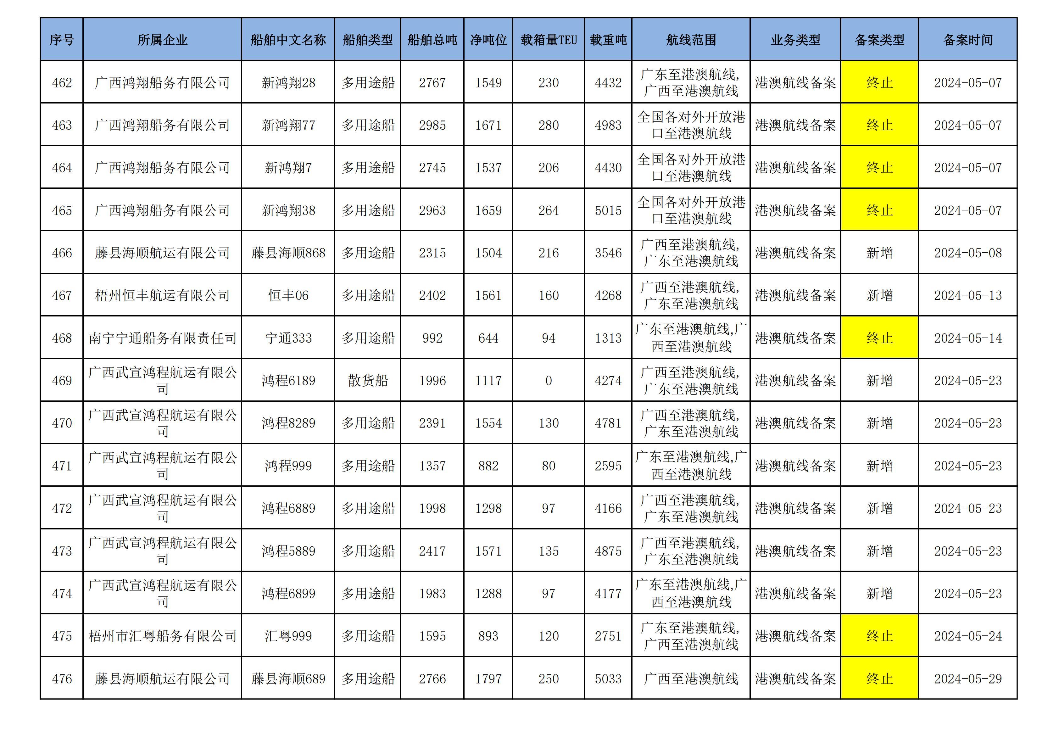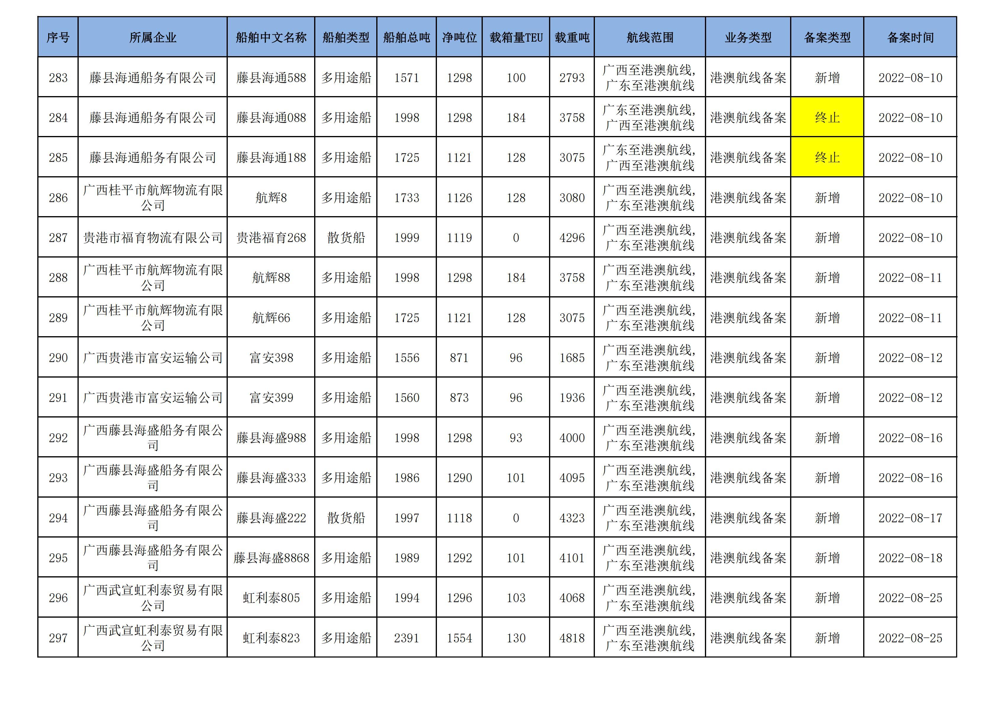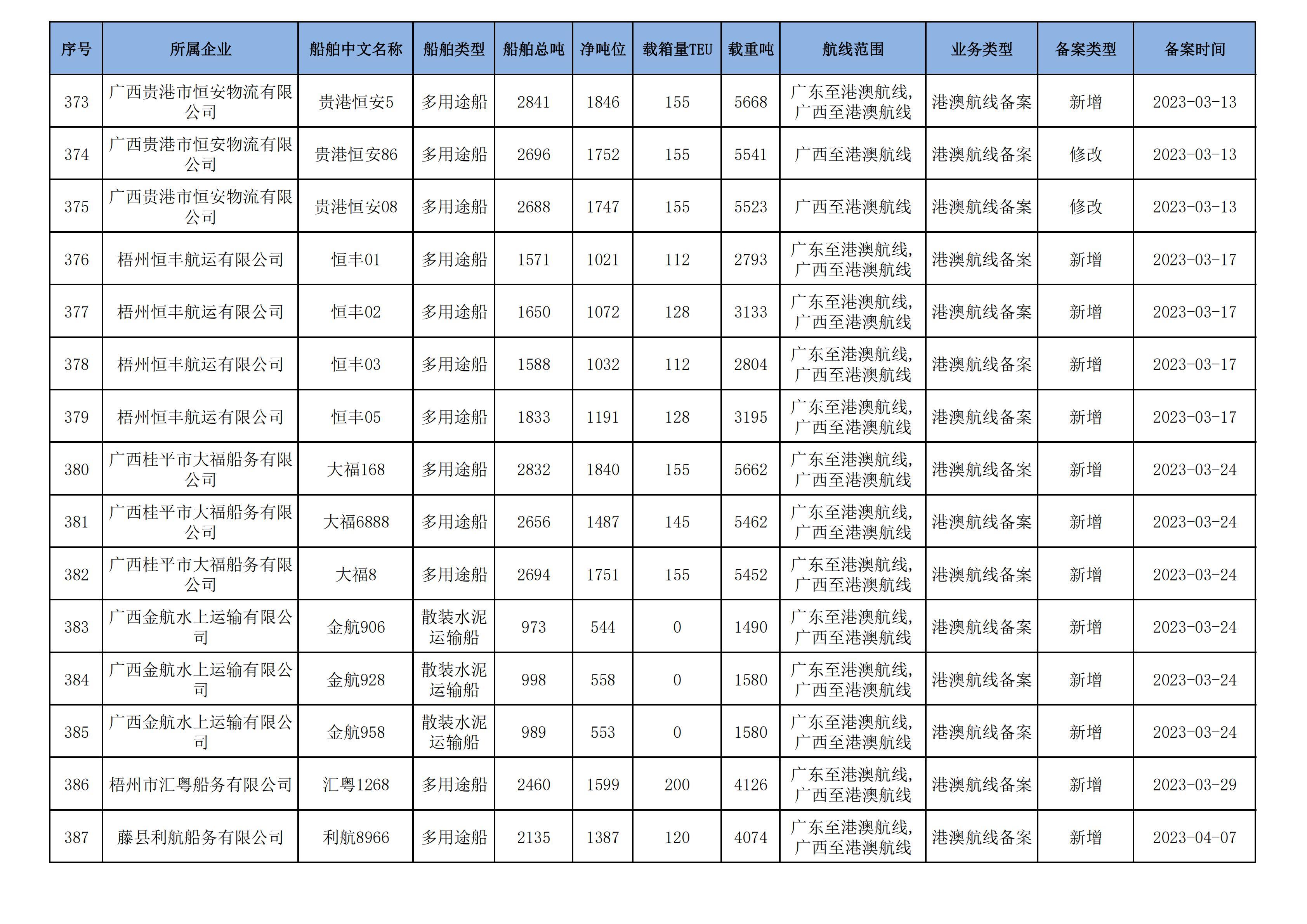 截至2025年3月13日在交通运输部水路运输建设综合管理信息系统完成备案的港澳航线水路运输船舶