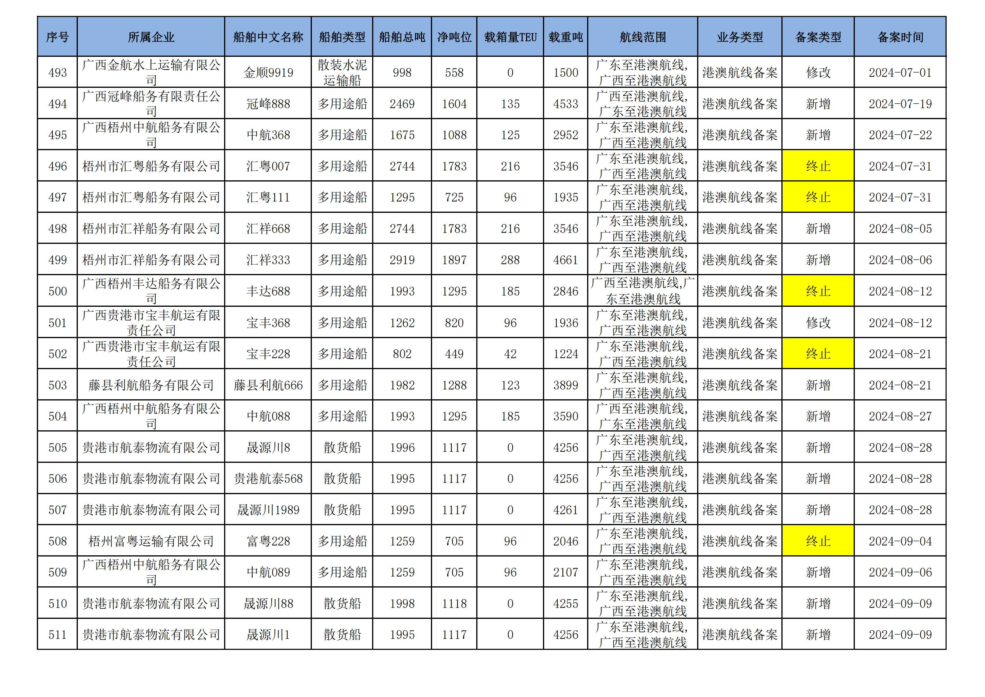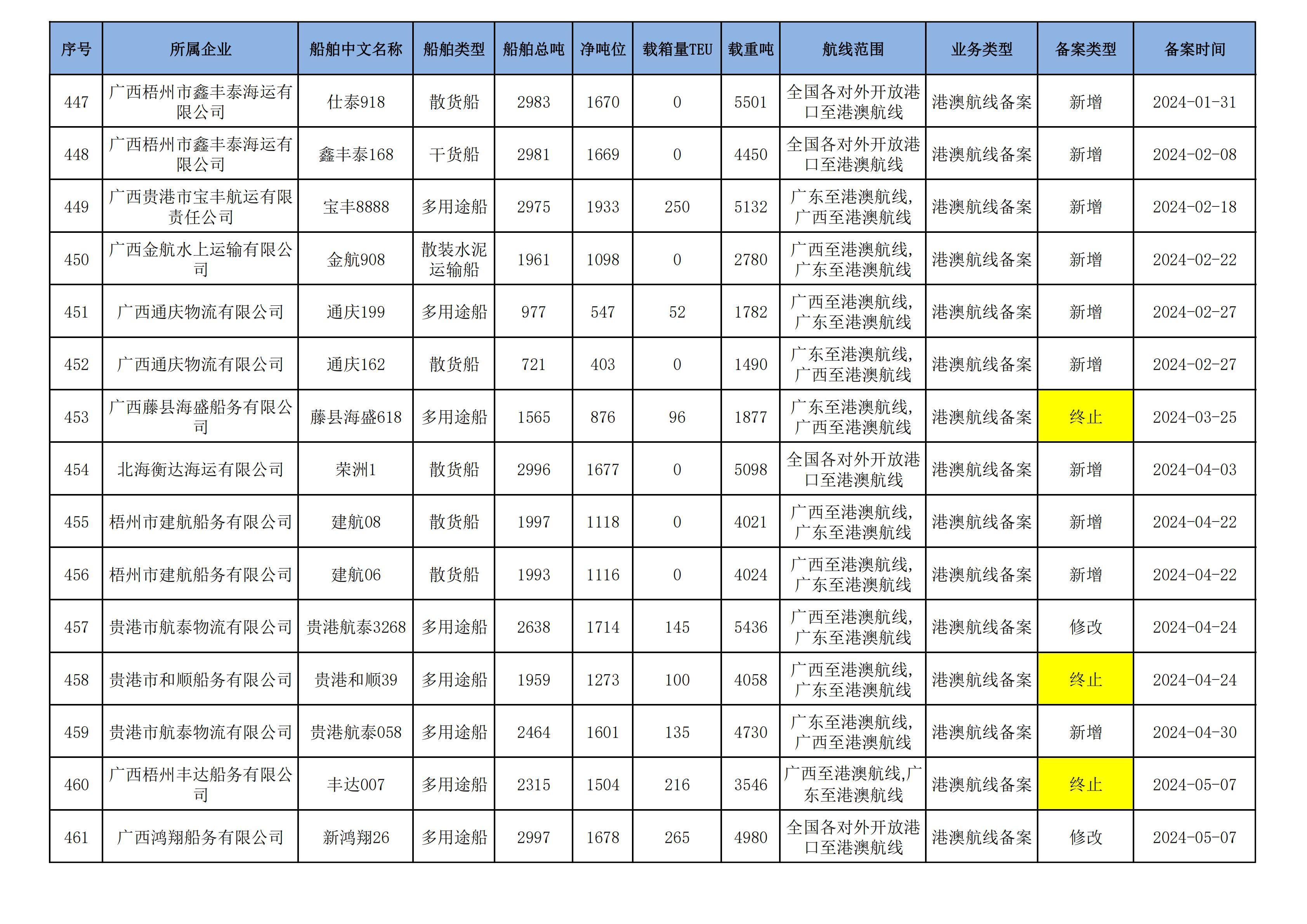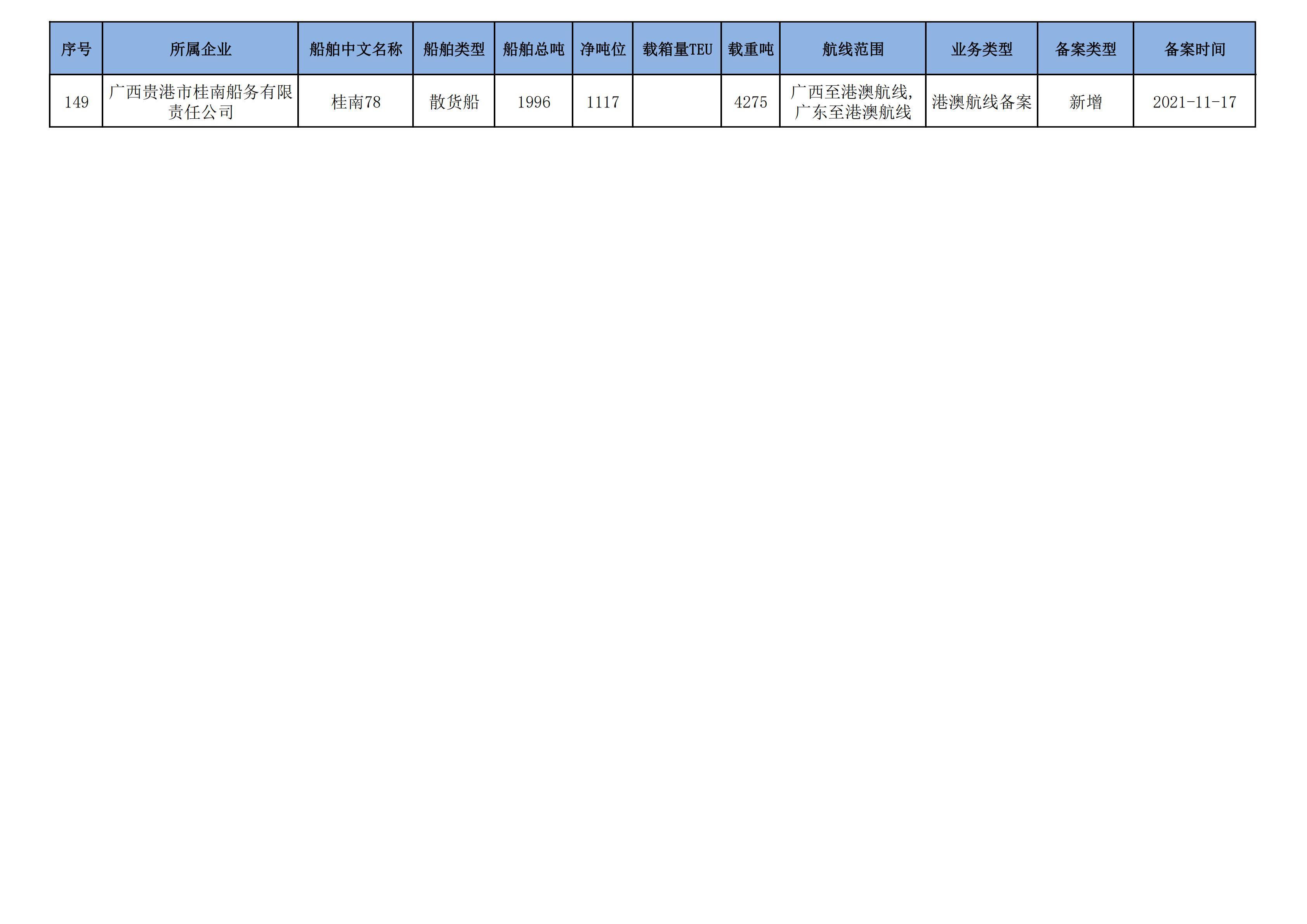 截至2025年3月13日在交通运输部水路运输建设综合管理信息系统完成备案的港澳航线水路运输船舶