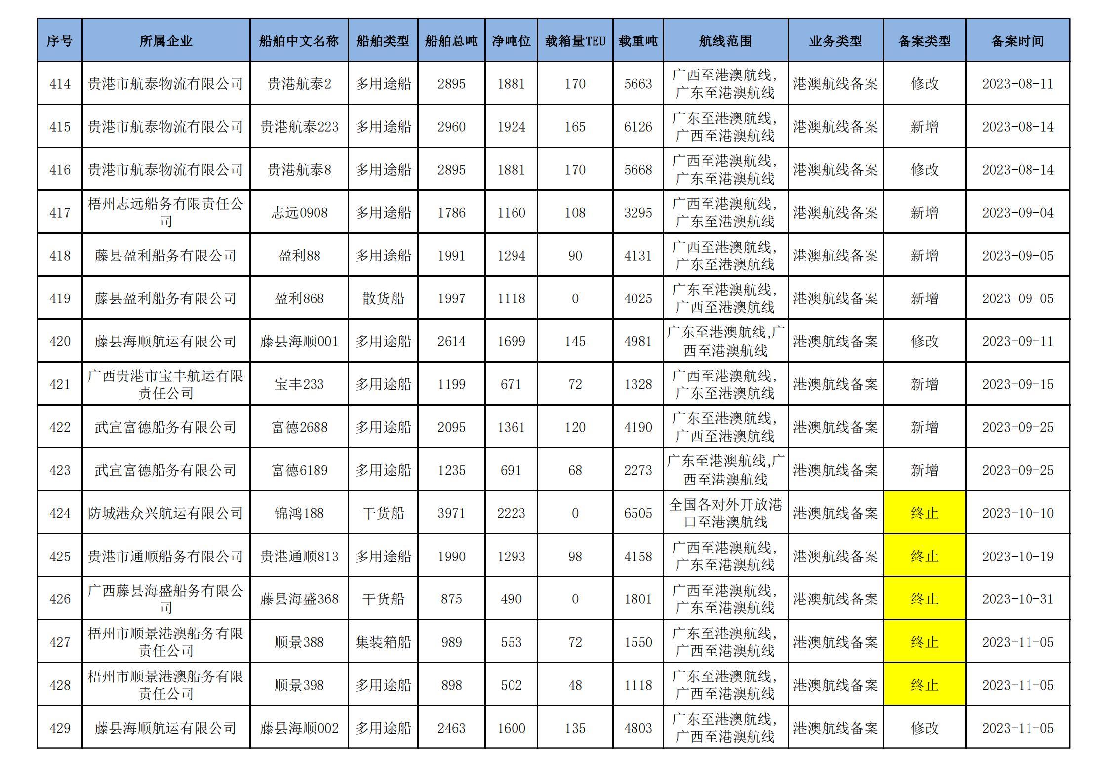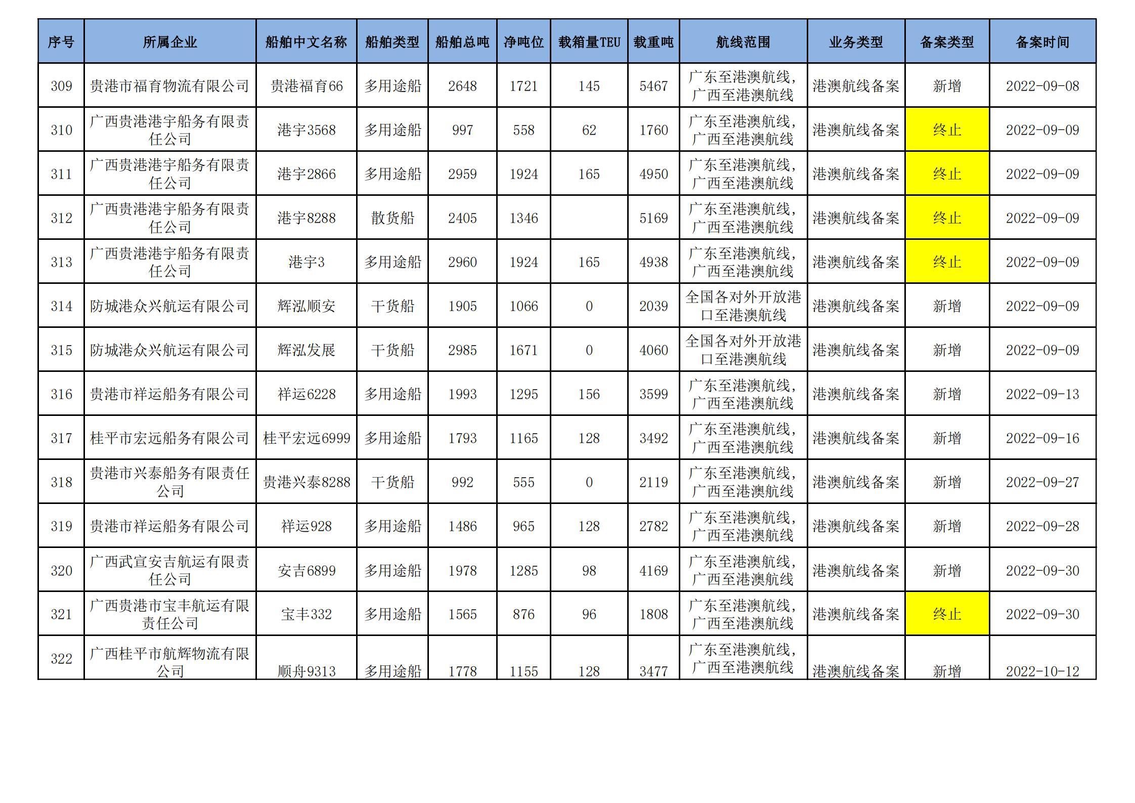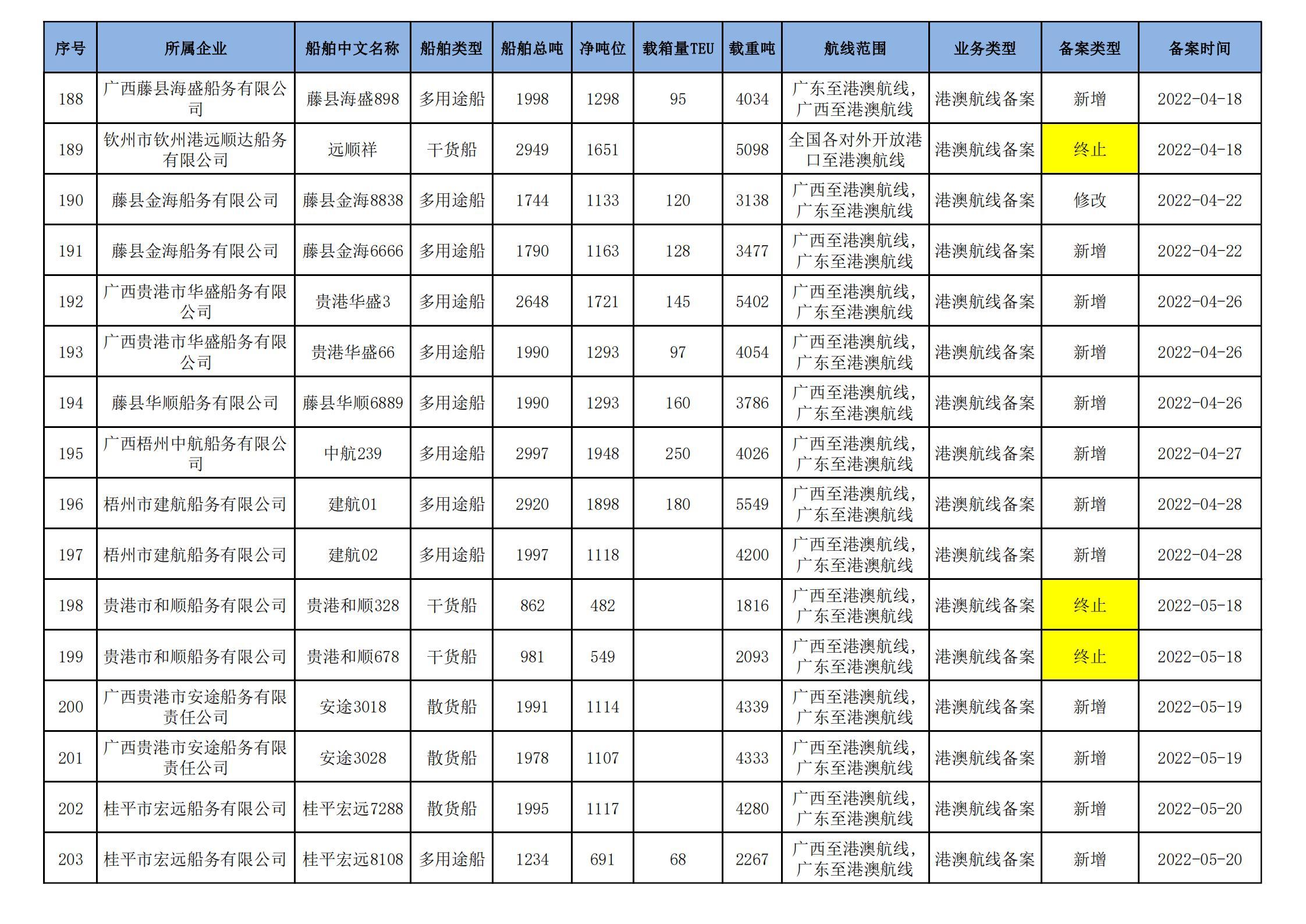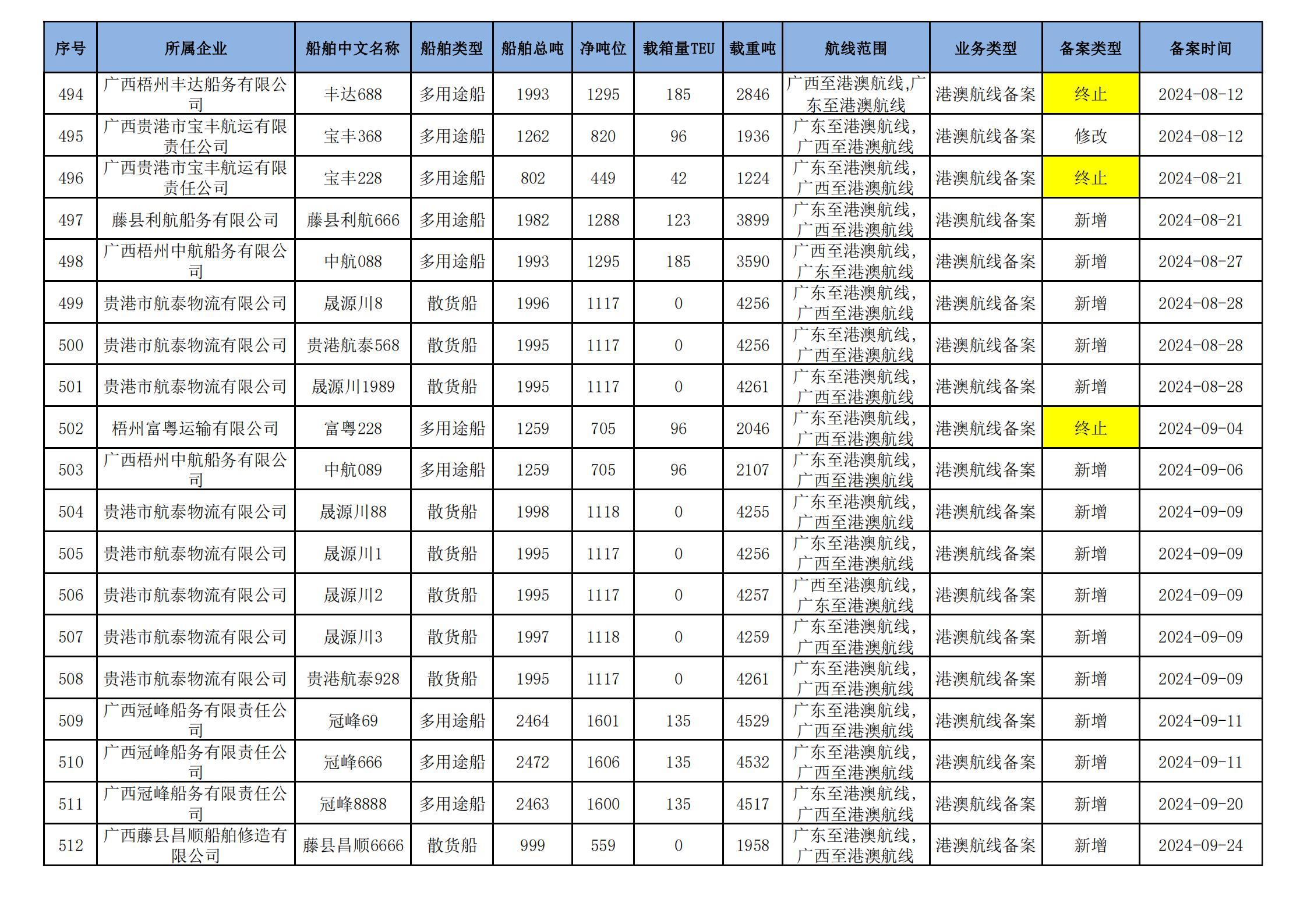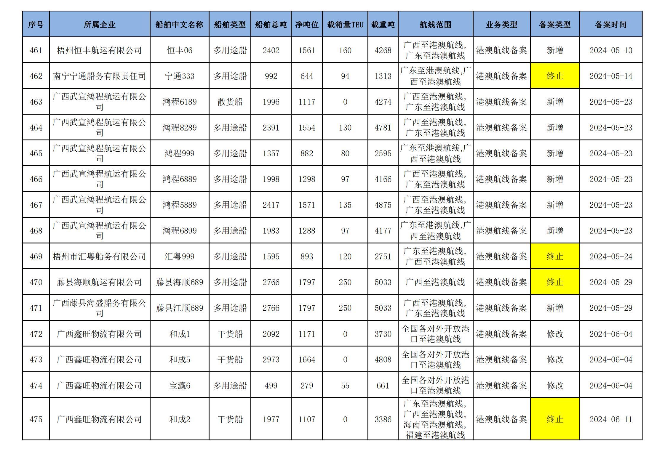 截至2025年4月15日在交通运输部水路运输建设综合管理信息系统完成备案的港澳航线水路运输船舶