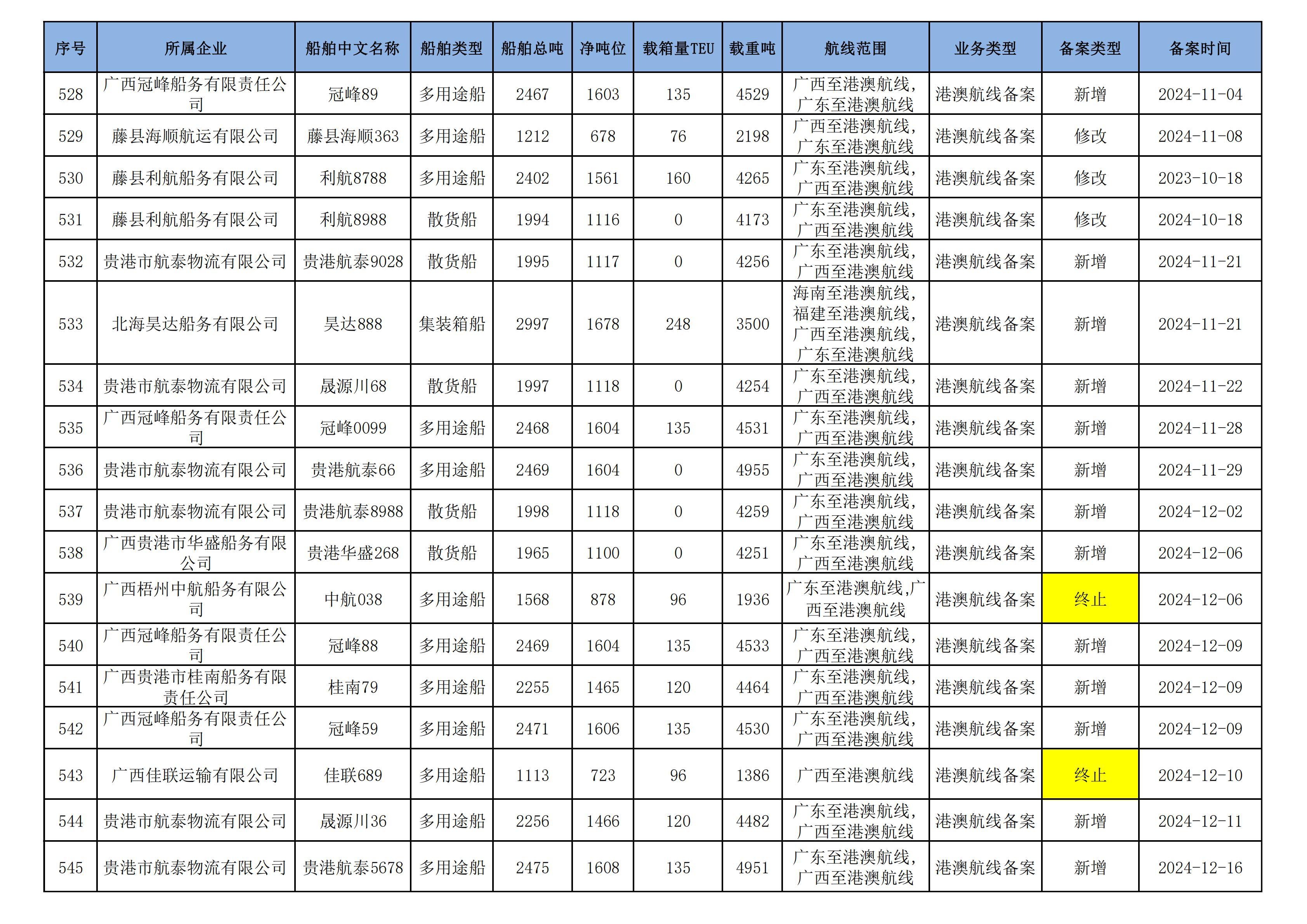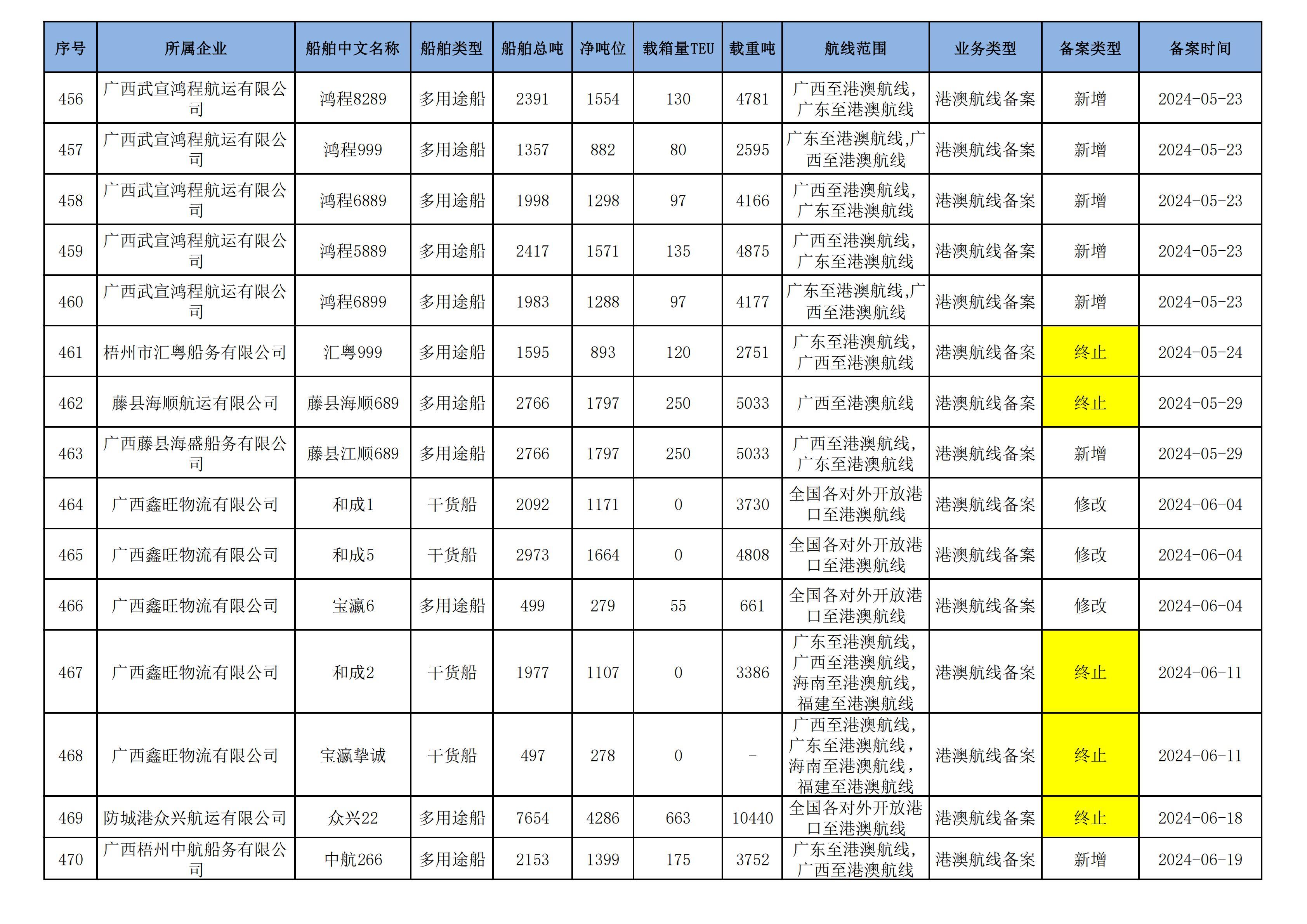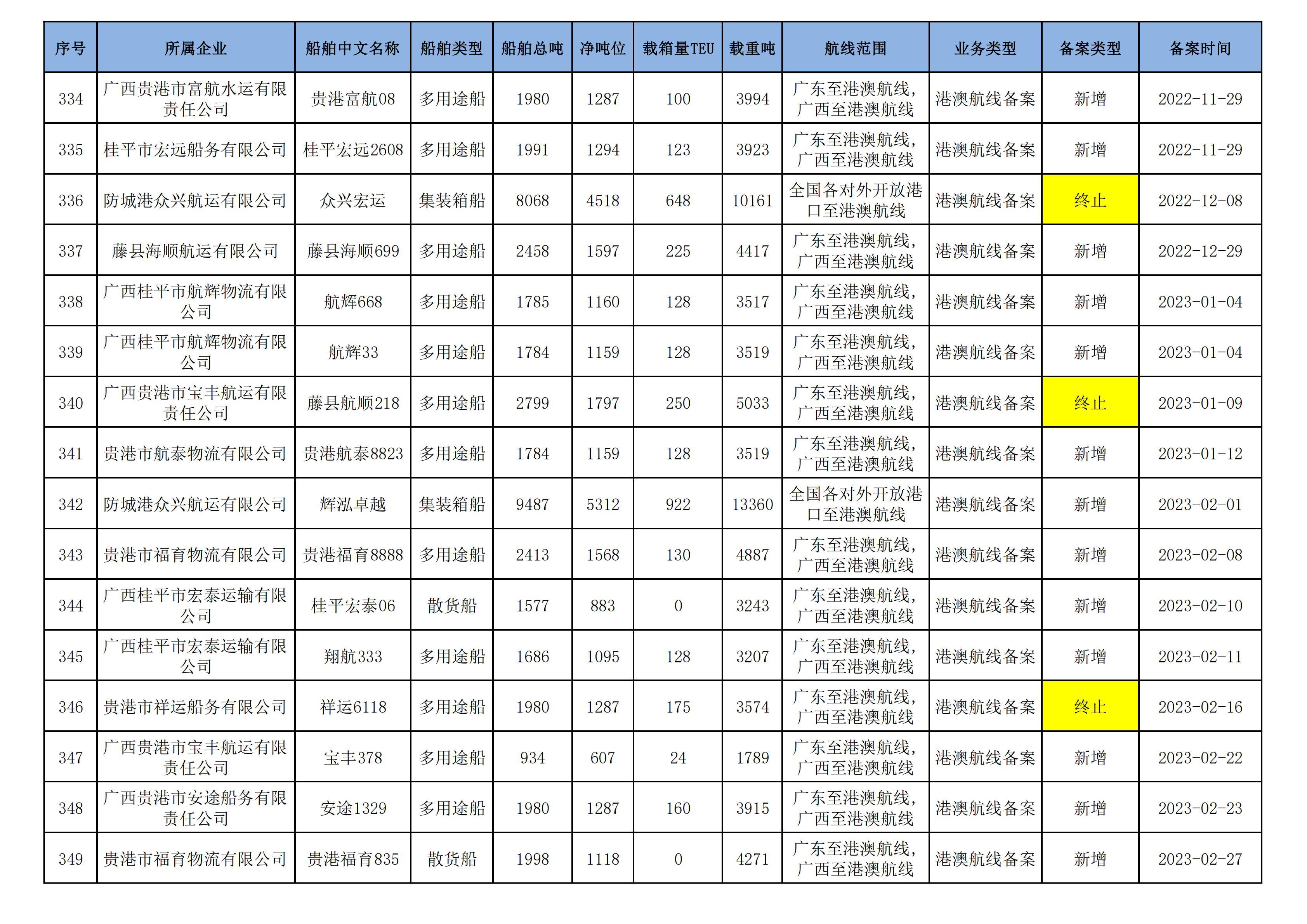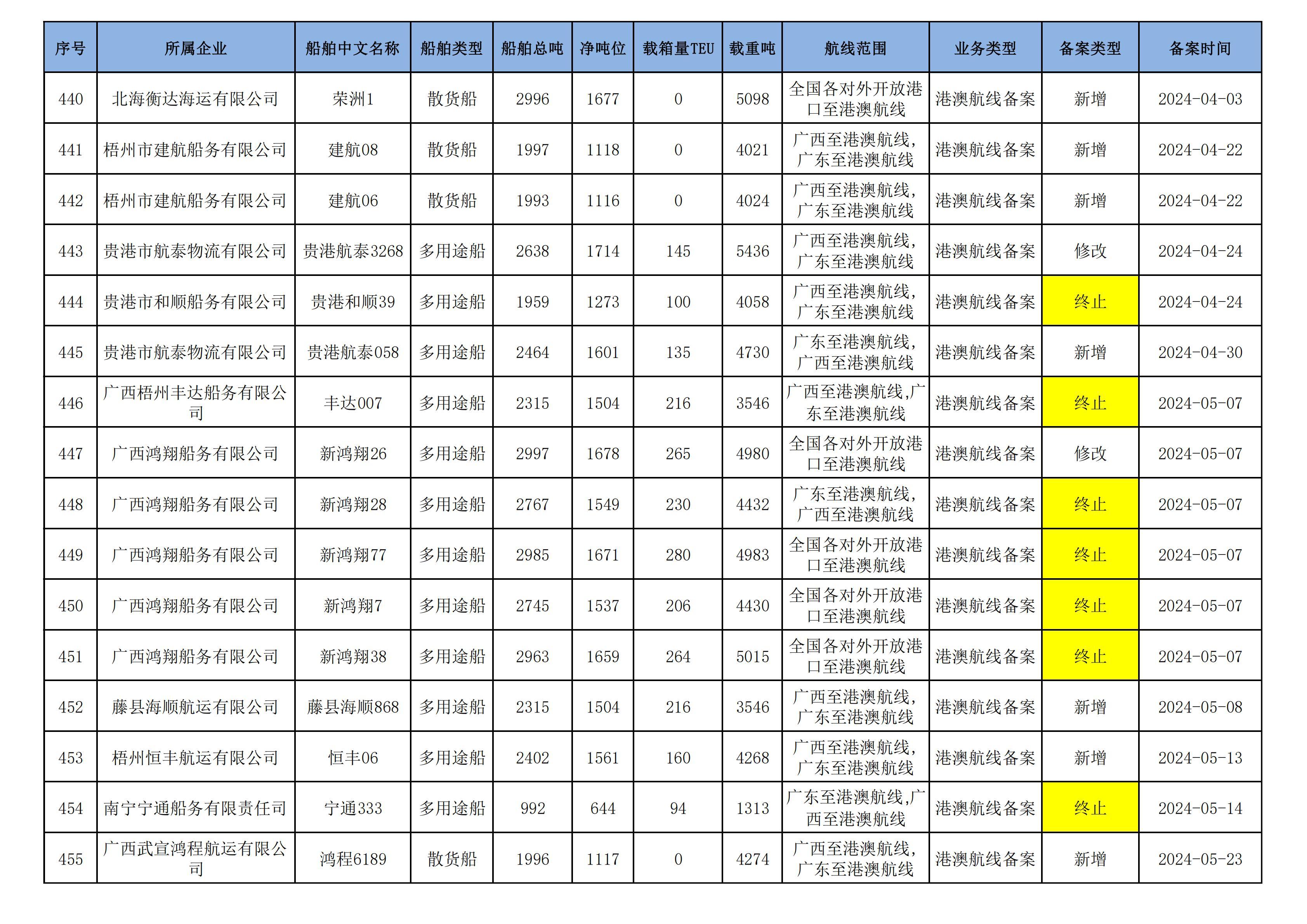 截至2025年5月12日在交通运输部水路运输建设综合管理信息系统完成备案的港澳航线水路运输船舶