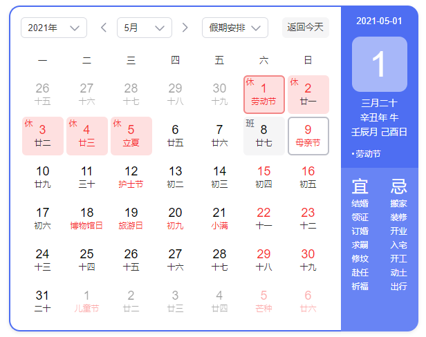 根据国务院的安排,今年“五一”节假日时间为5月1日(星期六)至5月5日(星期三)放假调休,共5天。4月25日(星期日)、5月8日(星期六)上班。根据国家颁发的《重大节假日免收小型客车通行费实施方案》免费通行的时间范围为春节、清明节、五一劳动节、国庆节等四个国家法定节假日,因此2021年“五一”节假日期间七座以下小客车免费通行高速公路。路网流量主要以短途出游为主,全区各高速公路收费站出入口易发生缓行和排队现象,路网压力增大。在此提醒车友们:事先通过电子地图关注行经路线的交通状况,科学合理安排出行计划,错开拥堵高峰出行。