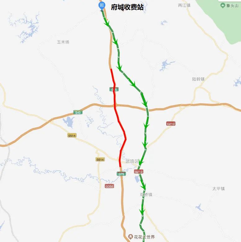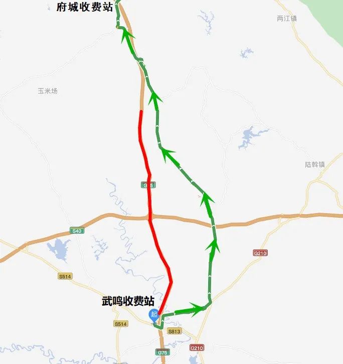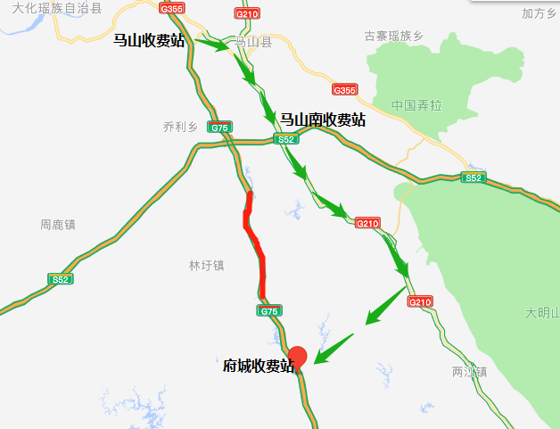 出城方向:绕行至临近的石埠、玉洞、那马收费站出城。