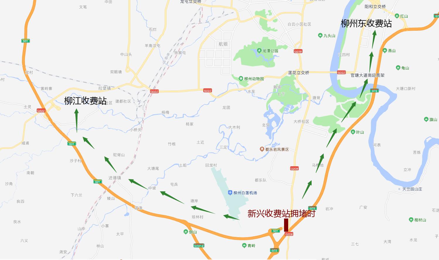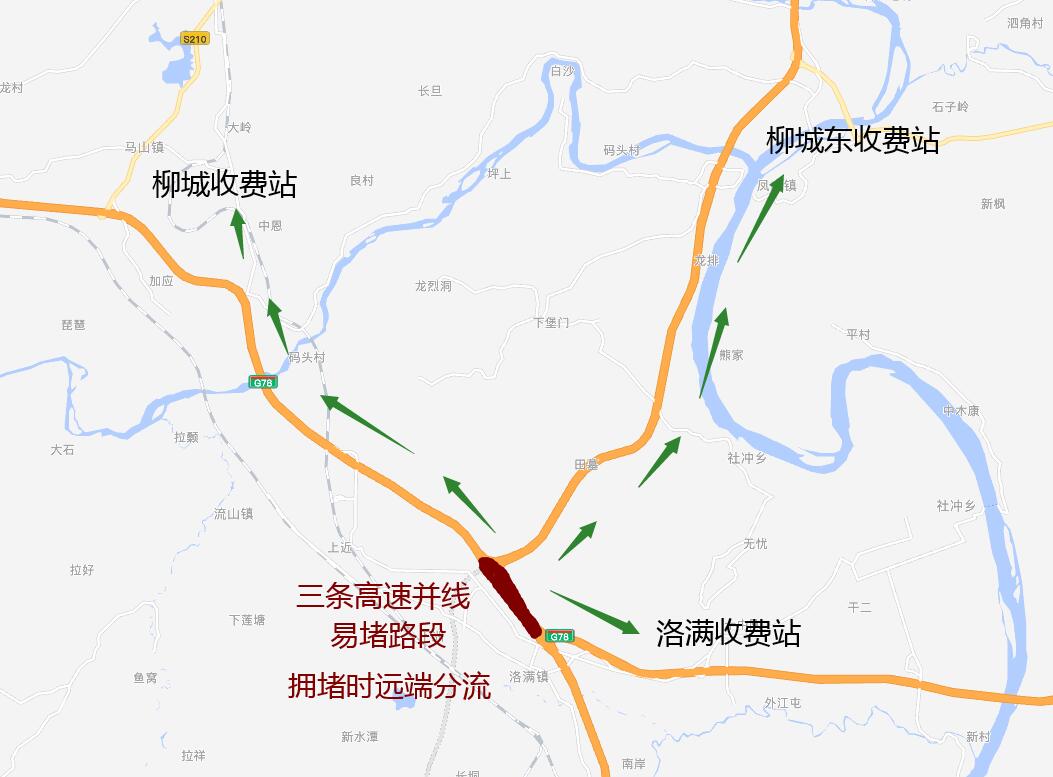4.远端分流G78汕昆高速柳城收费站绕行;