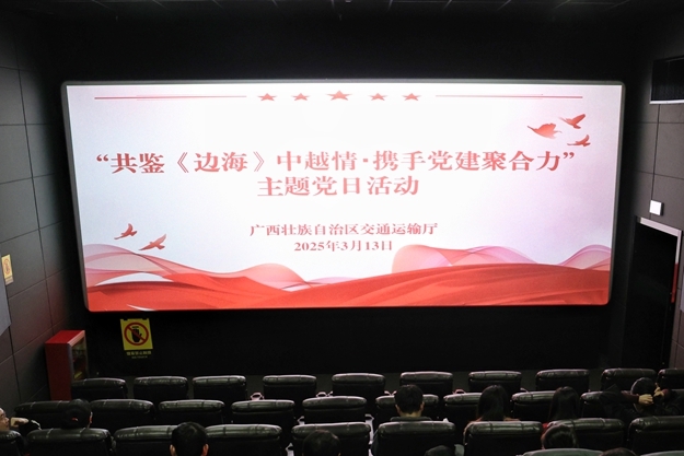 南宁讯(黄静兰 通讯员 黄梦影 摄影报道)为弘扬中越传统友谊,深化民族团结进步,3月13日,樱桃直播 在南宁开展“共鉴《边海》中越情·携手党建聚合力”主题党日活动,组织党员、干部集中观看电影《边海》。