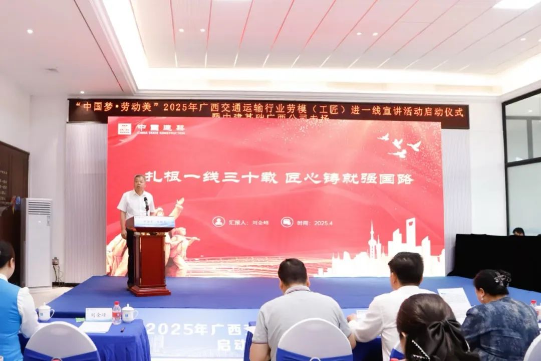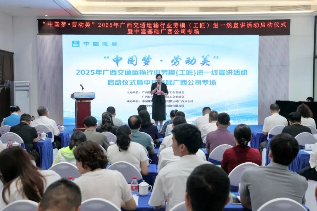 在中国建设基础设施有限公司广西分公司举办的首场宣讲活动现场,首批广西交通运输行业“中青年科技创新领军人才”刘宇、“广西五一劳动奖章”获得者冀温源、坚守祖国南疆“国门第一站”的中国最美路姐刘梦瑶以及多次揽获全国鲁班奖、李春奖的项目经理刘金峰等四位劳模(工匠)代表,通过讲述自己在科技创新领域追求卓越的奋斗历程,在水利水务建设领域建设攻坚、奋力锻造精品工程的故事,以及扎根边疆、服务基层的心得体会,生动诠释了爱岗敬业、争创一流、艰苦奋斗、勇于创新、甘于奉献的劳模精神。