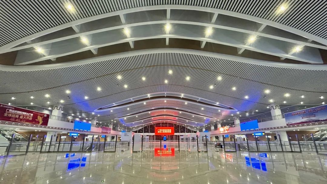 南珠高铁南玉段玉林北站站内装饰设计融合了满满的“玉林元素”,祥云平安鼓铜雕、不同字体的“玉”字、玉林市花“三角梅”落地灯等等,均彰显了玉林的文化底蕴,宏伟又大气。但玉林北站可不止有好看的“外表”,更是“拿捏”了环保绿色科技。