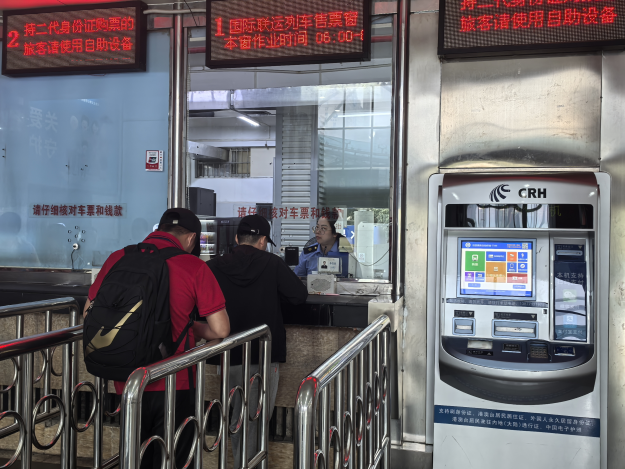 旅客在南宁站国际联运列车售票窗购票。(麦竹娴 摄)