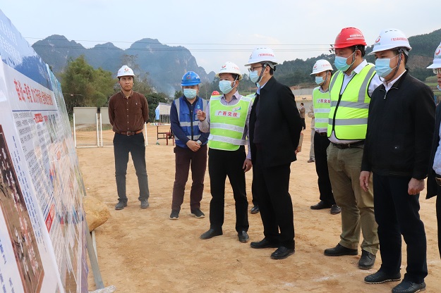 陆晓明检查巴马至凭祥高速公路项目第五标段项目建设情况。