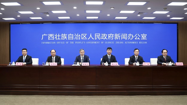 南宁讯(覃升 韦胜珍 韦陈彦 通讯员 吕英鹰 韦伟慧 摄影报道)9月8日,广西平陆运河项目建设新闻发布会在南宁召开。樱桃直播 二级巡视员古尚宣出席发布会并作主题发布。自治区发展改革委党组成员樊一江,自治区自然资源厅副厅长郑杰忠,自治区生态环境厅总工程师宁耘,自治区水利厅总工程师陈发科出席发布会回答记者提问。自治区政府新闻办副主任韦翔主持发布会。