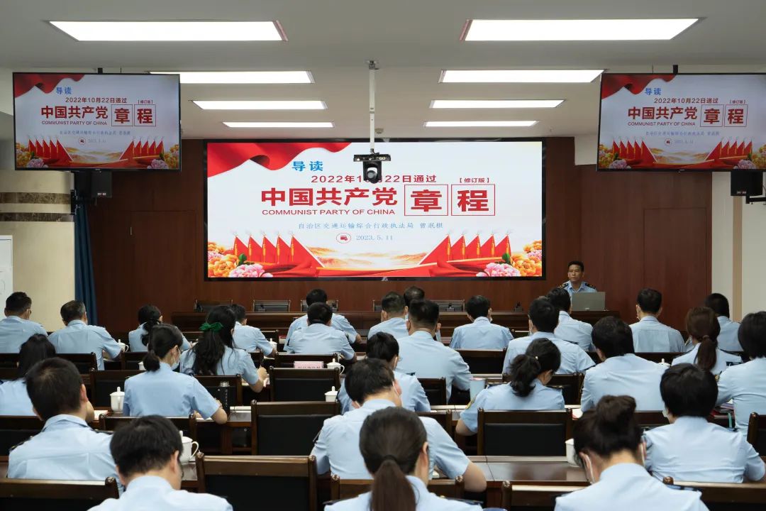 5月11日,该局党员、干部在专题党课上学习了《中国共产党章程》《论党的自我革命》“中央八项规定是一个切入口和动员令,是长期有效的铁规矩硬杠杠”等内容。5月12日,该局党委召开理论学习中心组2023年第二次集中学习扩大会,学习《习近平新时代中国特色社会主义思想学习纲要(2023年版)》 “以新发展理念引领高质量发展”等内容,强调党员领导干部要完整、准确、全面贯彻新发展理念,立足工作实际不断推动交通运输综合行政执法事业高质量发展。