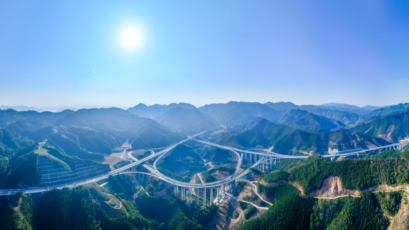 南丹至天峨高速公路天峨枢纽互通 。(谢俊 摄)