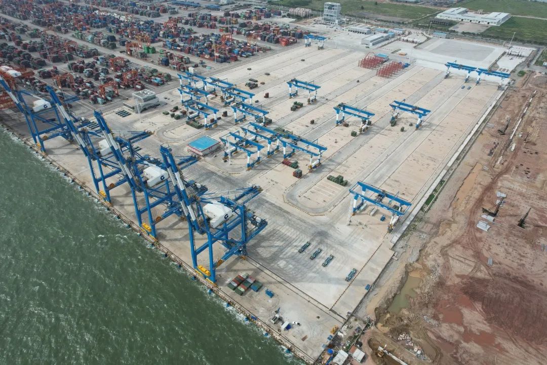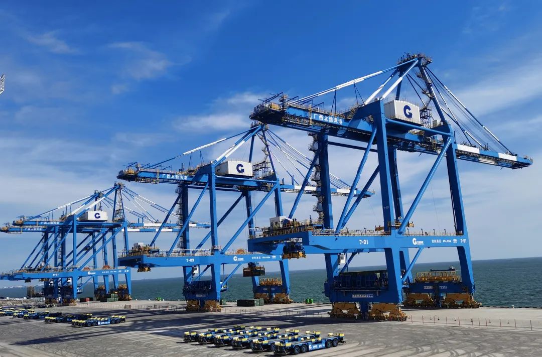 该工程建设内容为对已建2个7万吨级多用途泊位(7#、8#泊位码头水工结构按10万吨级集装箱泊位设计和建设)及相关配套设施改造成10万吨级自动化集装箱码头,年设计通过能力102万TEU。该项目自动化码头应用全球首创U型工艺布局,具备高效、经济、节能的典型特点,同时配备全球领先的自动化码头装备及控制系统,实现生产组织自动化运维。后方堆场毗邻铁路中转站,实现海铁联运无缝衔接,是全国首个海铁联运自动化集装箱码头。
