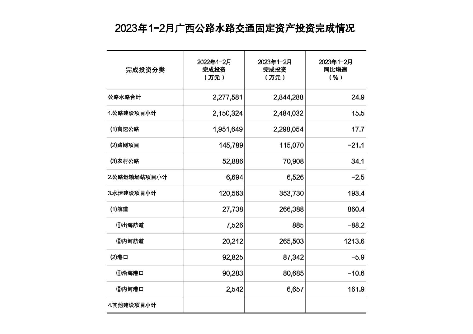 2023年1-2月广西公路水路交通固定资产投资完成情况