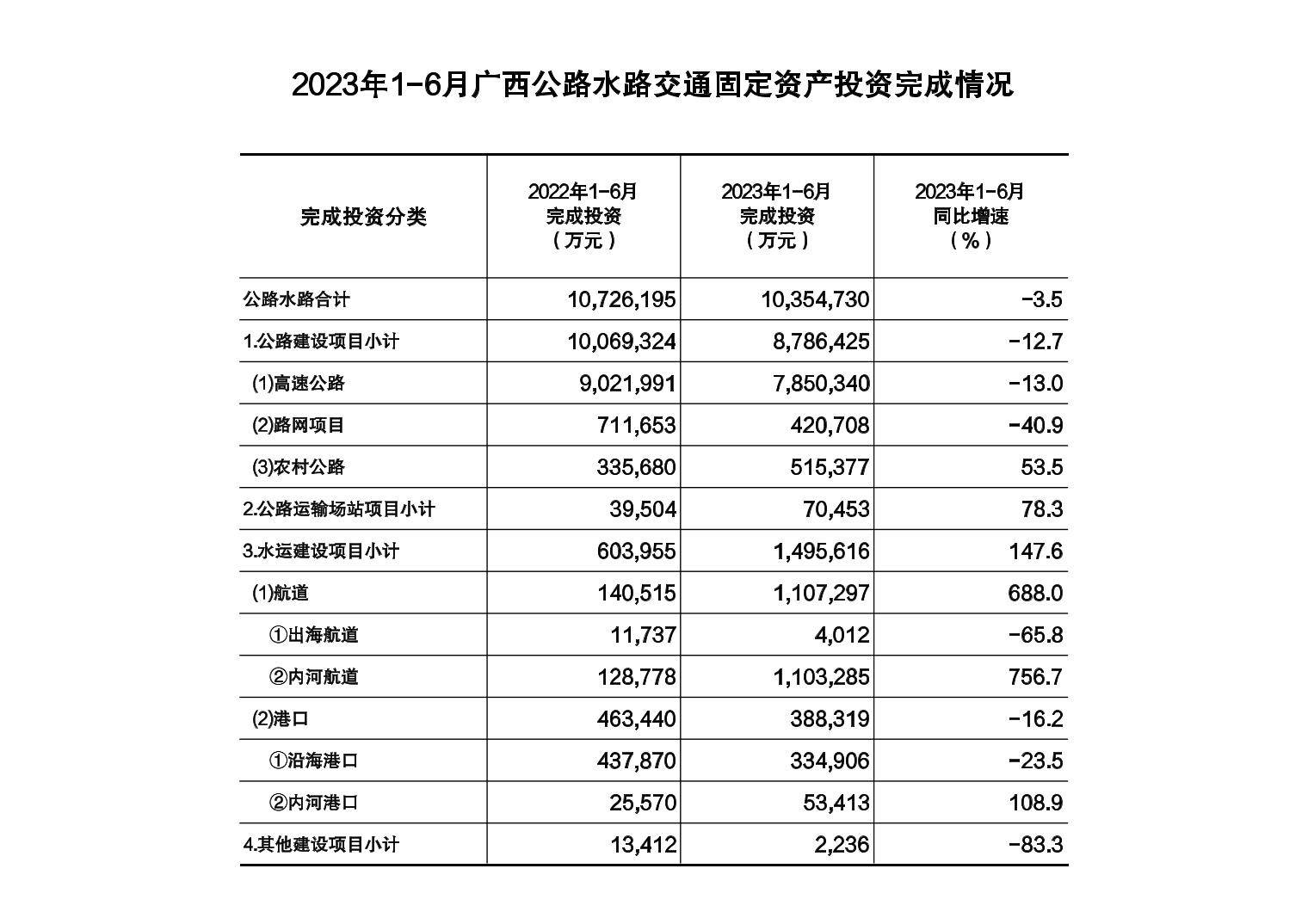 2023年1-6月广西公路水路交通固定资产投资完成情况