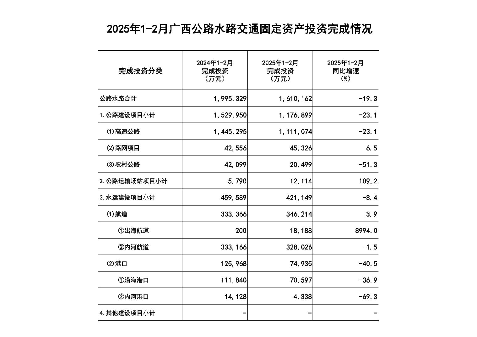 2025年1-2月广西公路水路交通固定资产投资完成情况