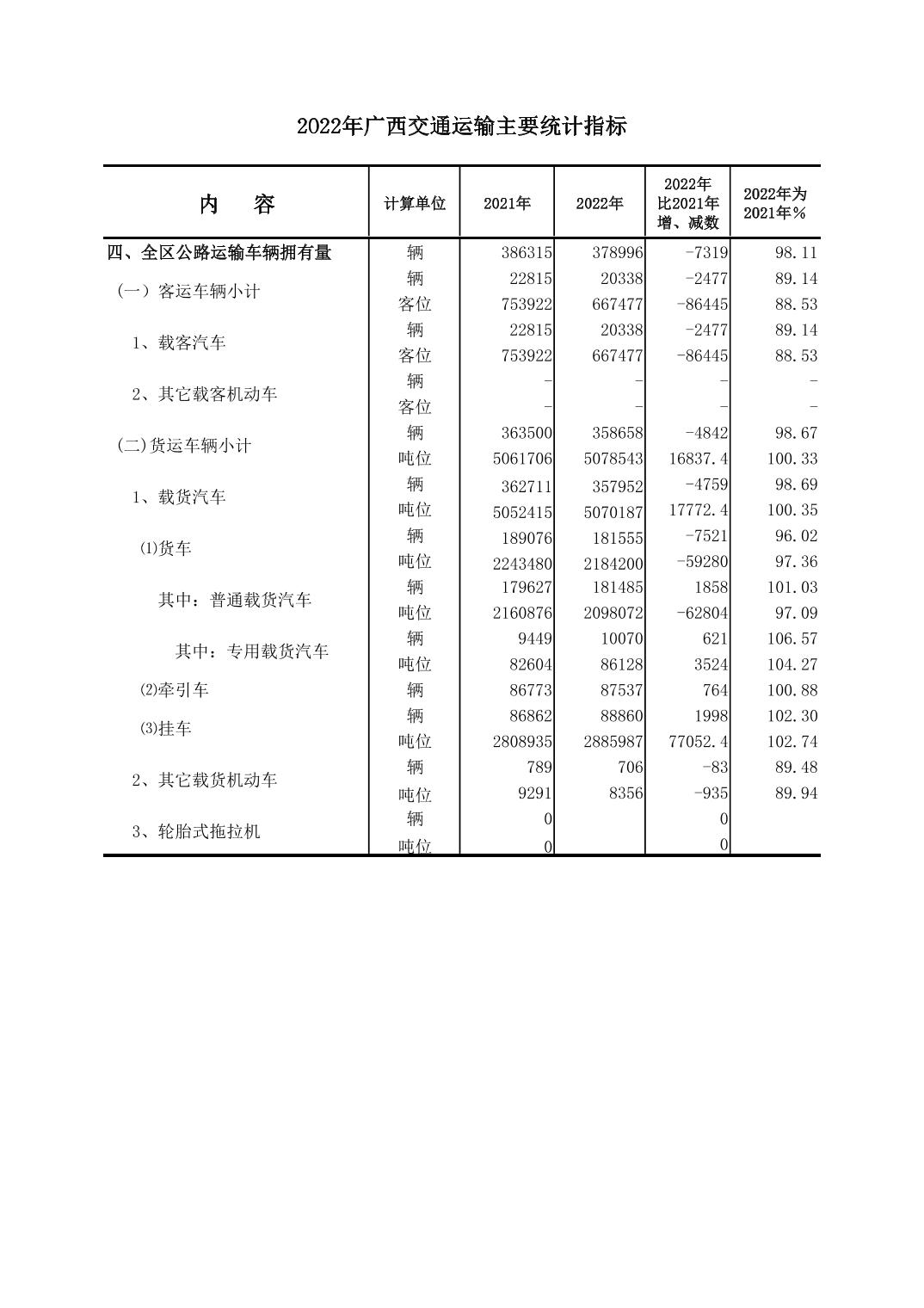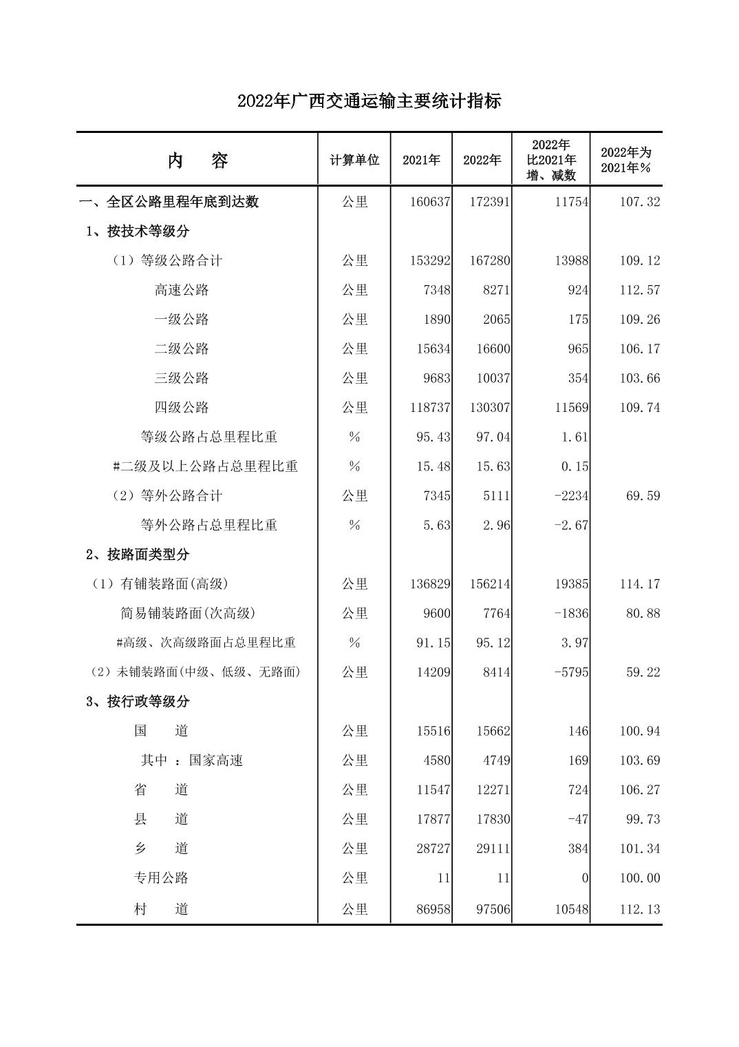 2022年广西交通运输主要统计指标
