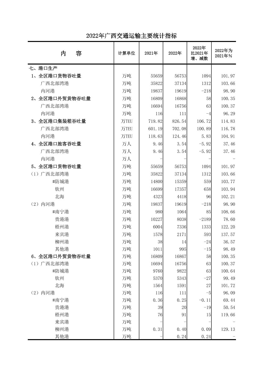 2022年广西交通运输主要统计指标 - 主要统计指标 - 樱桃直播