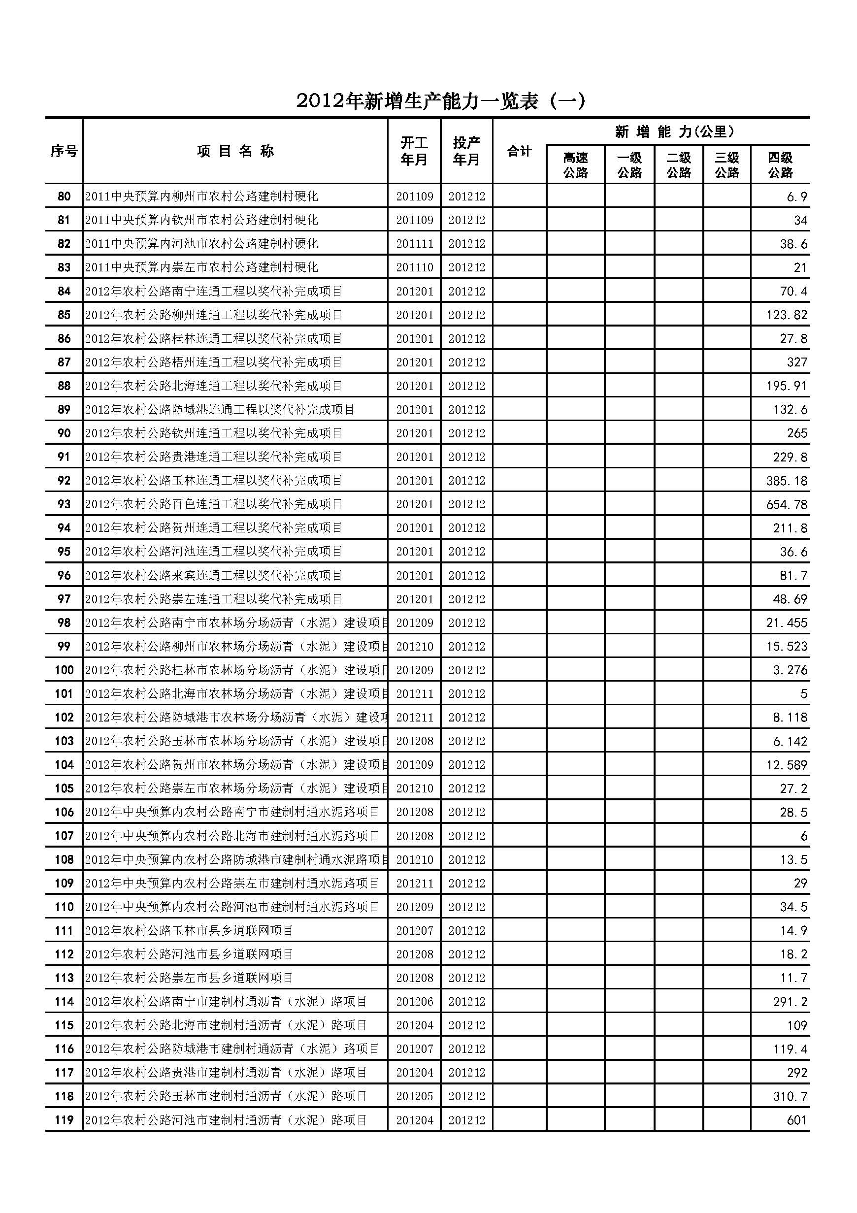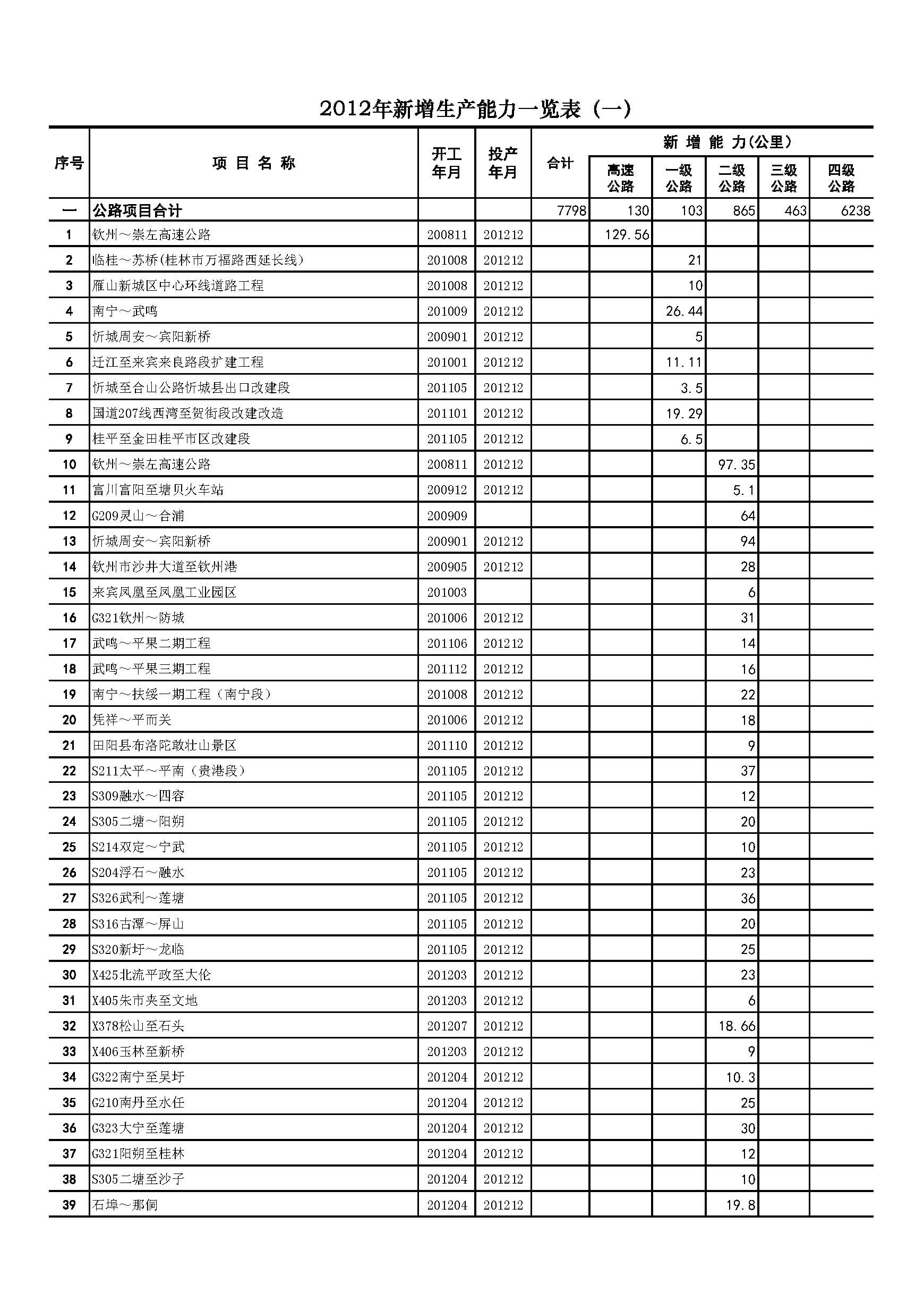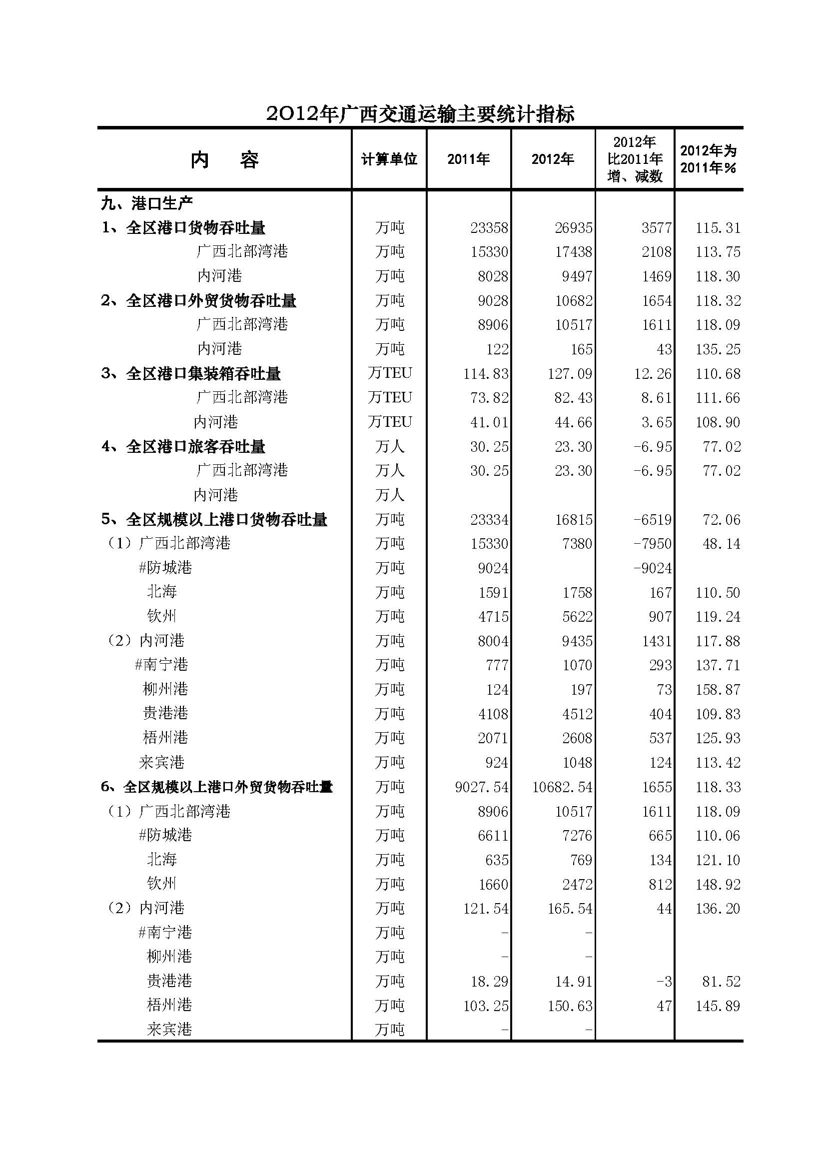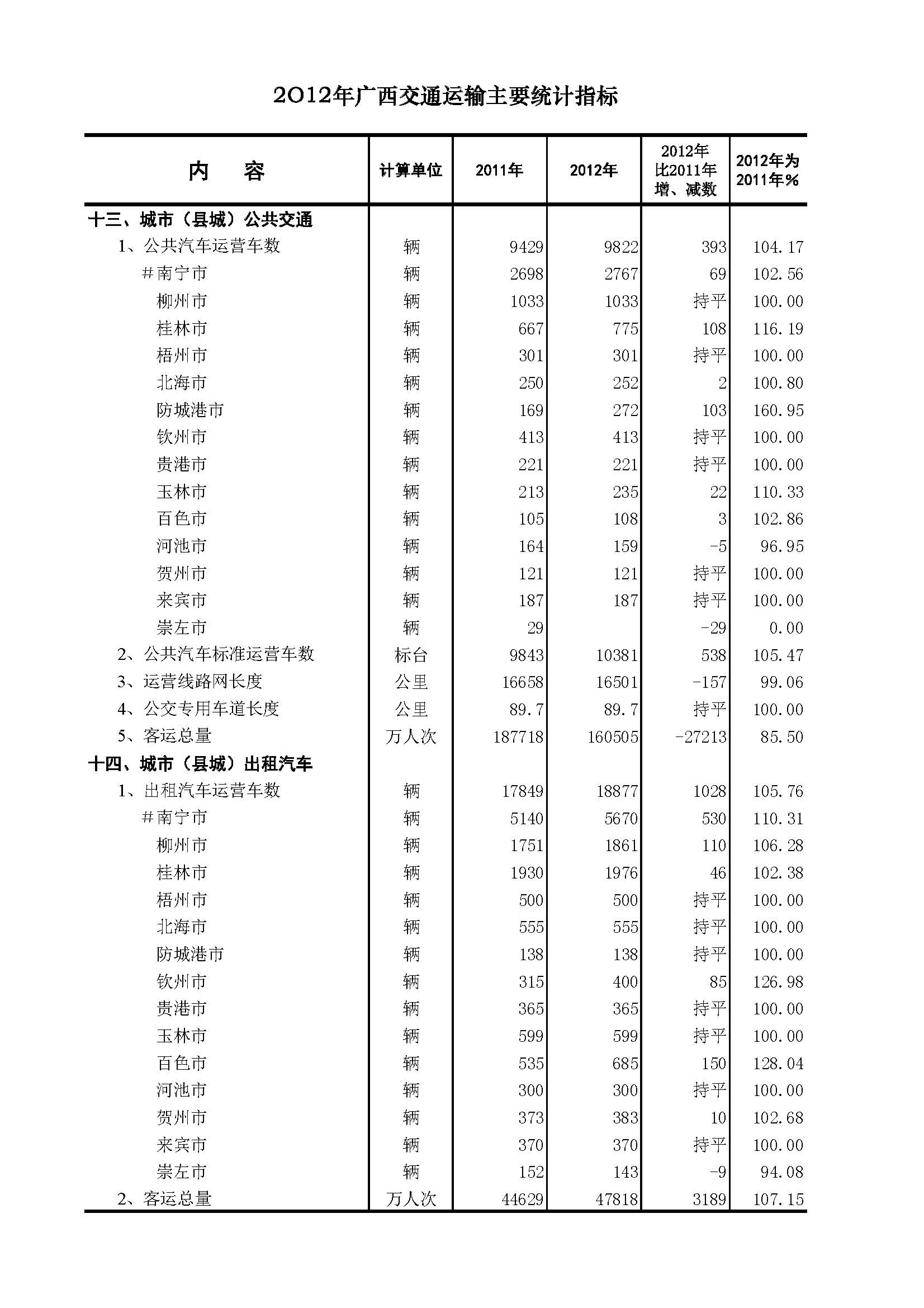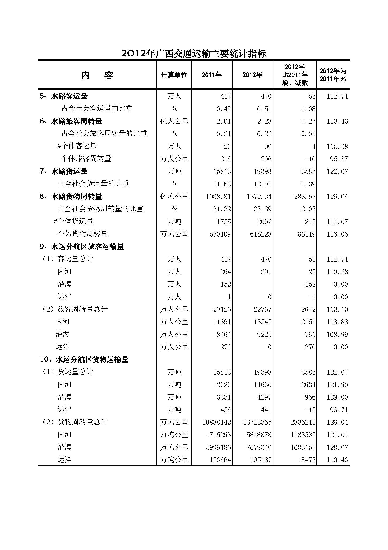 2012年广西交通主要统计指标