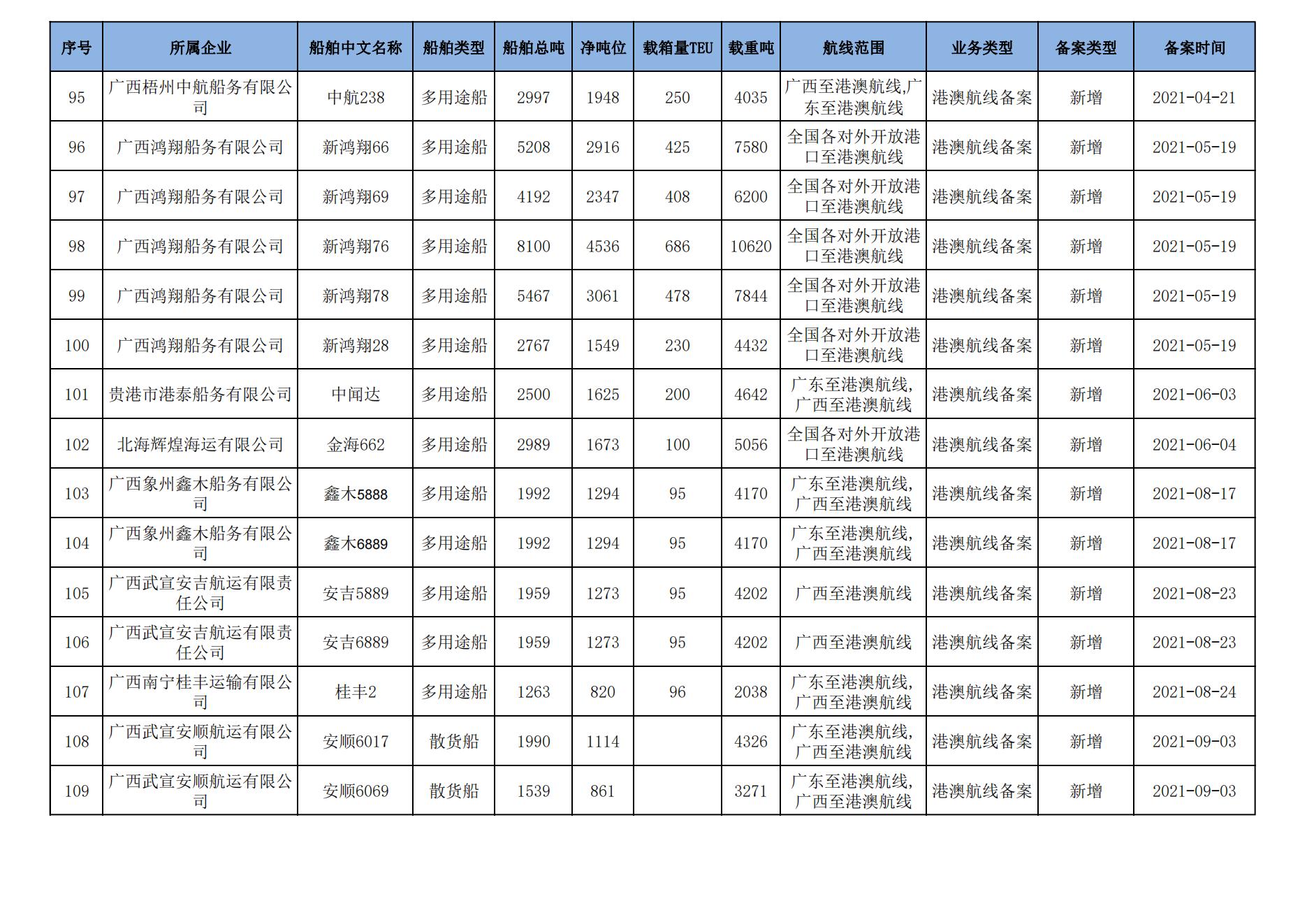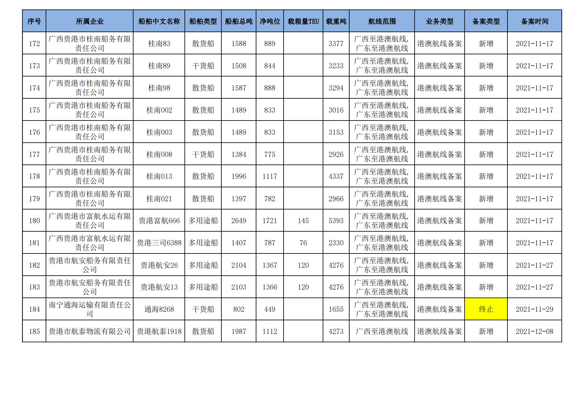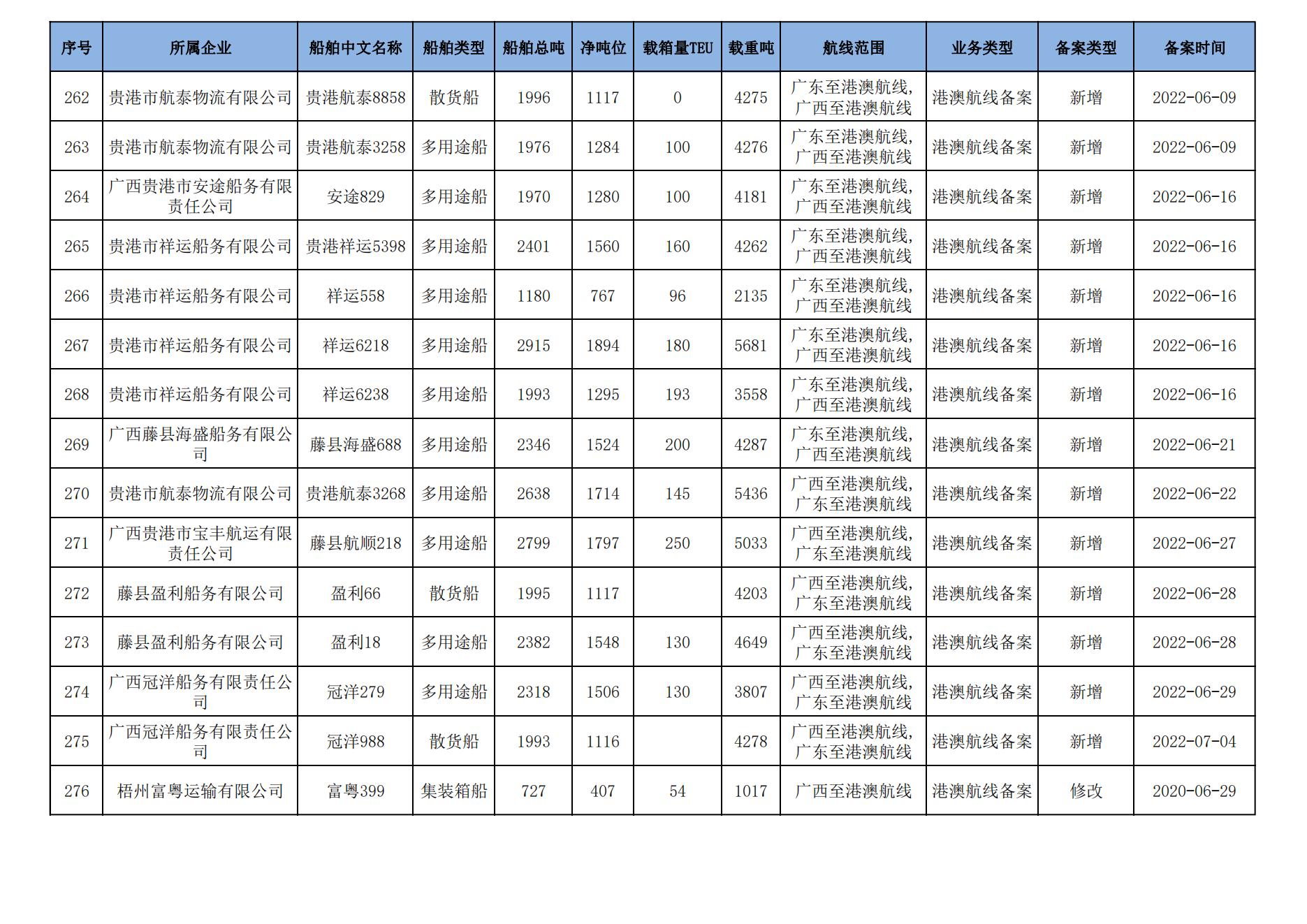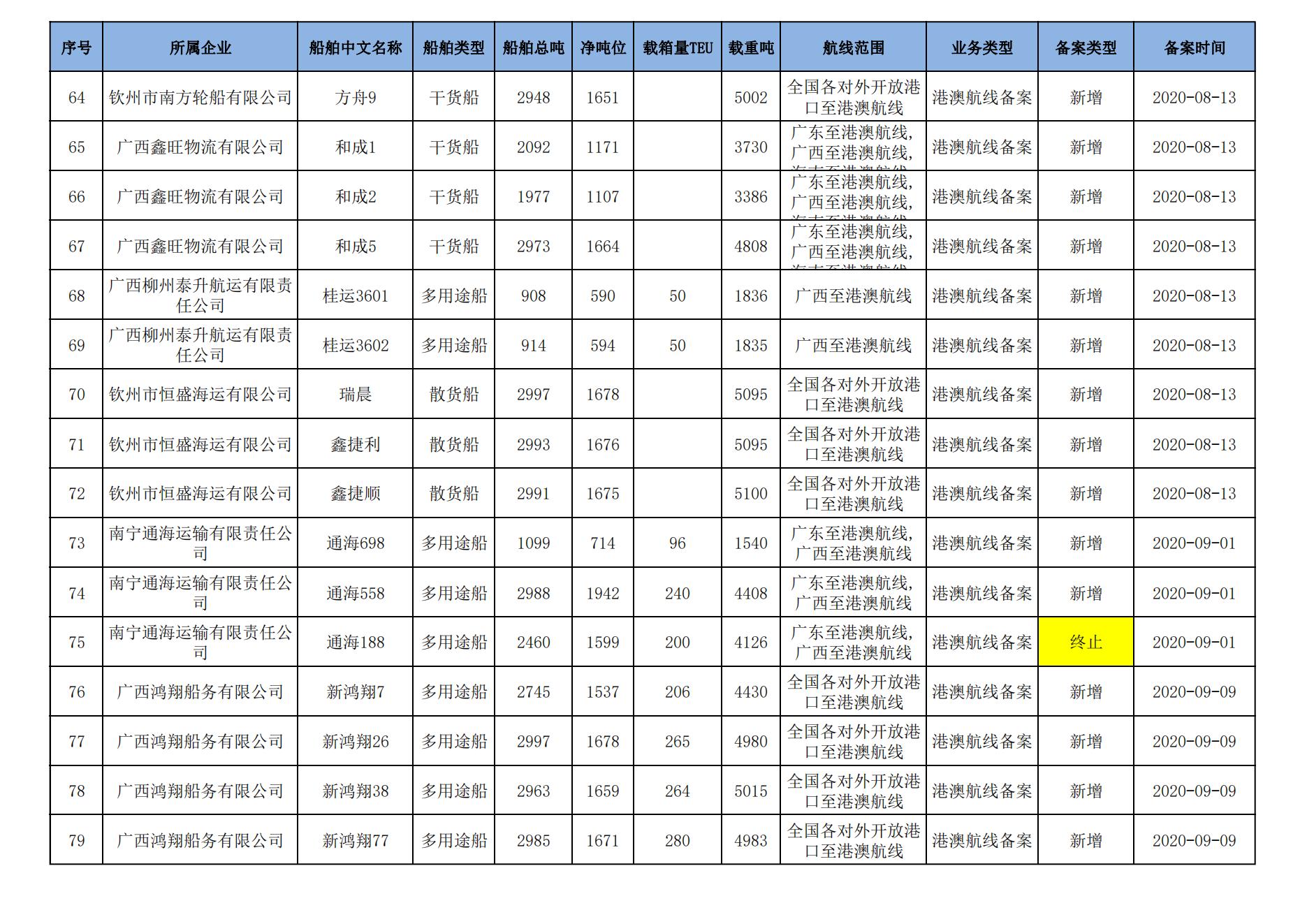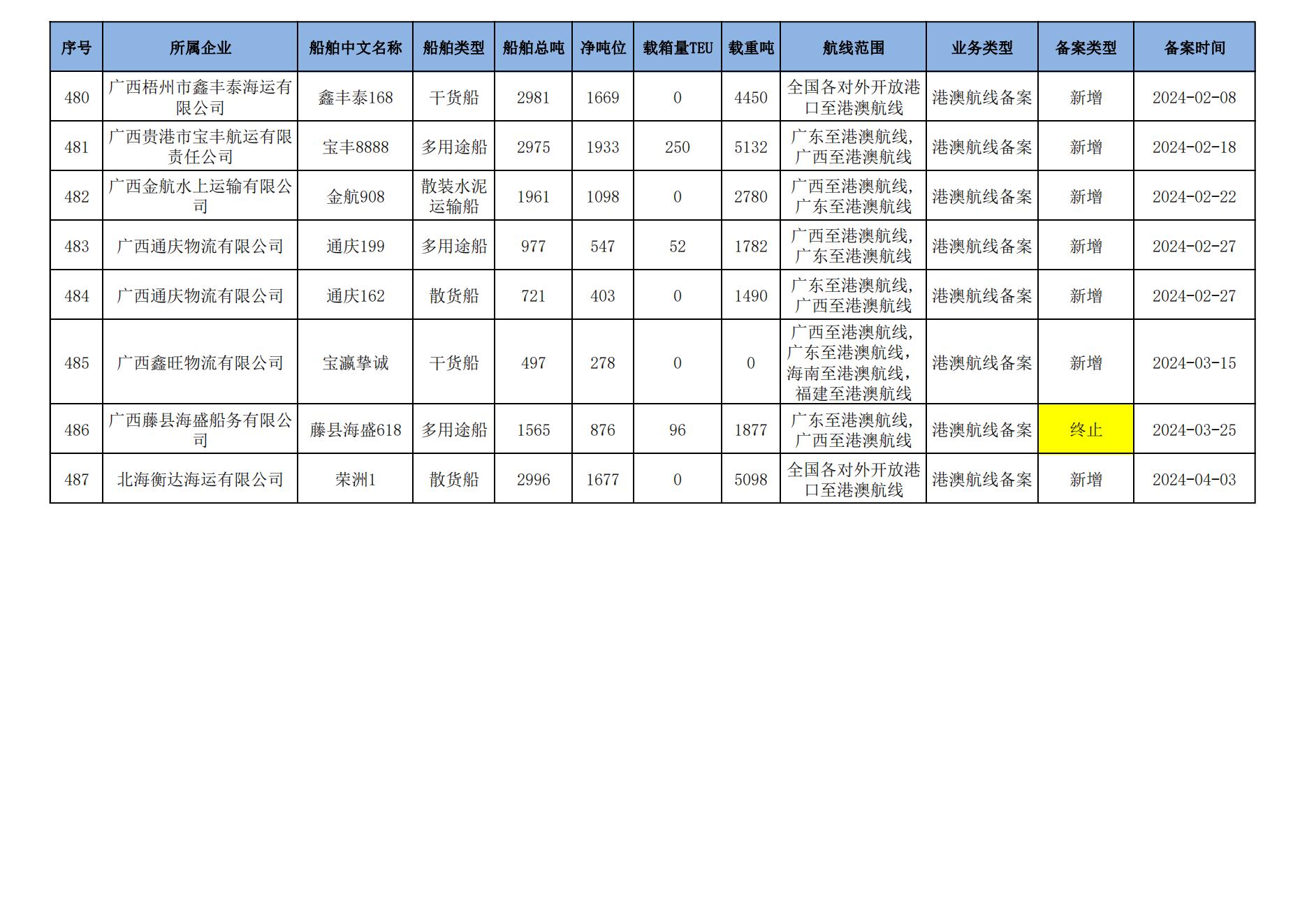 截至2024年4月11日在交通运输部水路运输建设综合管理信息系统完成备案的港澳航线水路运输船舶