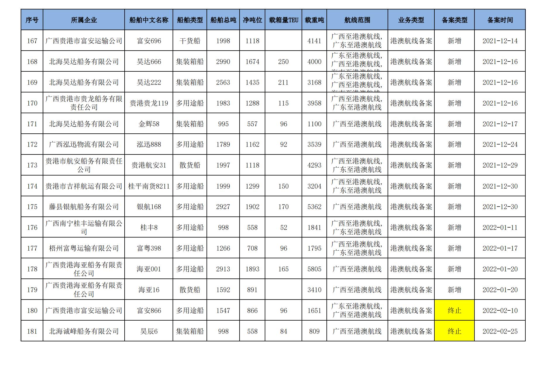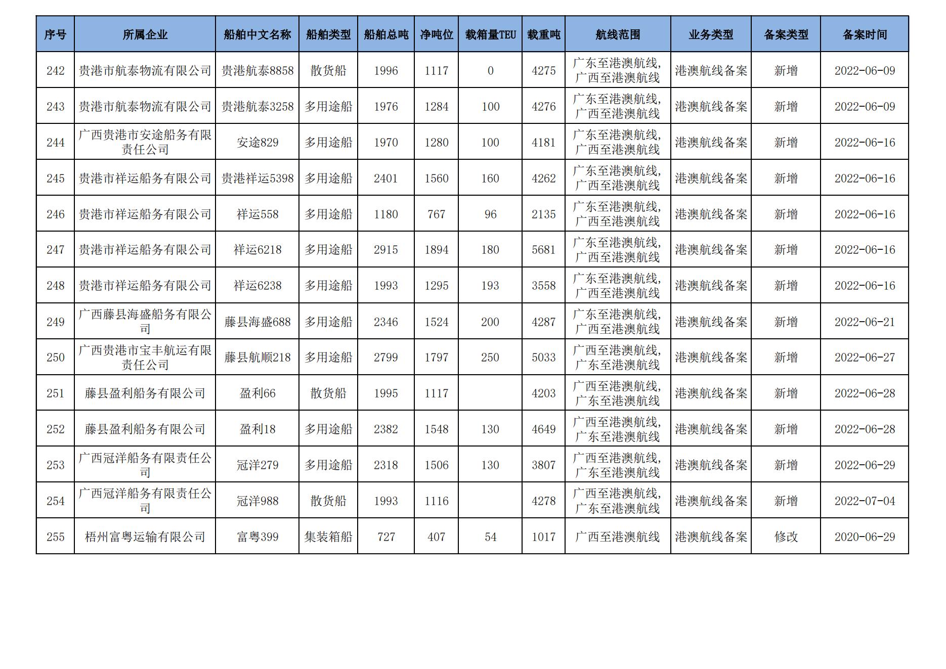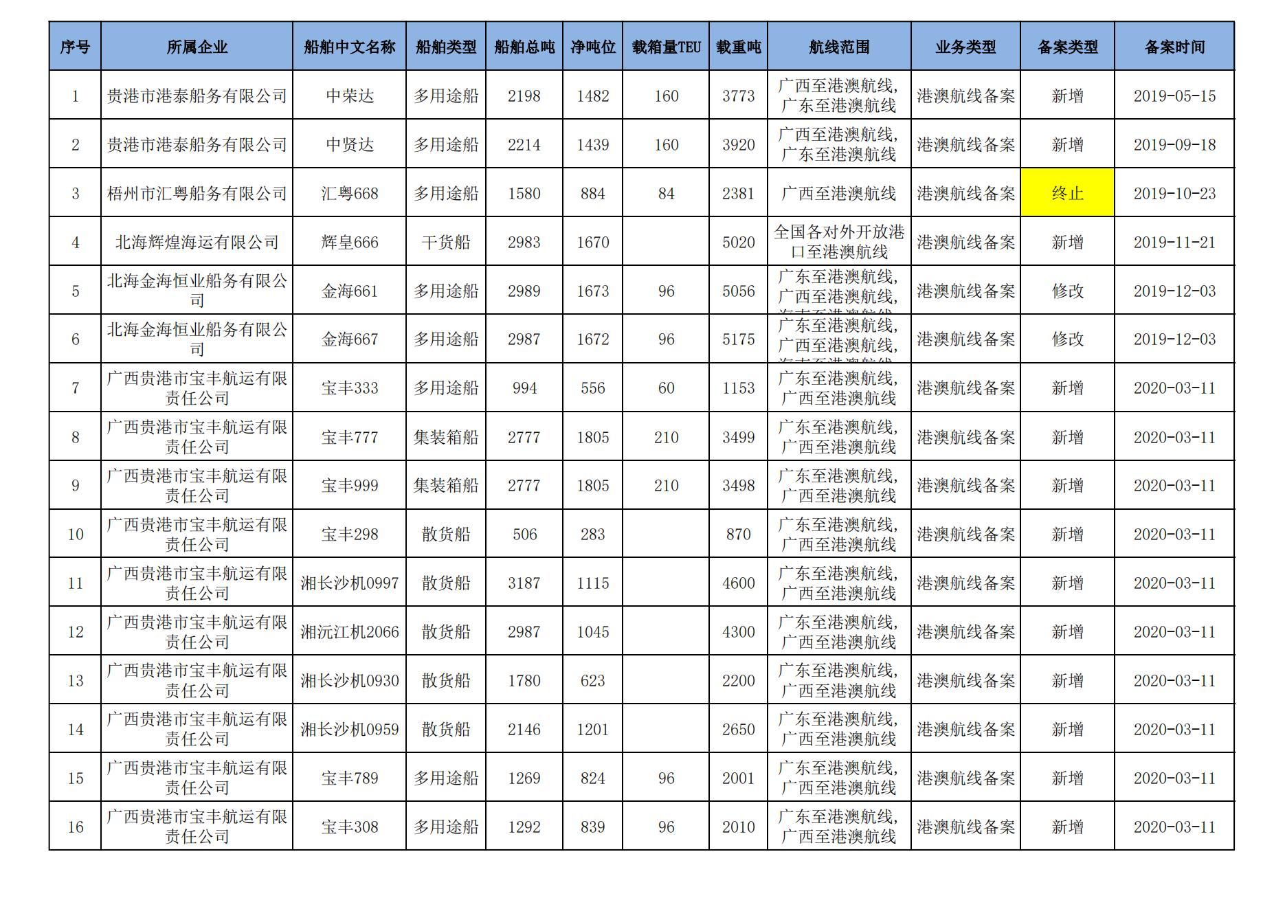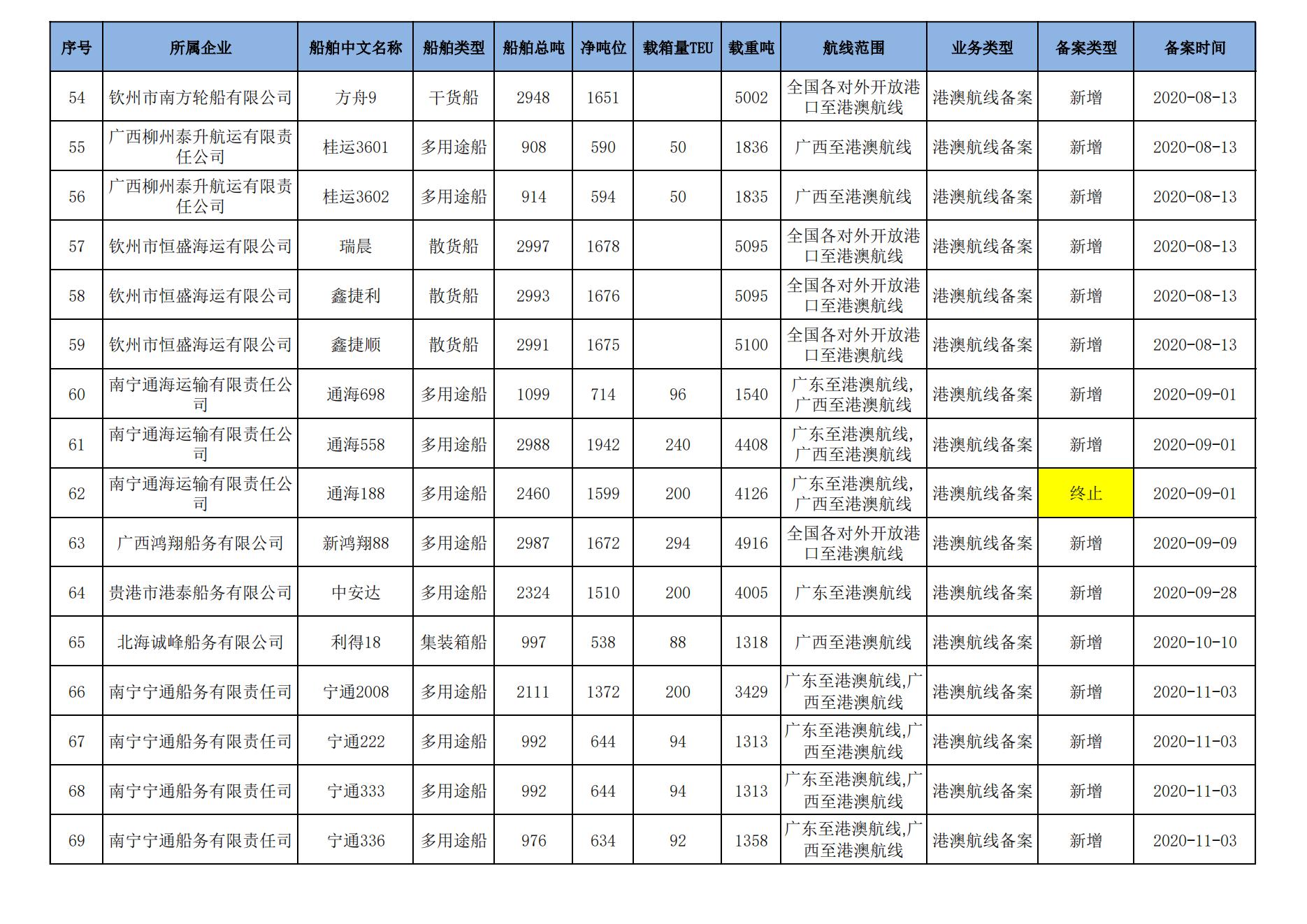 截至2024年10月11日在交通运输部水路运输建设综合管理信息系统完成备案的港澳航线水路运输船舶