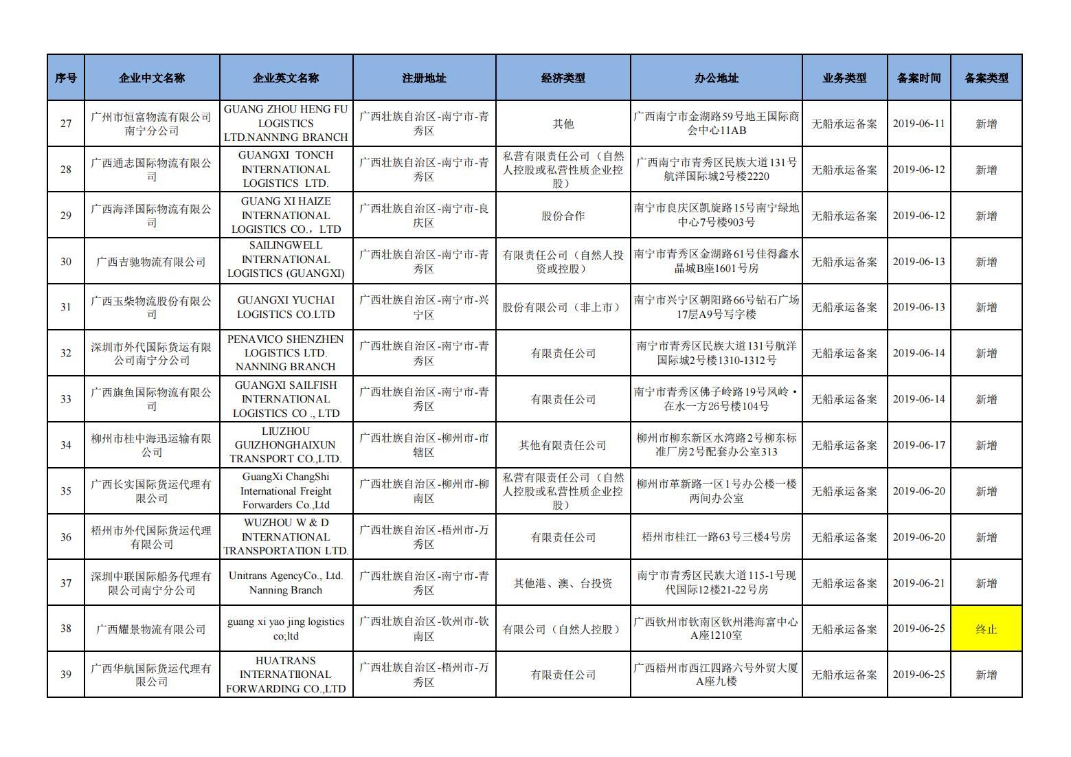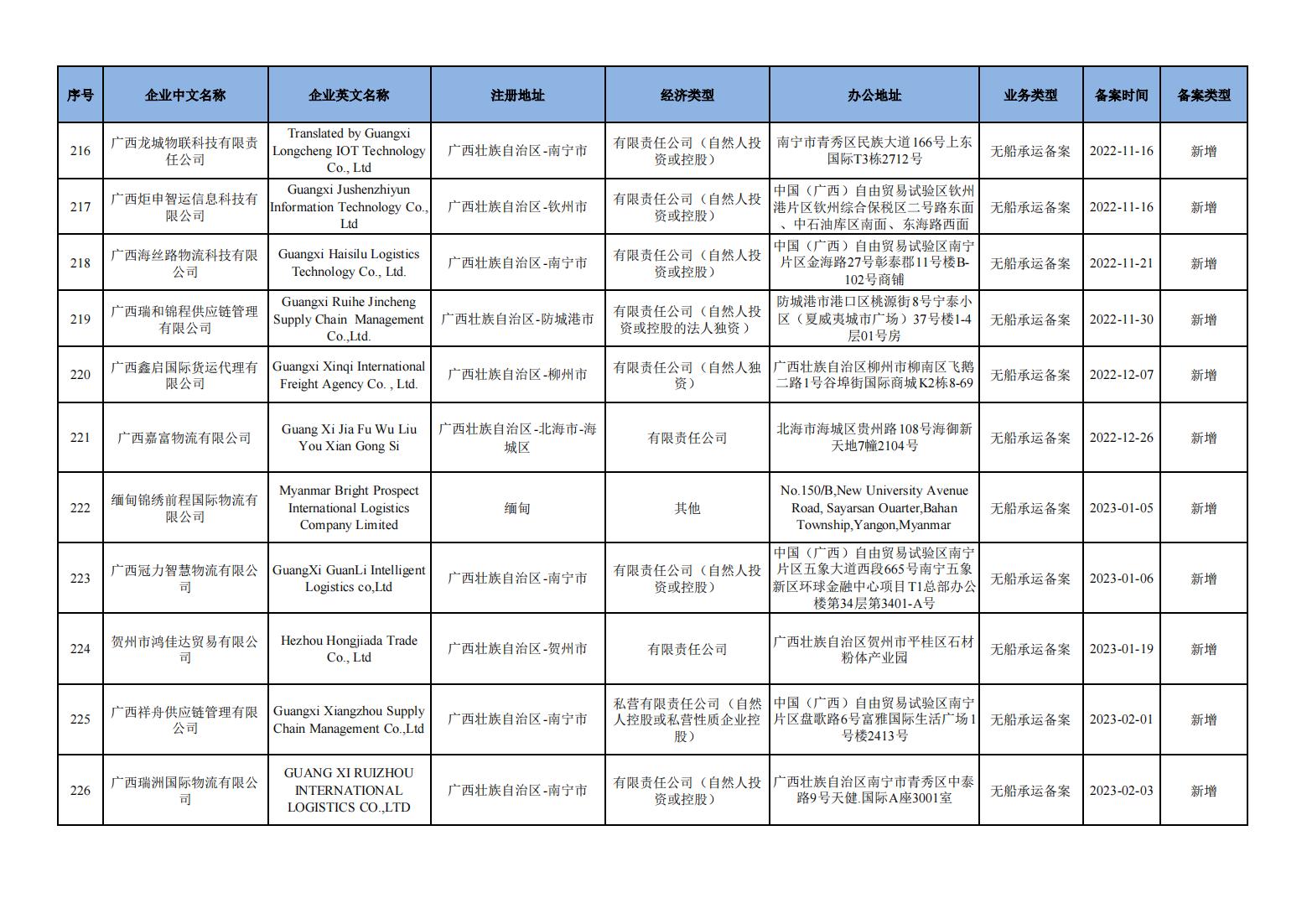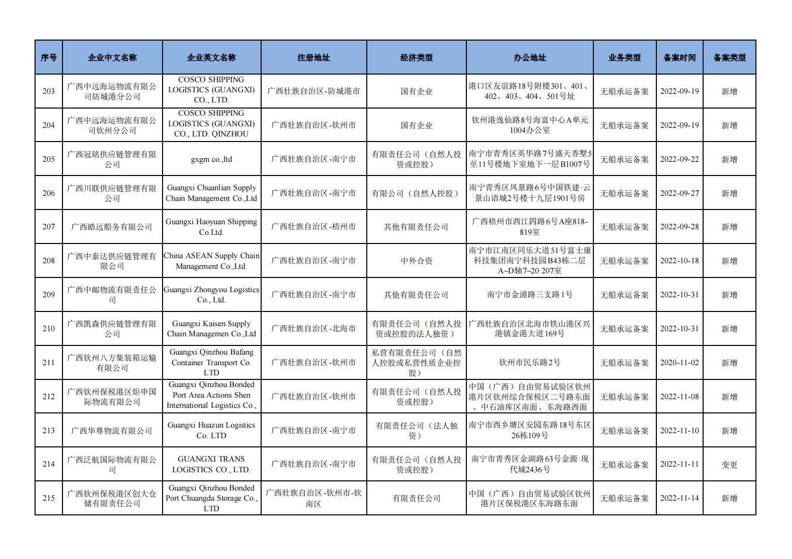 截至2024年11月11日在交通运输部水路运输建设综合管理信息系统完成备案的无船承运企业