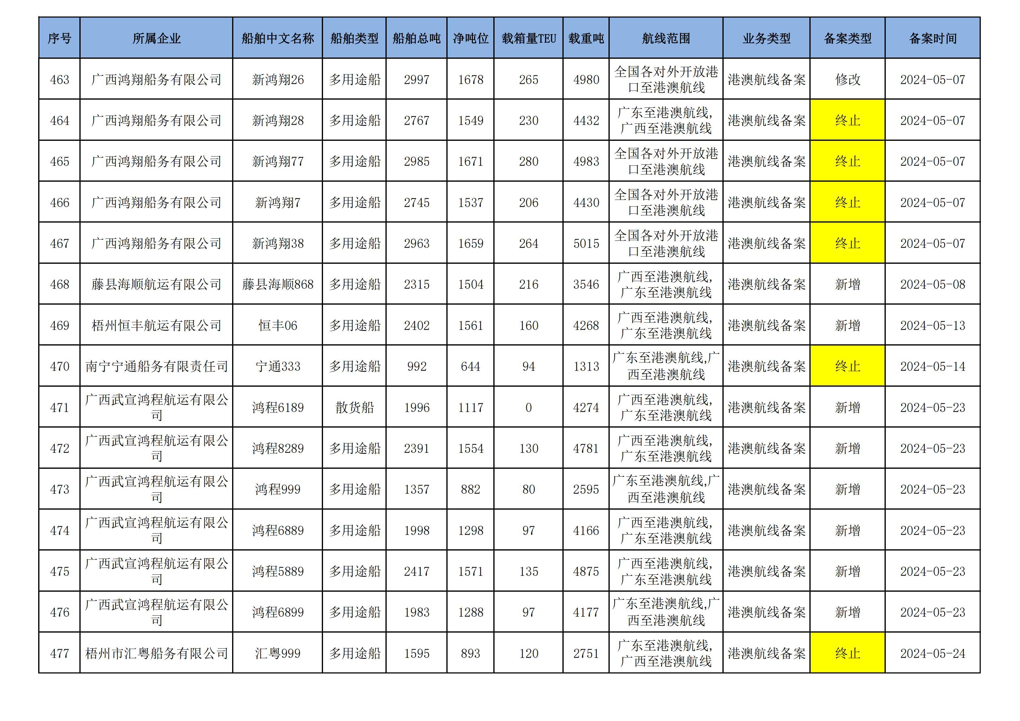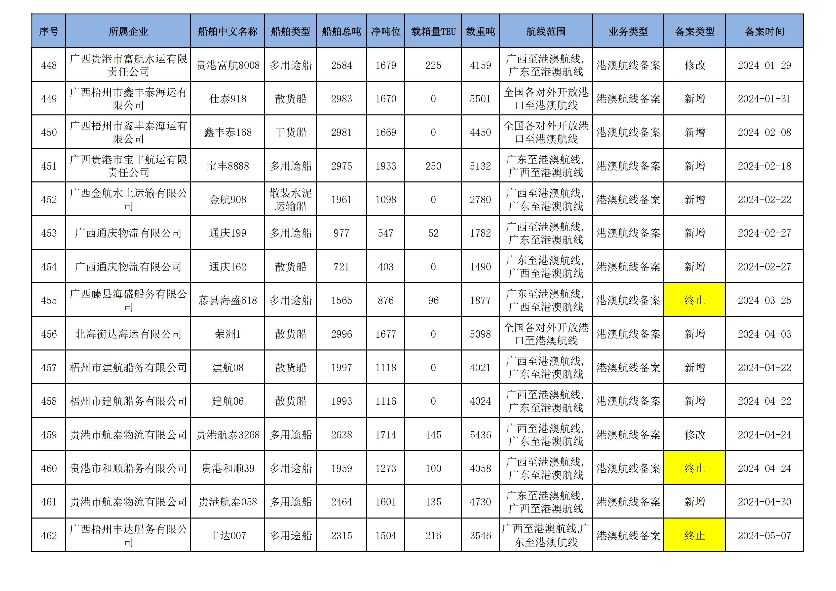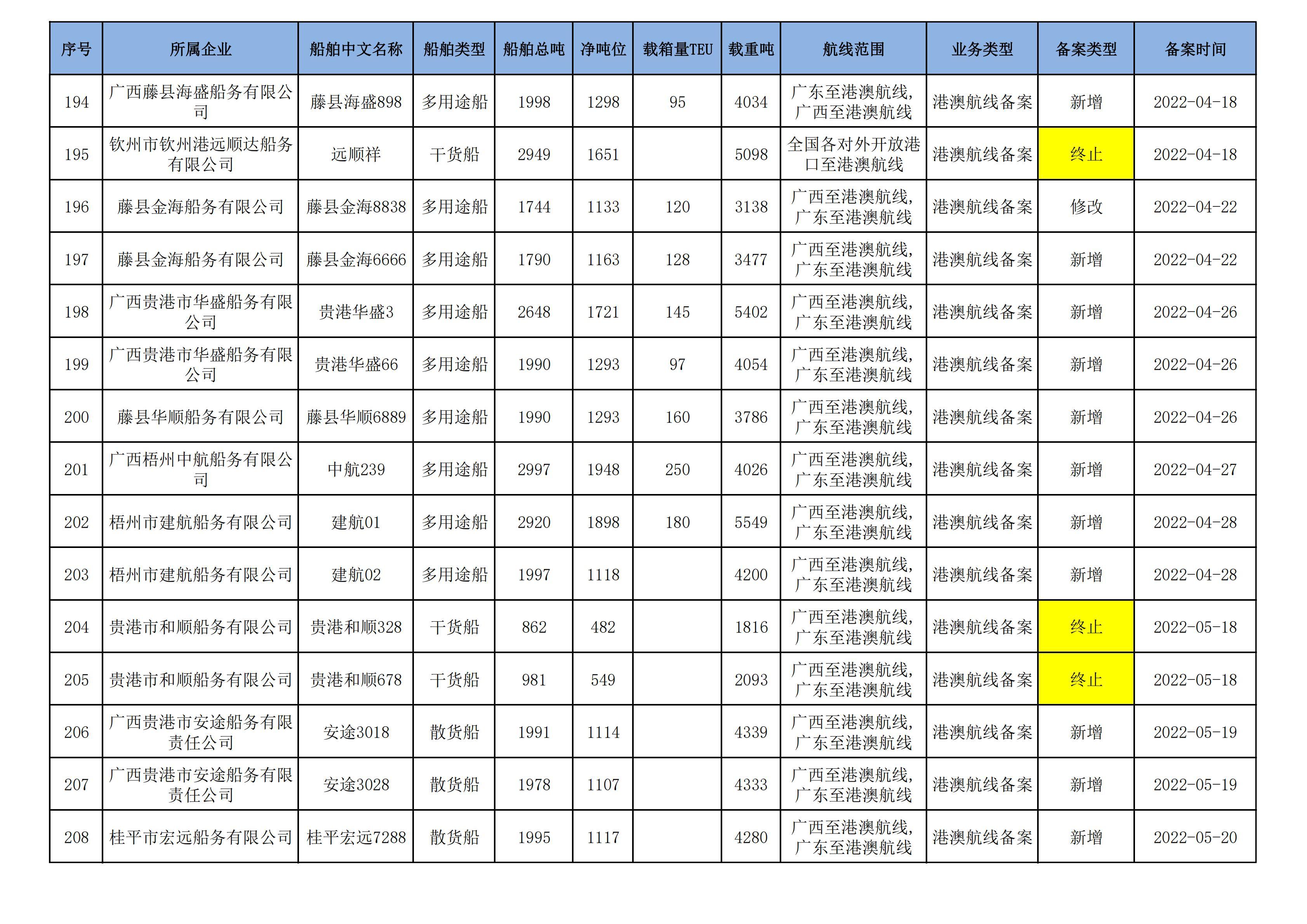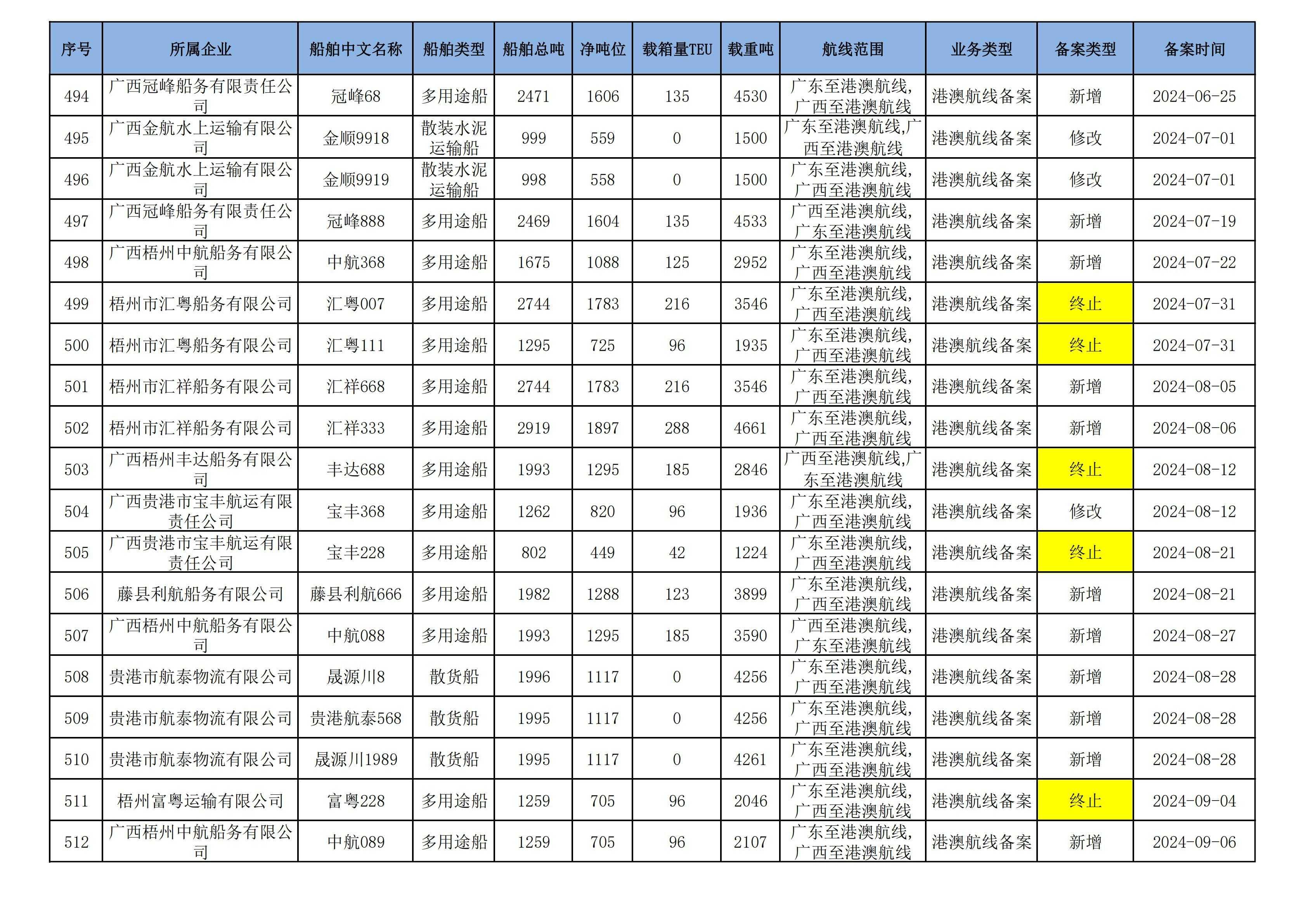 截至2025年1月13日在交通运输部水路运输建设综合管理信息系统完成备案的港澳航线水路运输船舶