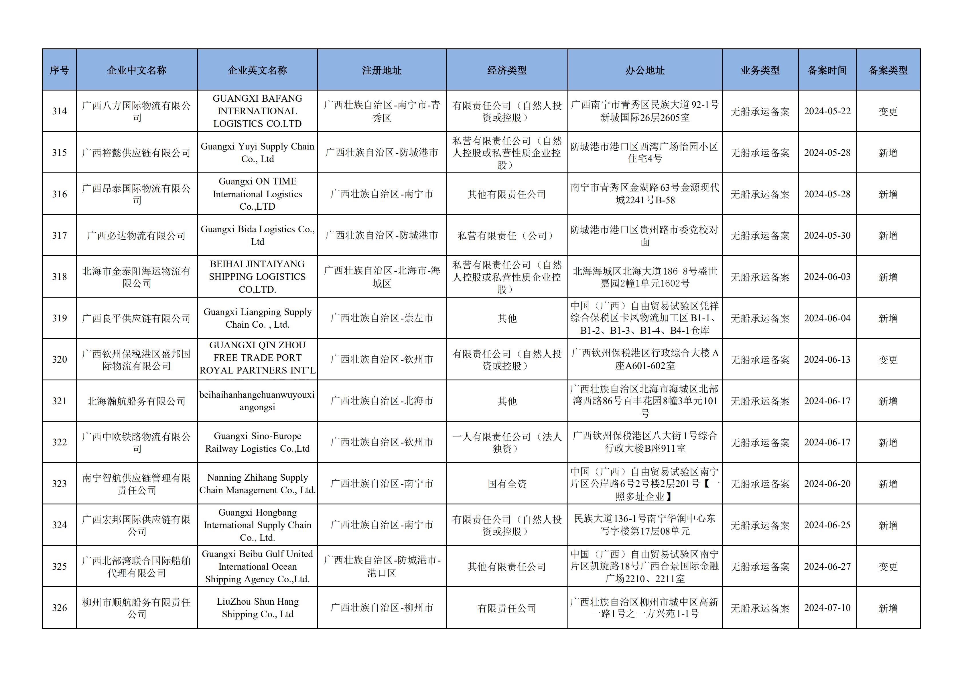 截至2025年1月13日在交通运输部水路运输建设综合管理信息系统完成备案的无船承运企业