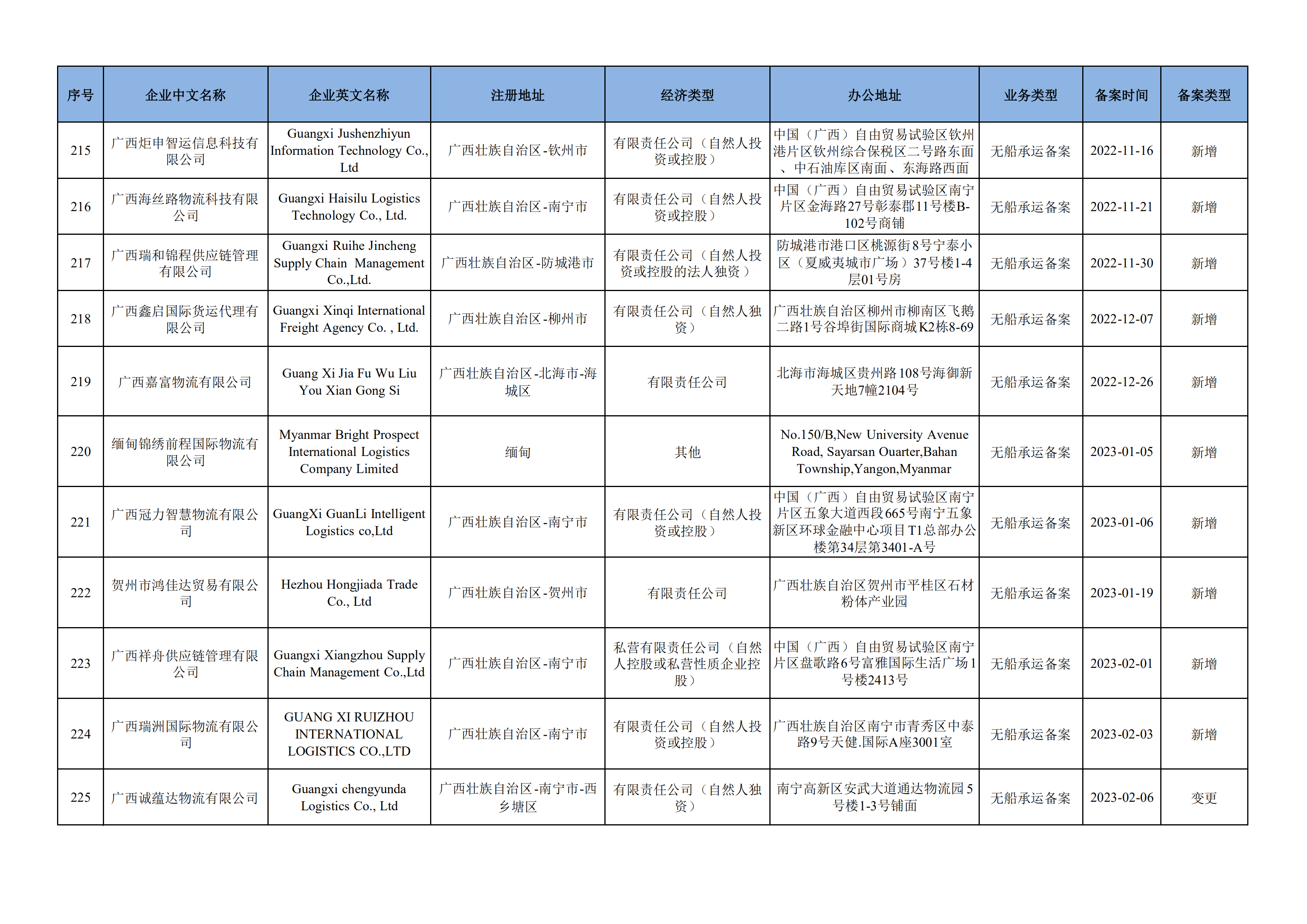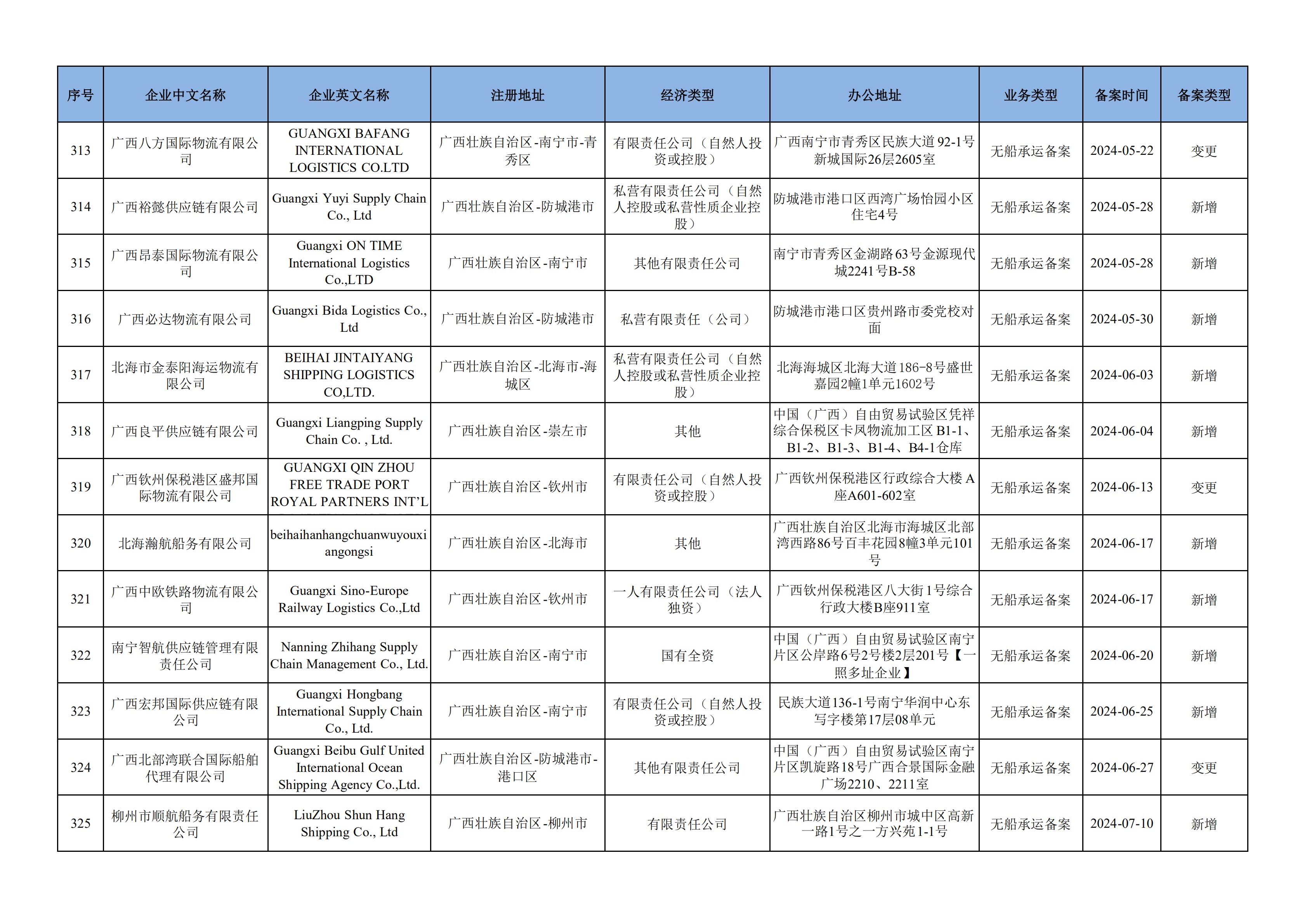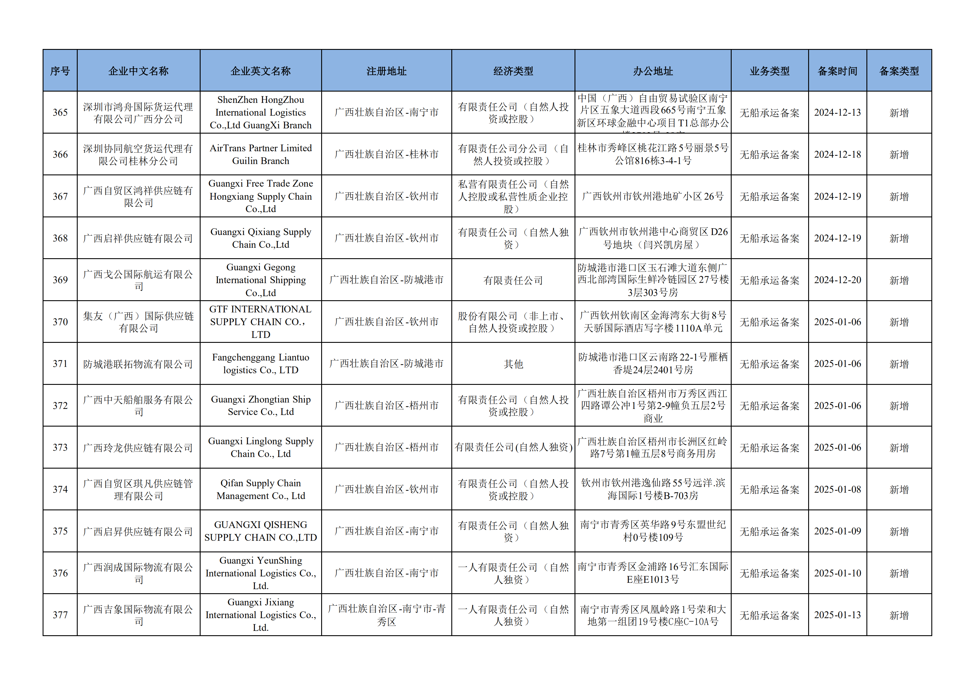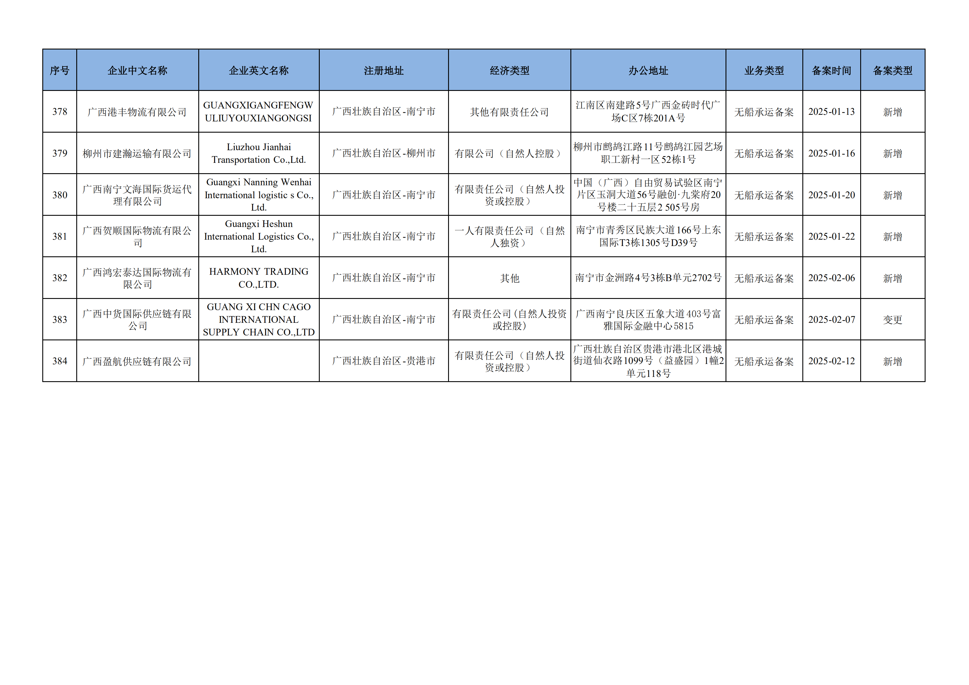 截至2025年2月17日在交通运输部水路运输建设综合管理信息系统完成备案的无船承运企业