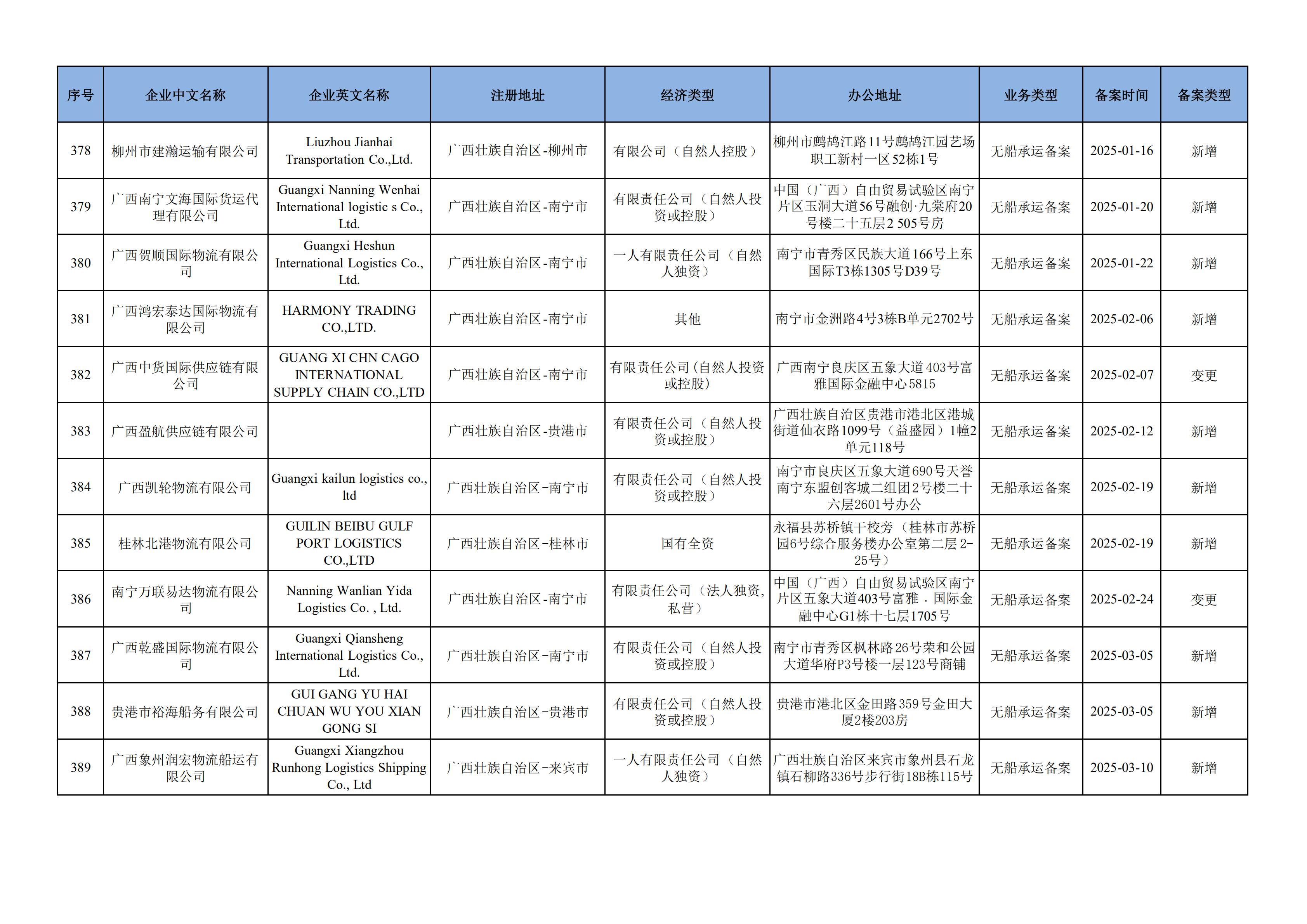 截至2025年3月12日在交通运输部水路运输建设综合管理信息系统完成备案的无船承运企业