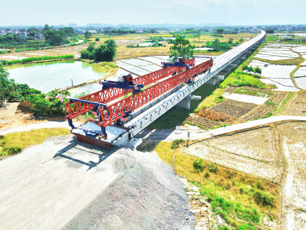 此次田寮跨梧柳高速平南连接线特大桥T梁架设的顺利完成,为后续的桥面系施工及轨道铺设创造了有利条件,有力推进了柳梧铁路整体建设进度。