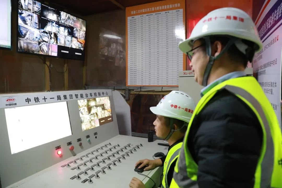 为提高隧道混凝土衬砌质量,公司组织施工单位中铁十一局研发智能化施工装备,创造性地在传统隧道衬砌台车上引入三维激光扫描处理、红外线夜视内窥镜等技术,研发出我国首款集疏通、观察、刻录、信息反馈和储存等功能于一体的智能化隧道衬砌浇筑台车。该设备装有高频振捣仪和24个智能探头,不仅有效提高混凝土振捣质量,还实现隧道混凝土施工全过程直观可视,消除传统施工作业中人工监控的局限性,从根本上解决隧道拱顶混凝土因不密实而导致脱空和空洞问题。在同等作业条件下,运用该设备较以往可节约一半劳力,作业效率翻倍。