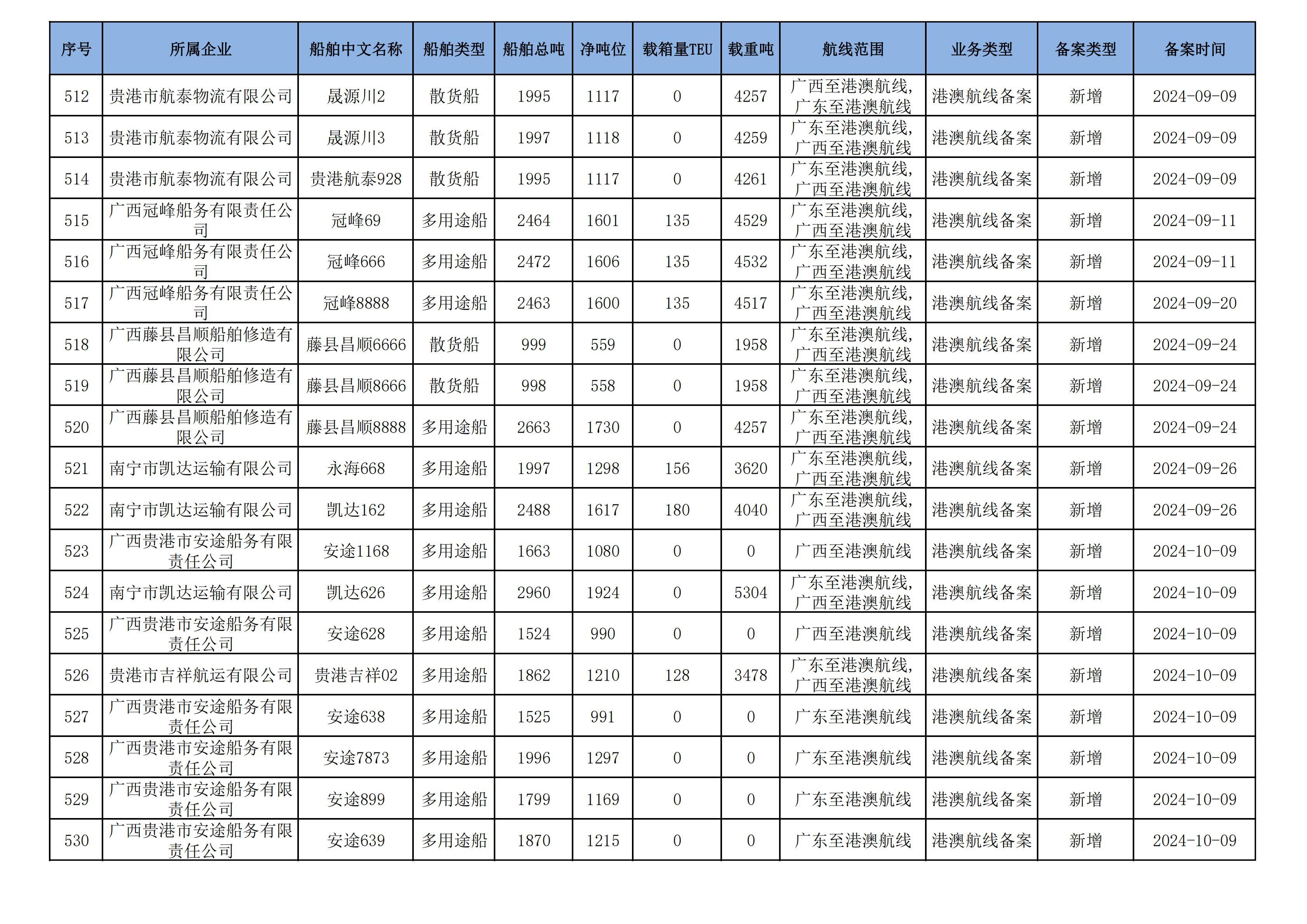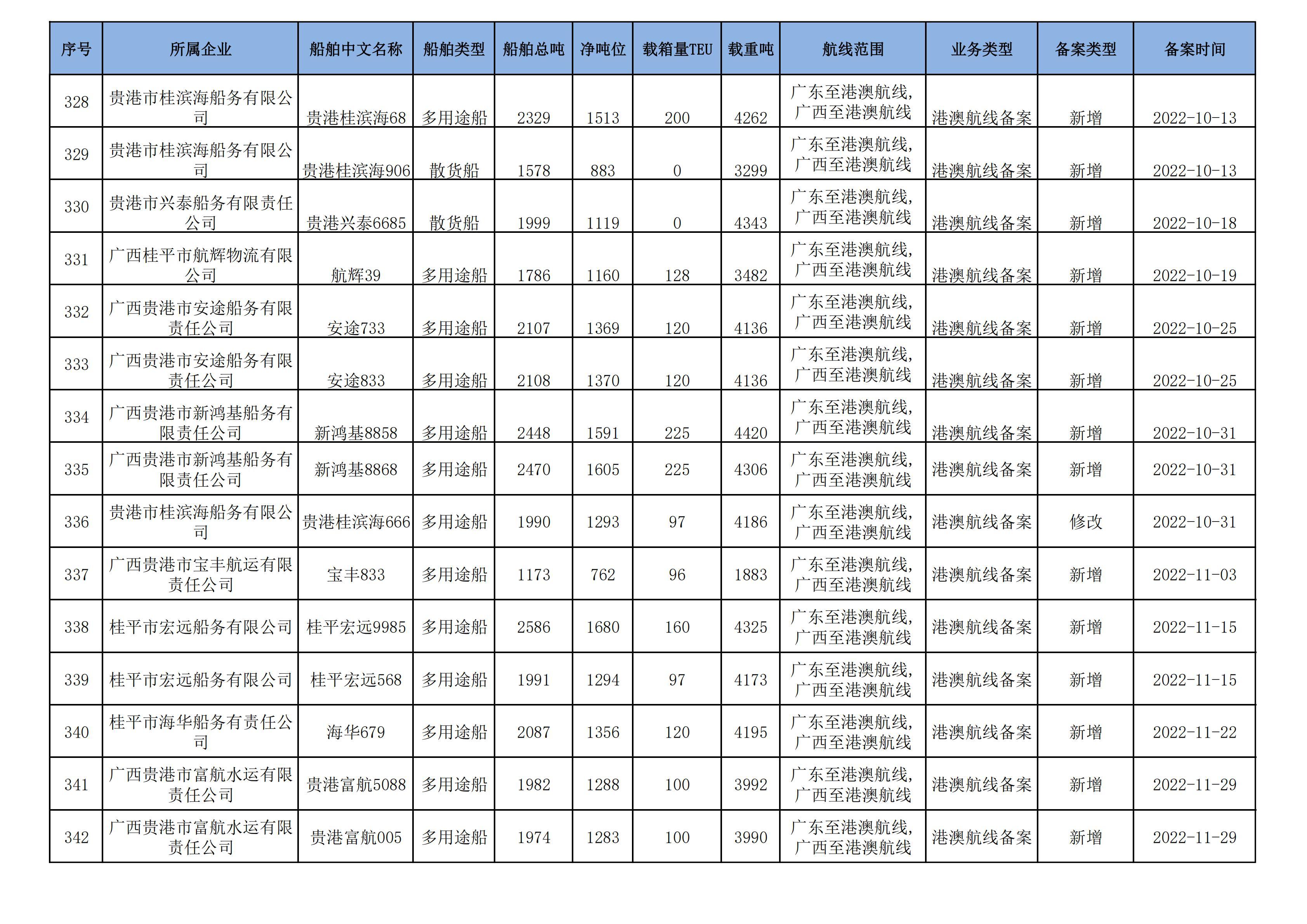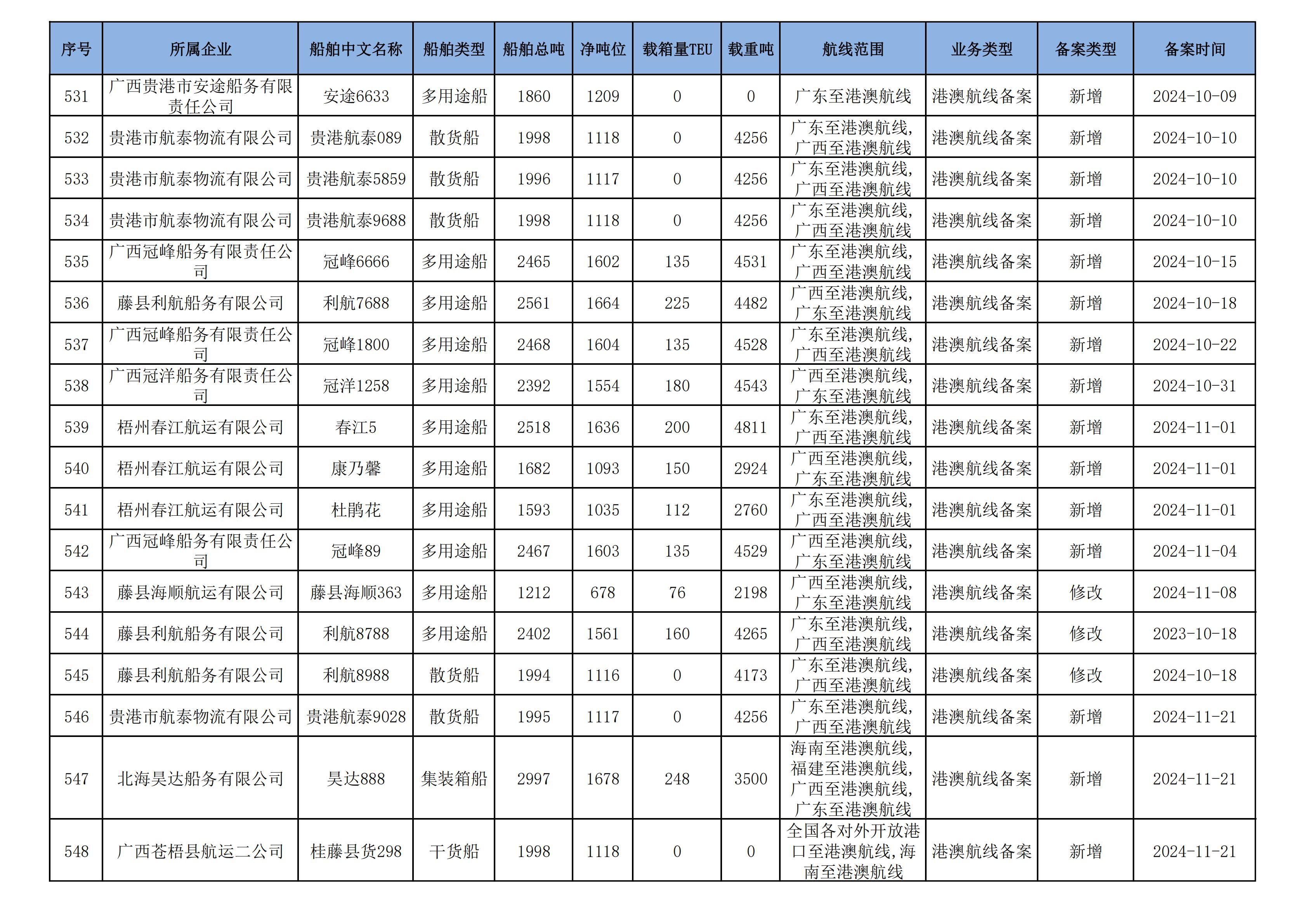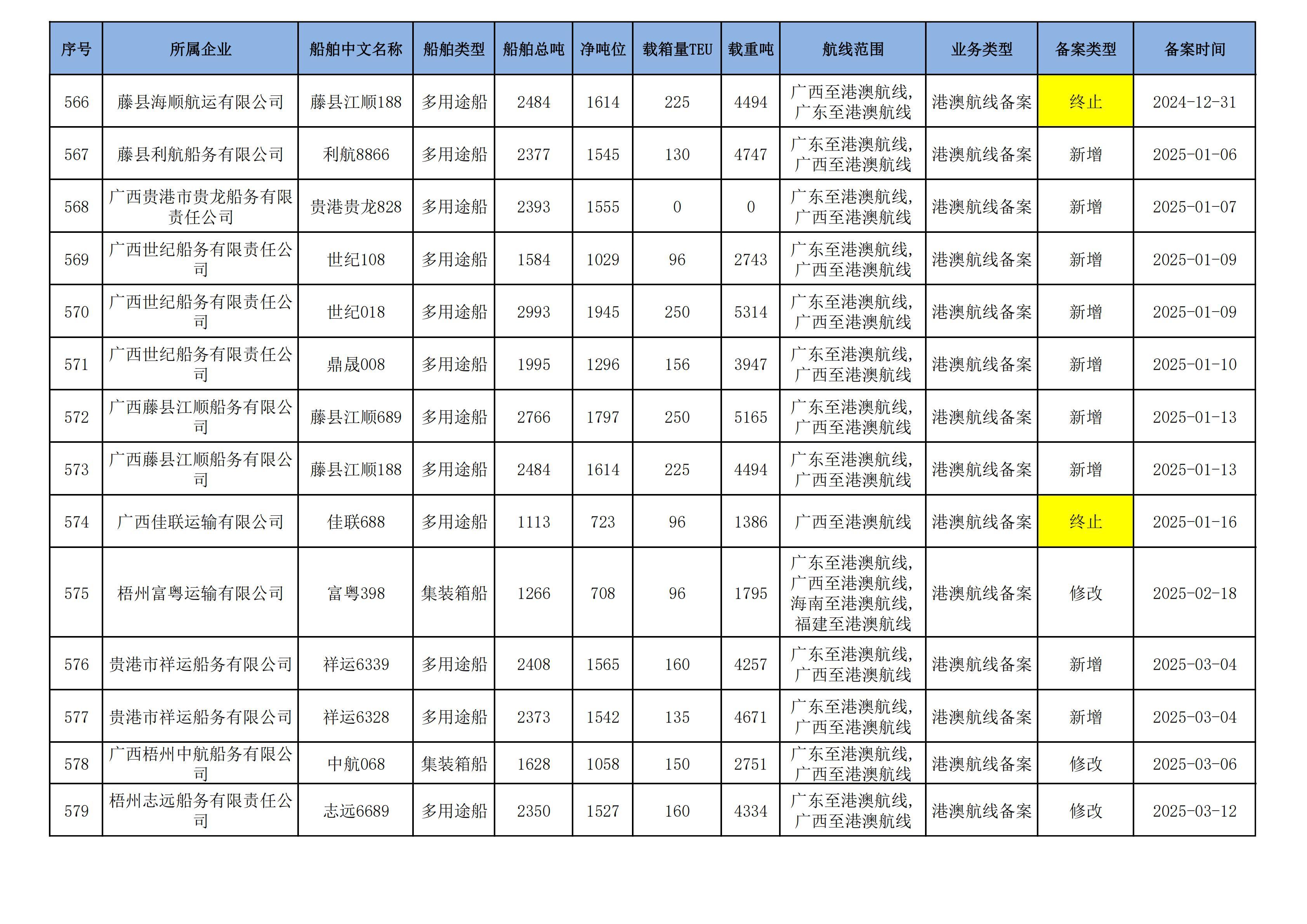 截至2025年3月13日在交通运输部水路运输建设综合管理信息系统完成备案的港澳航线水路运输船舶