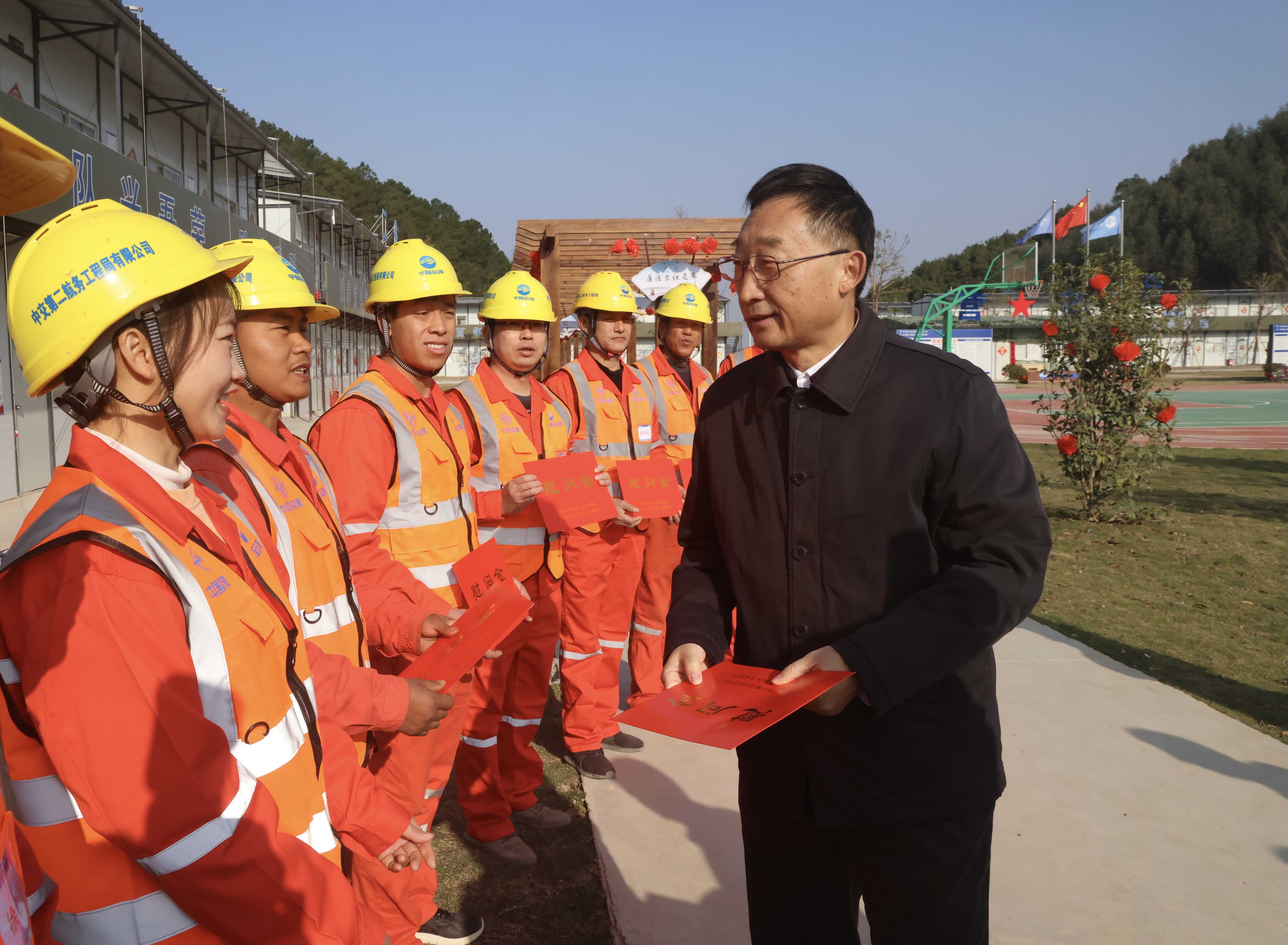 1月25日,农历正月初四,自治区党委书记、自治区人大常委会主任刘宁深入钦州市灵山县平陆运河马道枢纽建设现场,看望慰问春节留守施工人员。梁凯昌 摄