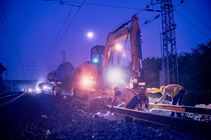 3.挖掘机集群模式换枕施工安全风险研判。根据铁路限界技术标准及换枕工艺要求,80型挖掘机外形尺寸应符合铁路限界要求,具有上、下升降及左、右旋转限位装置,避免作业过程中侵入邻线限界或距离接触网导线过近发生碰撞、触电事故。研究复线地段邻线列车接近时挖掘机的管控措施,发生故障时的应急处置预案,以及作业结束后,挖掘机群转移、停放及加锁贴封条等管理方法研究,确保换枕现场处于受控状态,最大限度降低安全风险。
