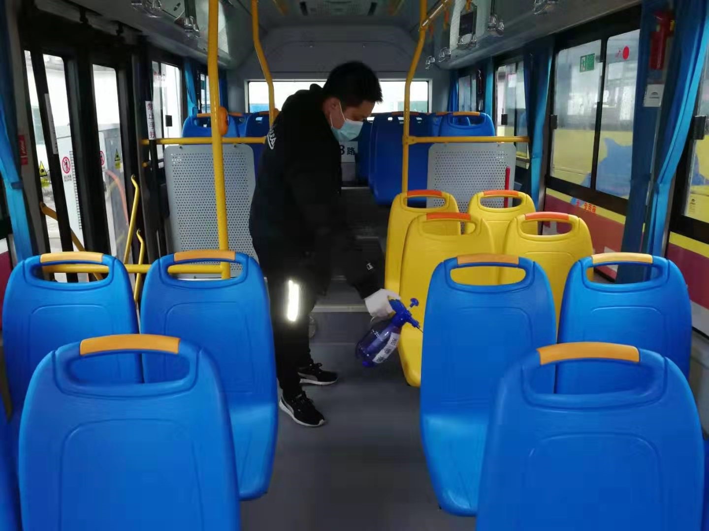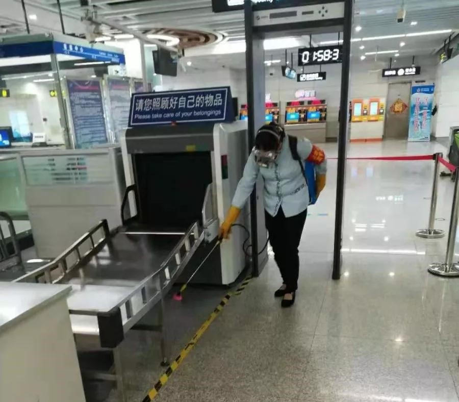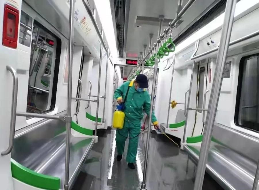 南宁市轨道交通安排专业人员高频次按时定点对车站公共区域、列车车厢、乘客服务相关设备设施进行彻底消毒。(南宁市交通运输局供图)